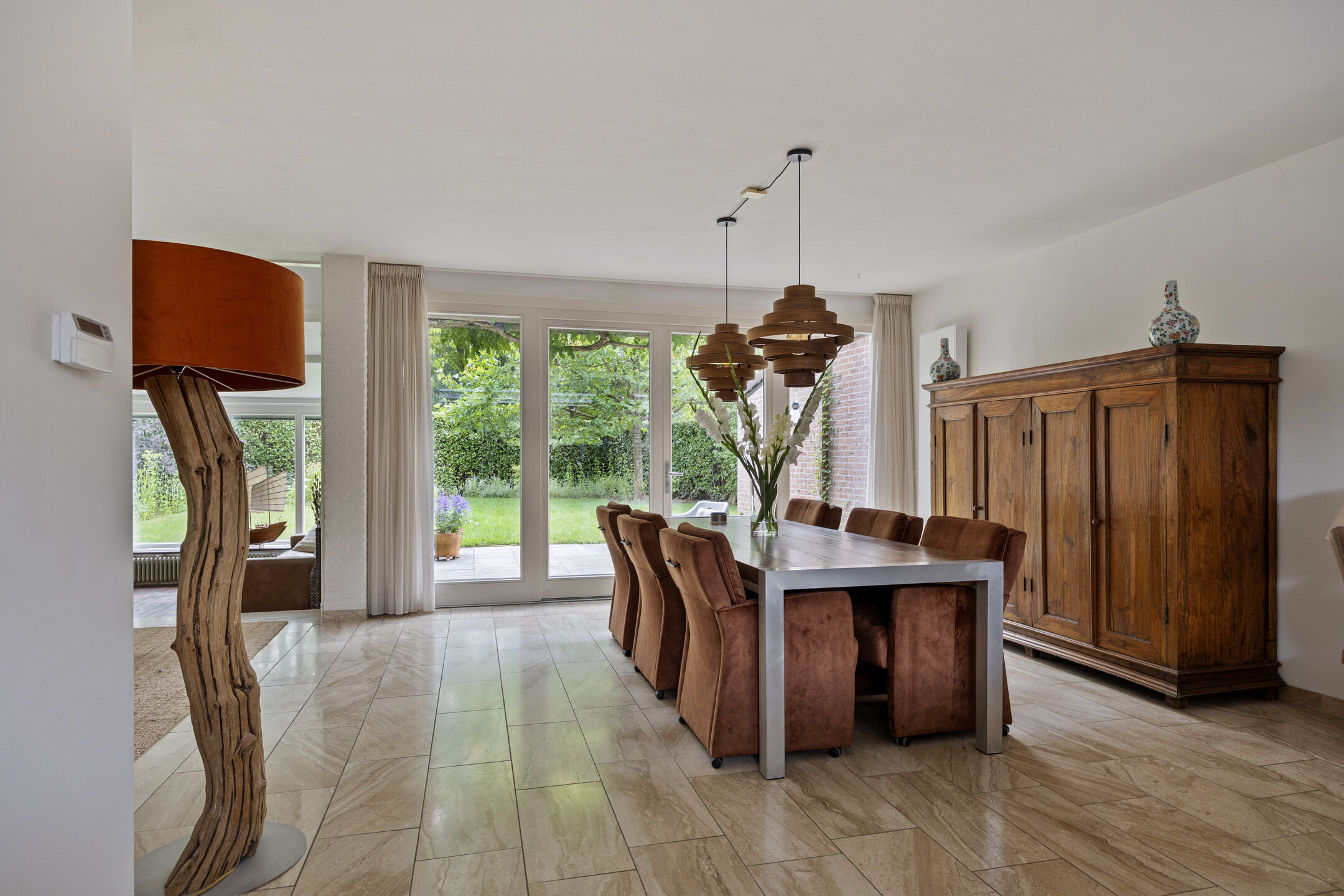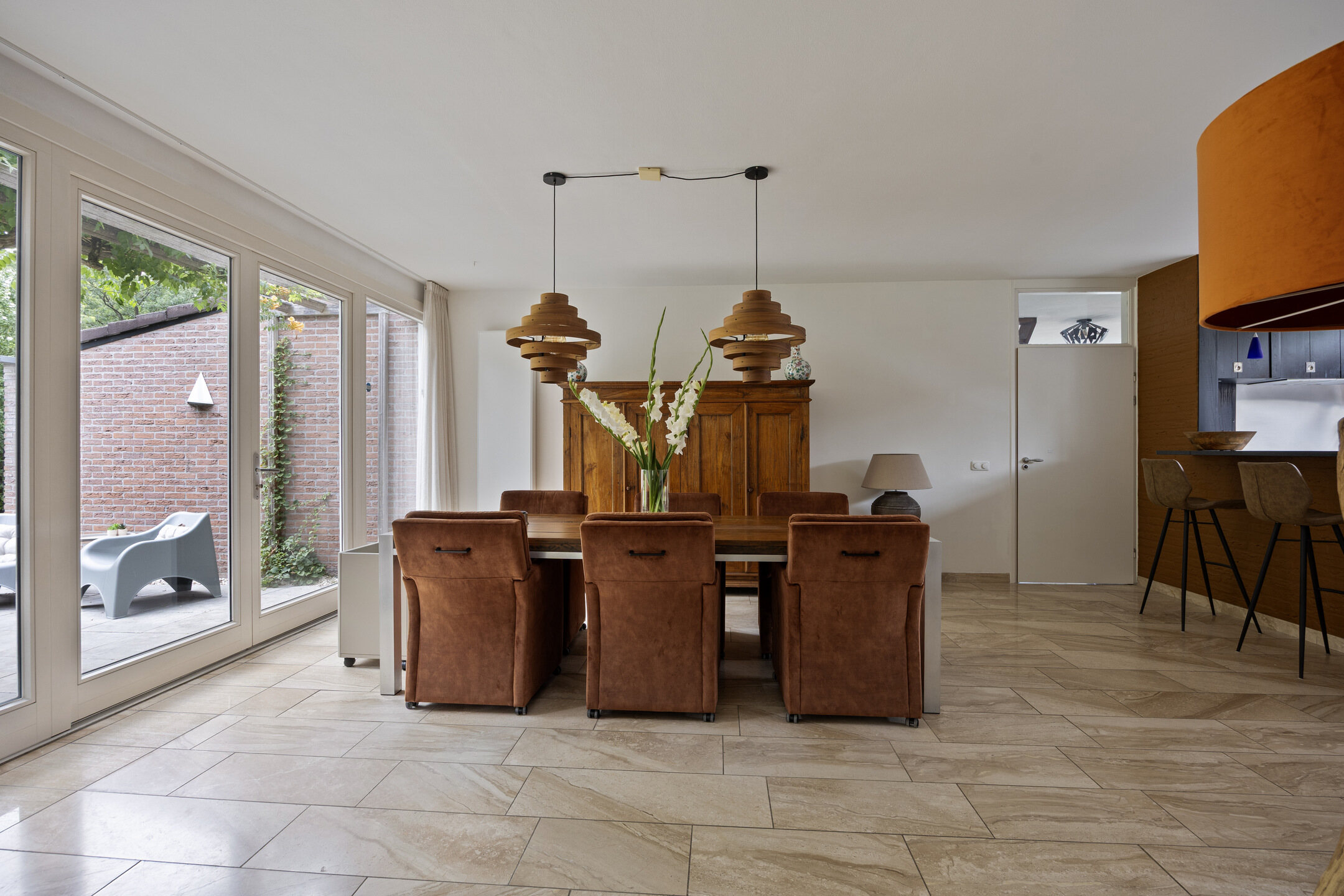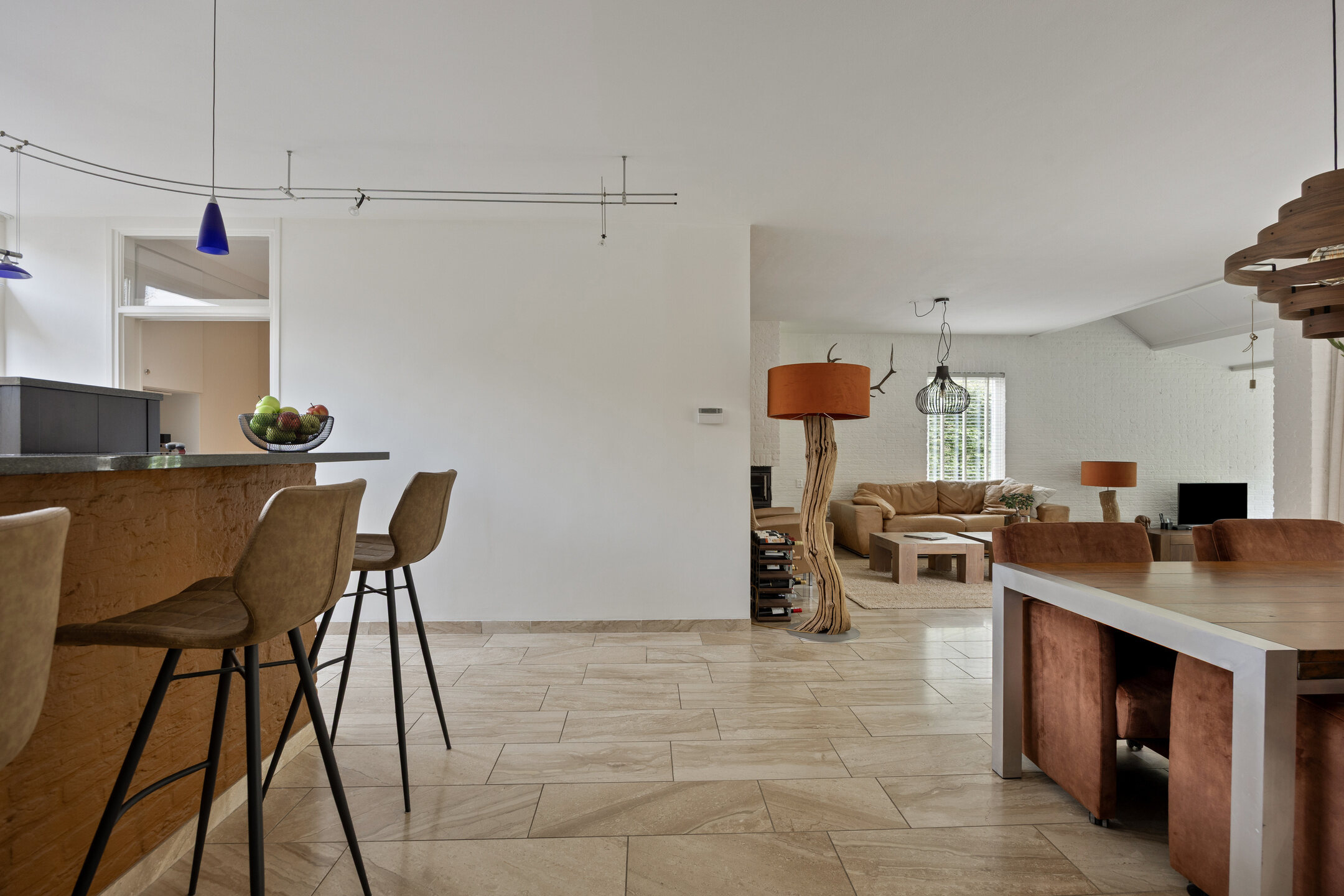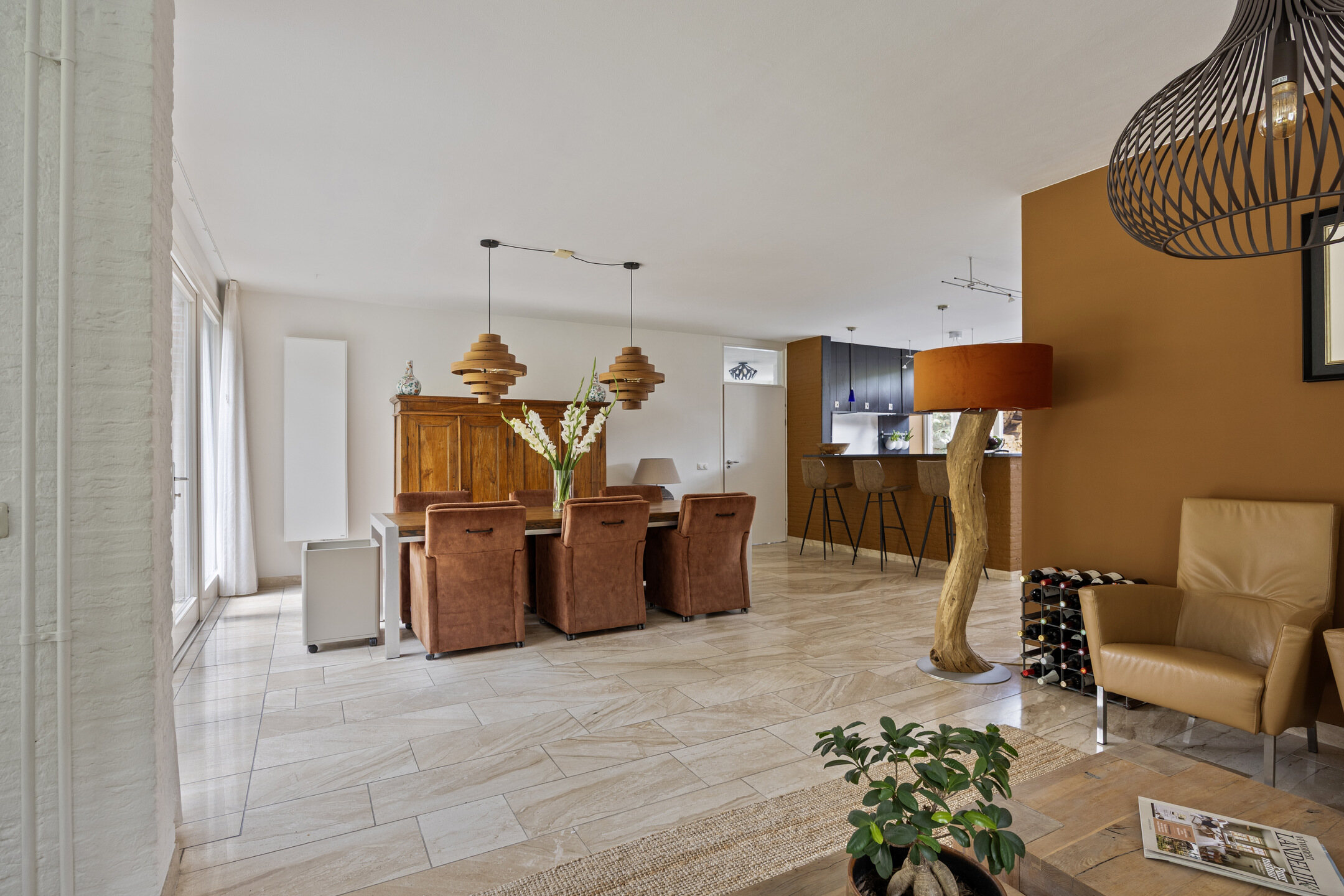 - Lichte en sfeervolle woonkamer met verdiepte zitkuil en directe tuinverbinding.