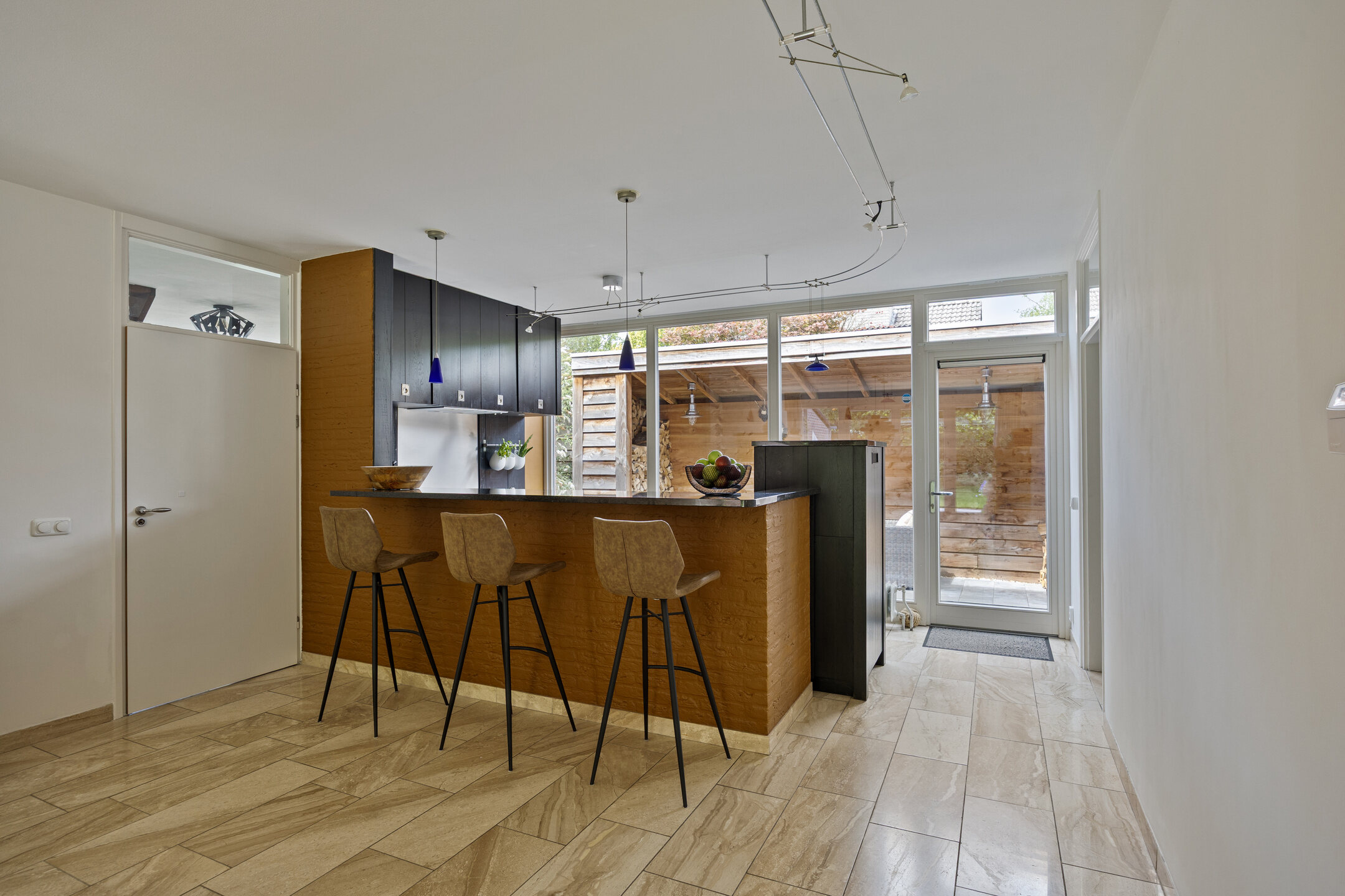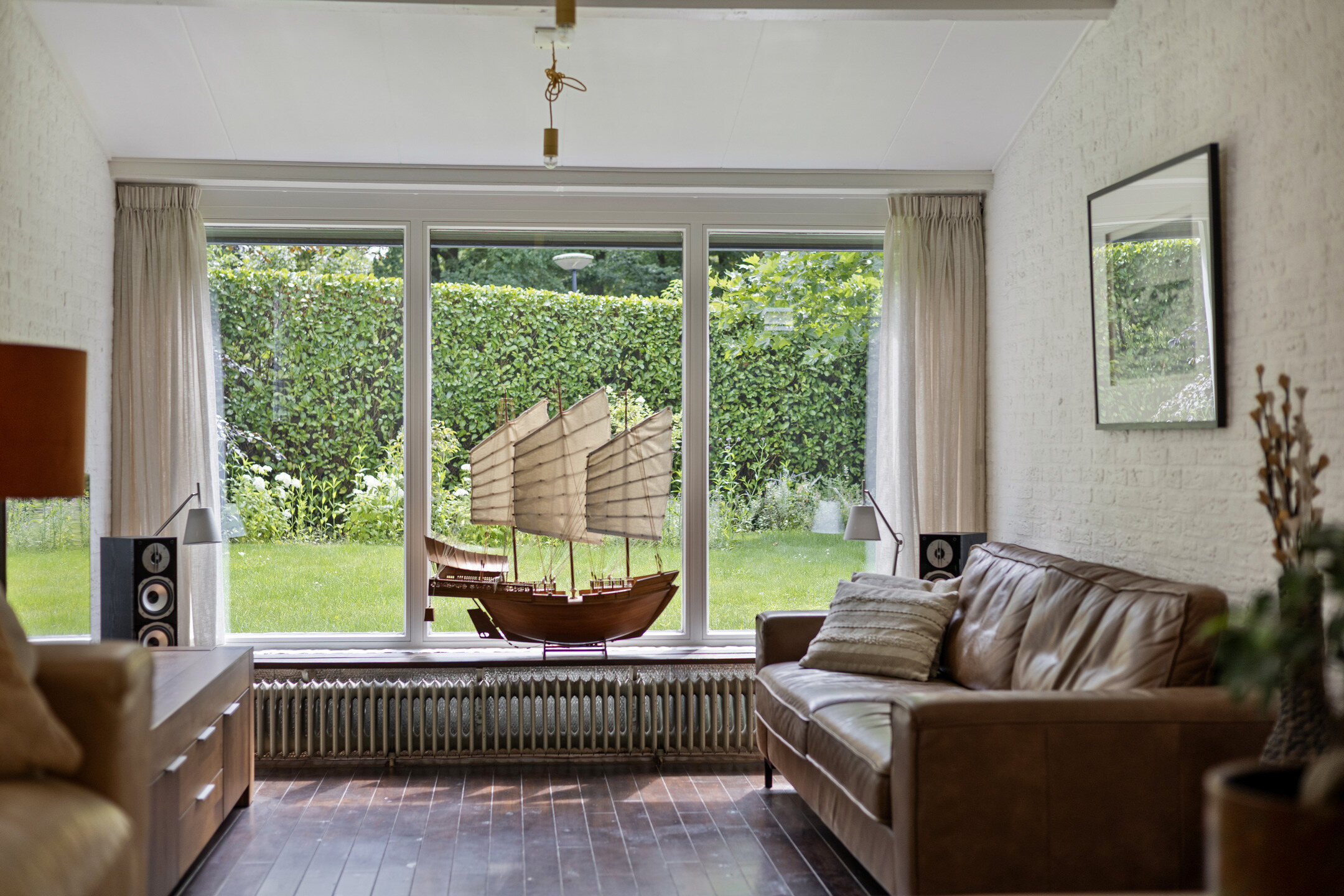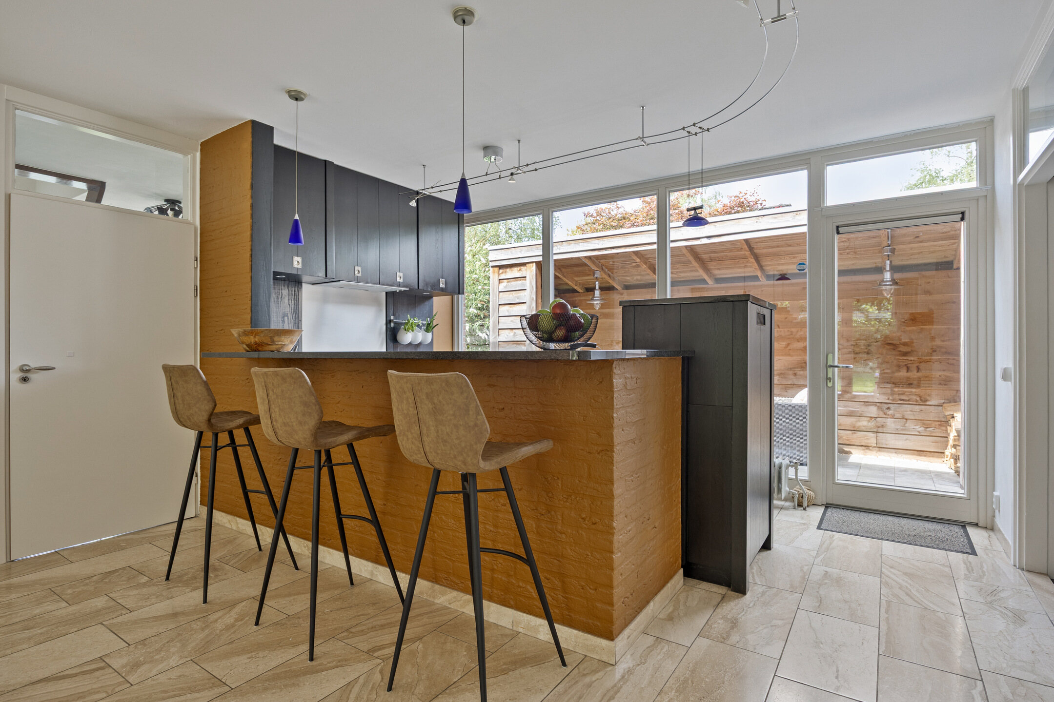 Binnen tref je een riante, sfeervolle en lichte woonkamer aan, met grote raampartijen tot aan het maaiveld en een speelse indeling. waaronder een gezellige, verdiepte zitkuil die zorgt voor extra karakter en charme. De woonkamer heeft directe verbinding met de zonnige tuin, wat het binnen- en buitenleven heerlijk met elkaar verbindt.