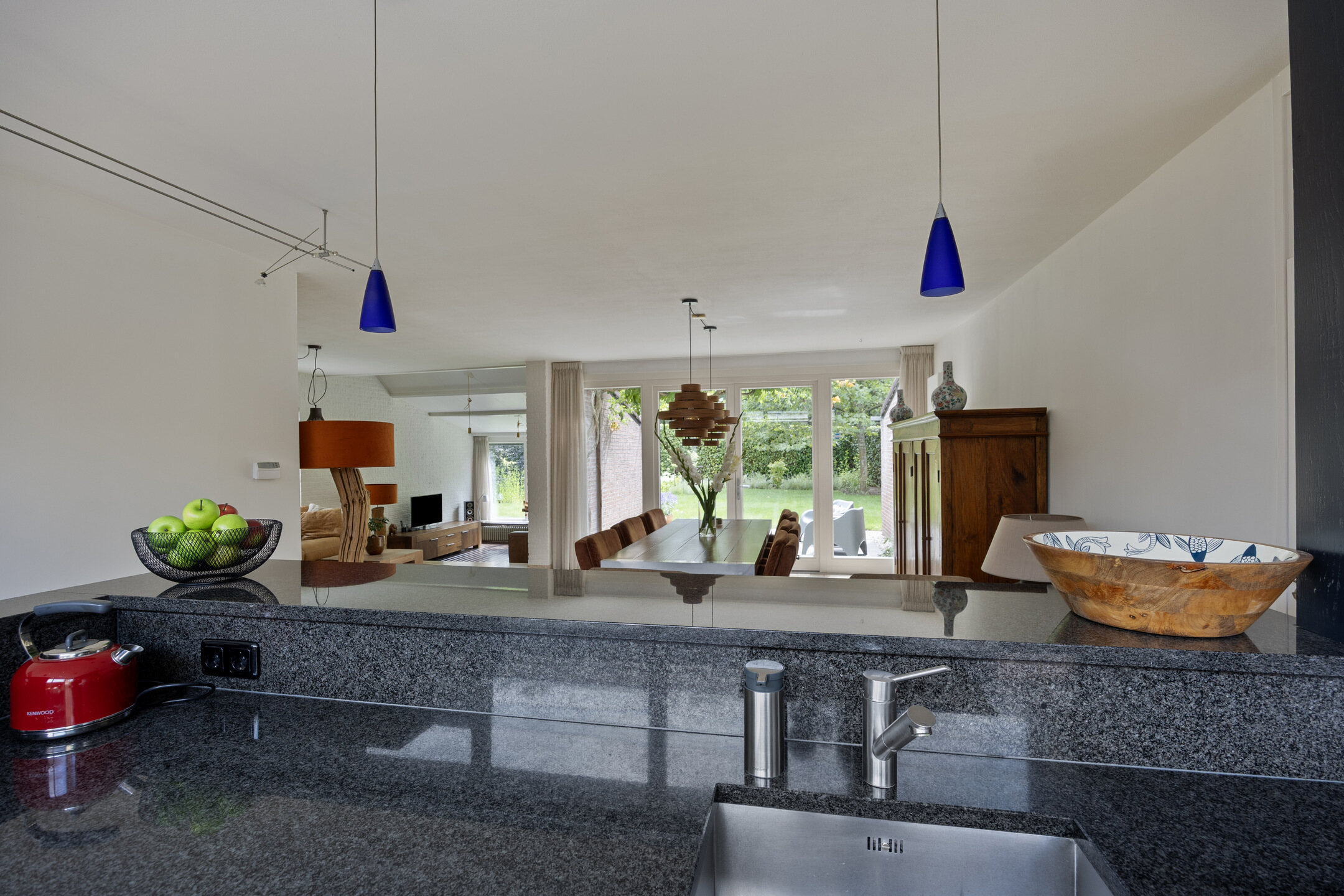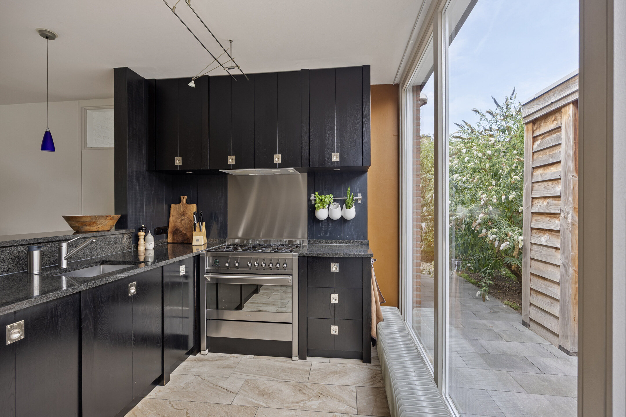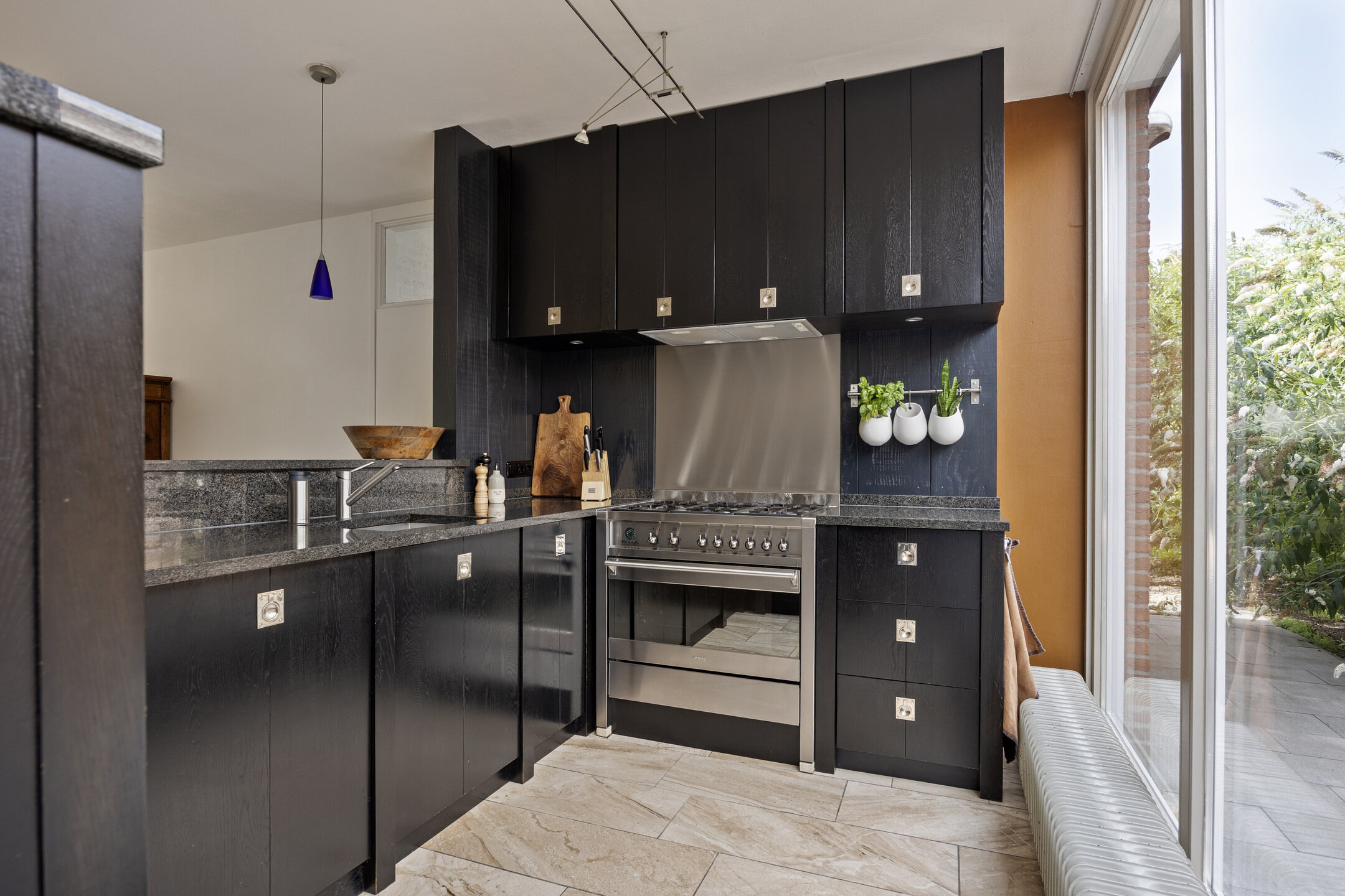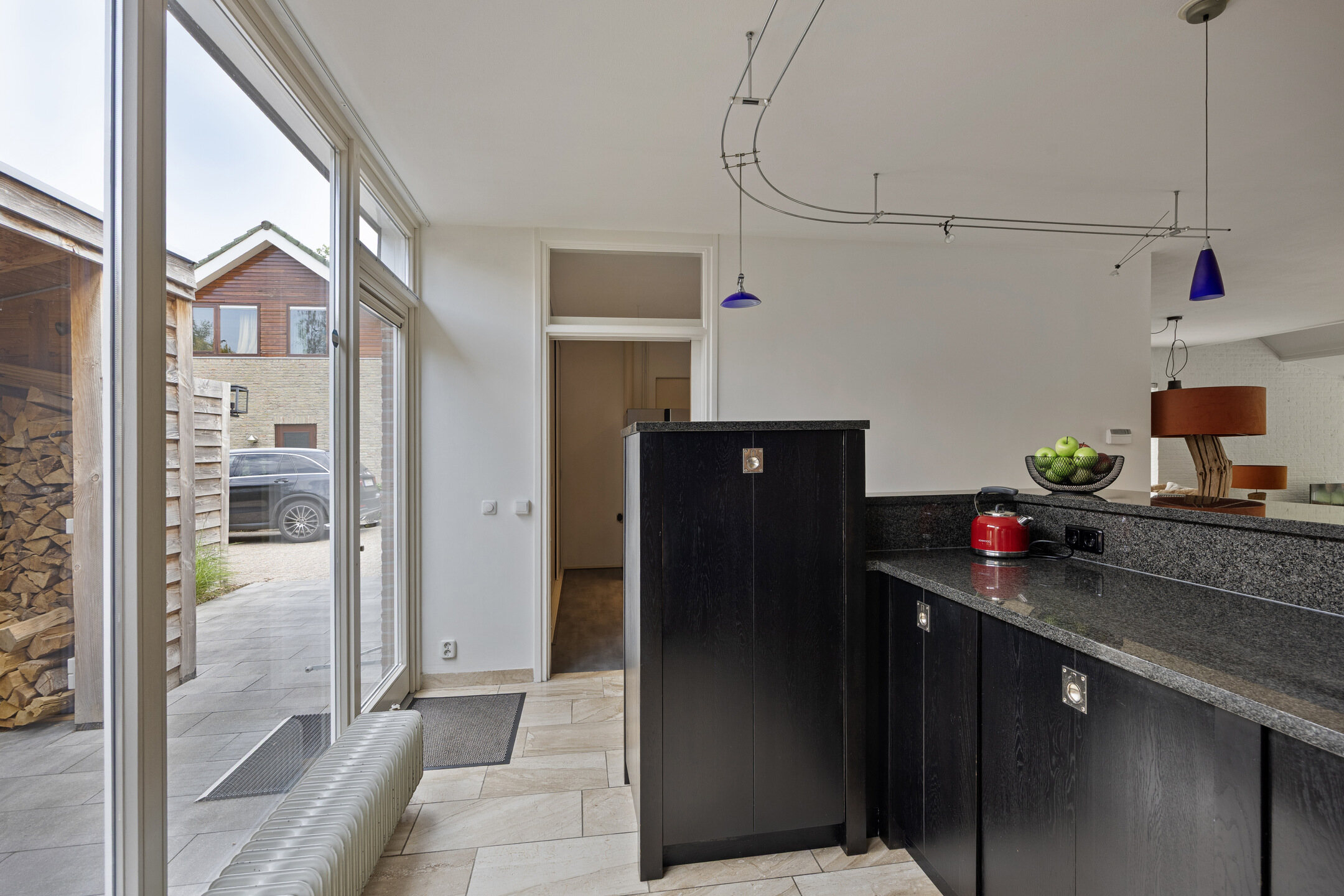 Binnen tref je een riante, sfeervolle en lichte woonkamer aan, met grote raampartijen tot aan het maaiveld en een speelse indeling. waaronder een gezellige, verdiepte zitkuil die zorgt voor extra karakter en charme. De woonkamer heeft directe verbinding met de zonnige tuin, wat het binnen- en buitenleven heerlijk met elkaar verbindt.