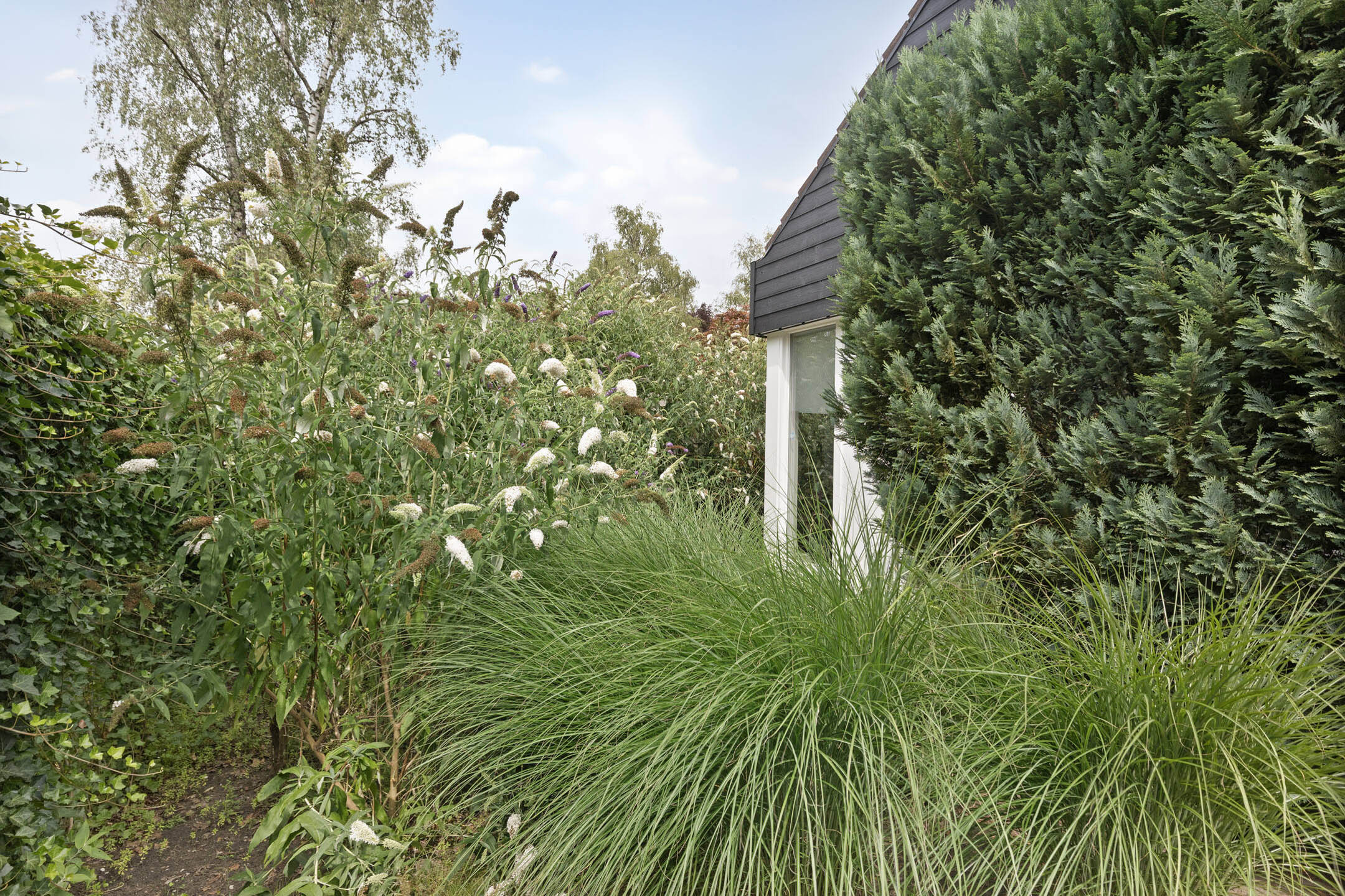De ligging is al net zo aantrekkelijk. Gelegen aan de rand van het hofje op een royaal perceel van maar liefst 755 m², geniet je hier van volledige privacy in een groene, rustige woonomgeving. De achtertuin, perfect op het zuiden, is verzorgd aangelegd en biedt een zee van ruimte om te ontspannen, te tuinieren of te genieten van lange zomerse avonden. Aan de voorzijde grenst de woning aan een vriendelijk pleintje met gemeentelijk groen, terwijl je aan de achterzijde volledig wordt omarmd door volwassen bomen en natuur.
