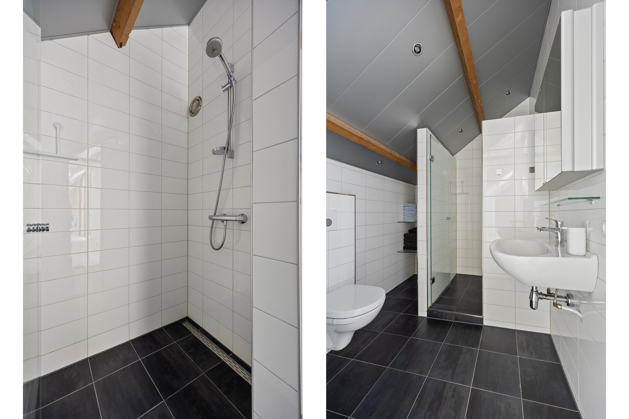 Eerste verdieping: overloop, drie ruime slaapkamers en badkamer voorzien van hangend toilet, inloopdouche en wastafel.