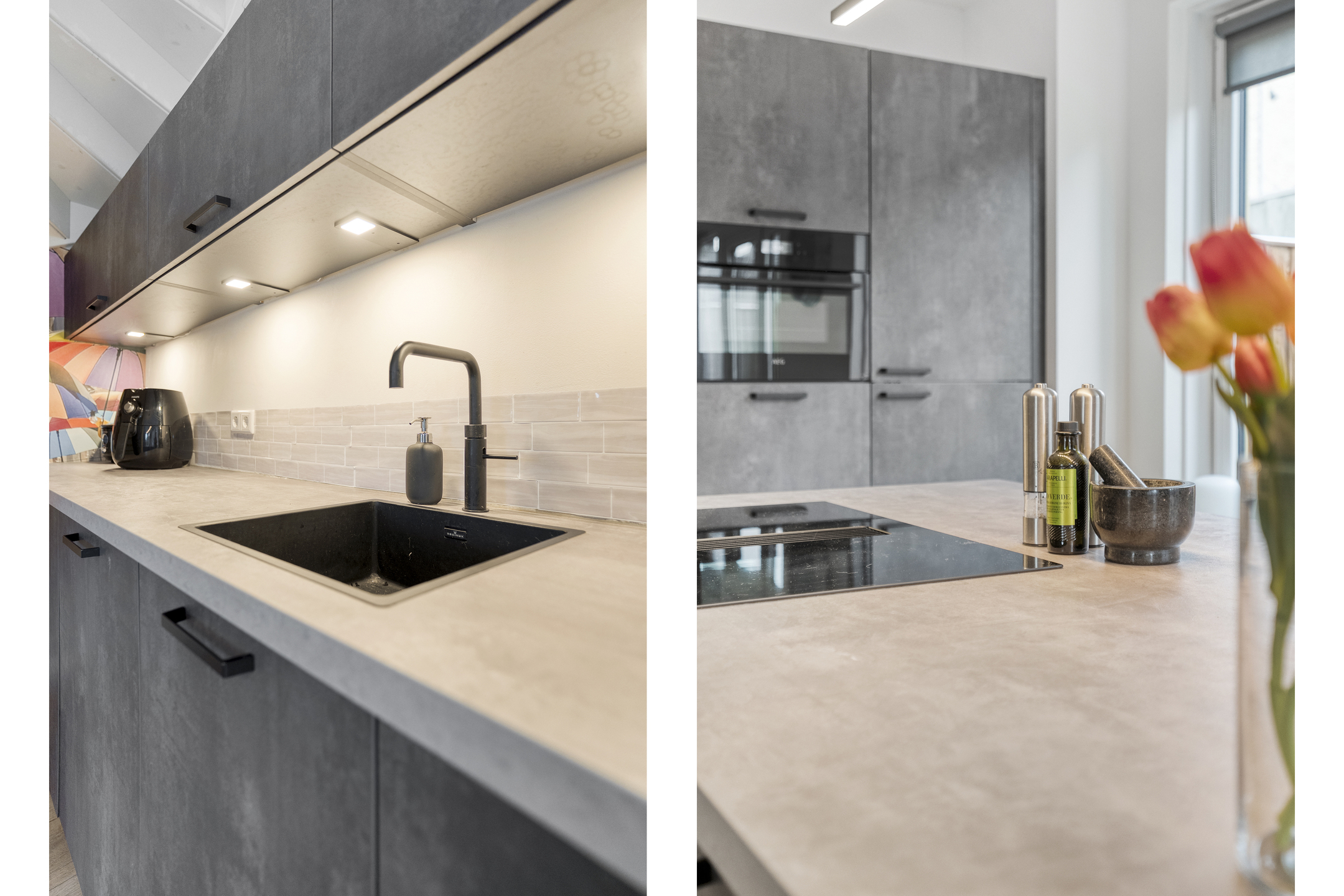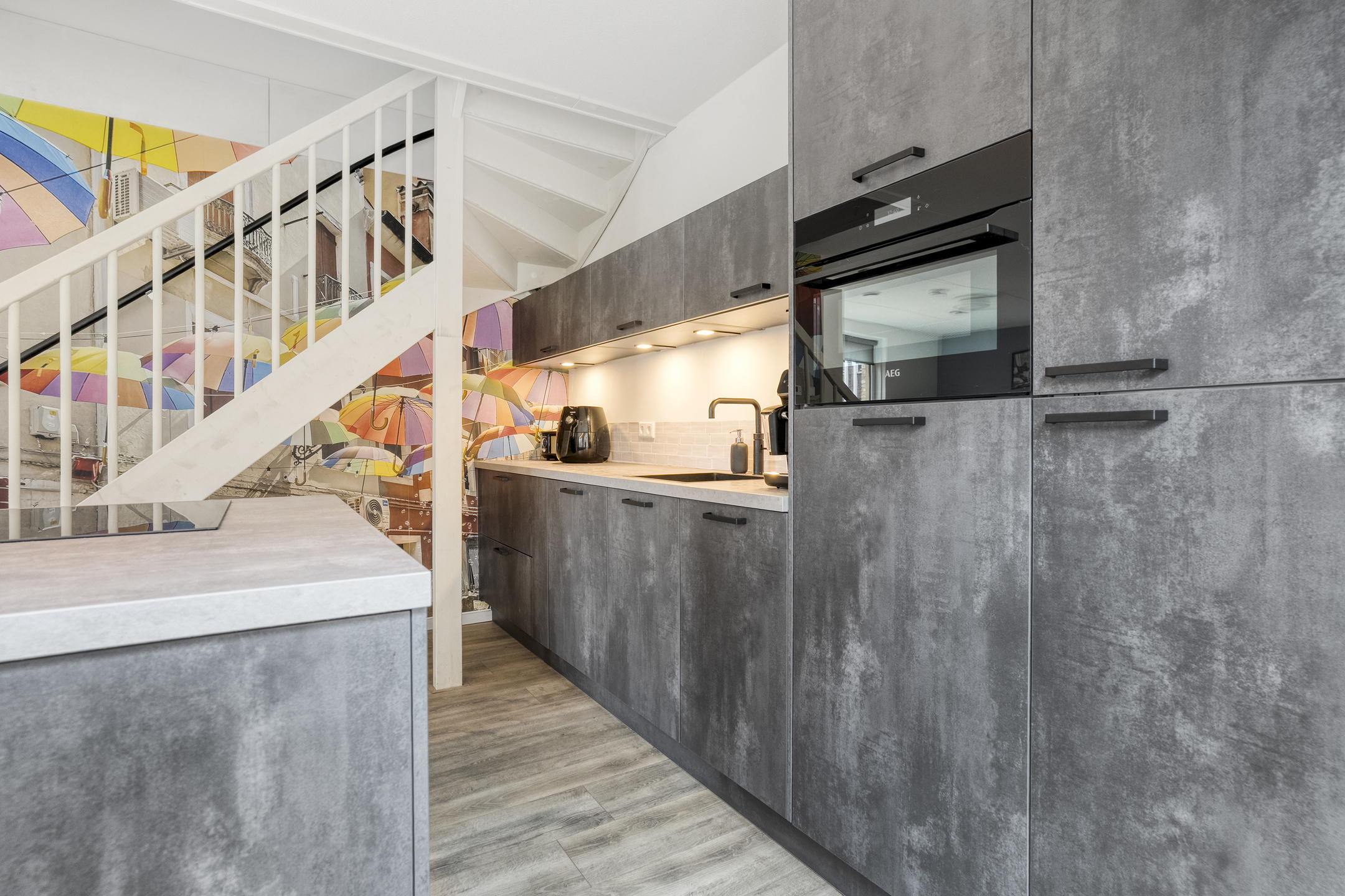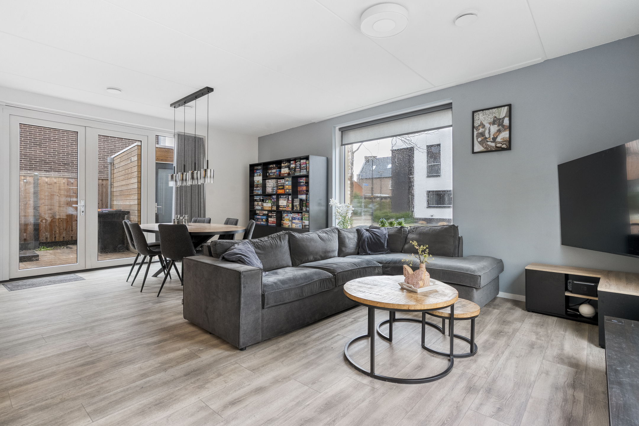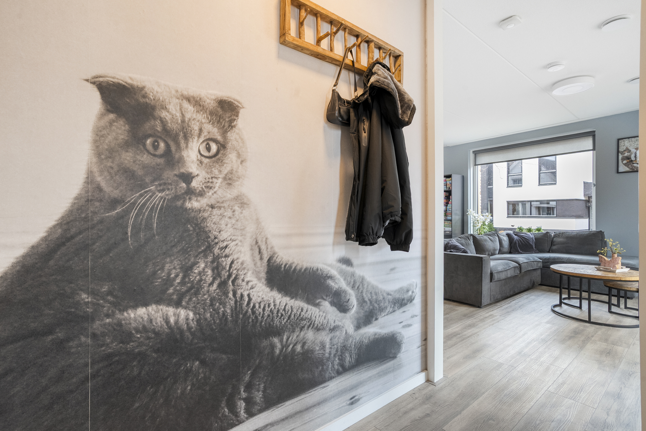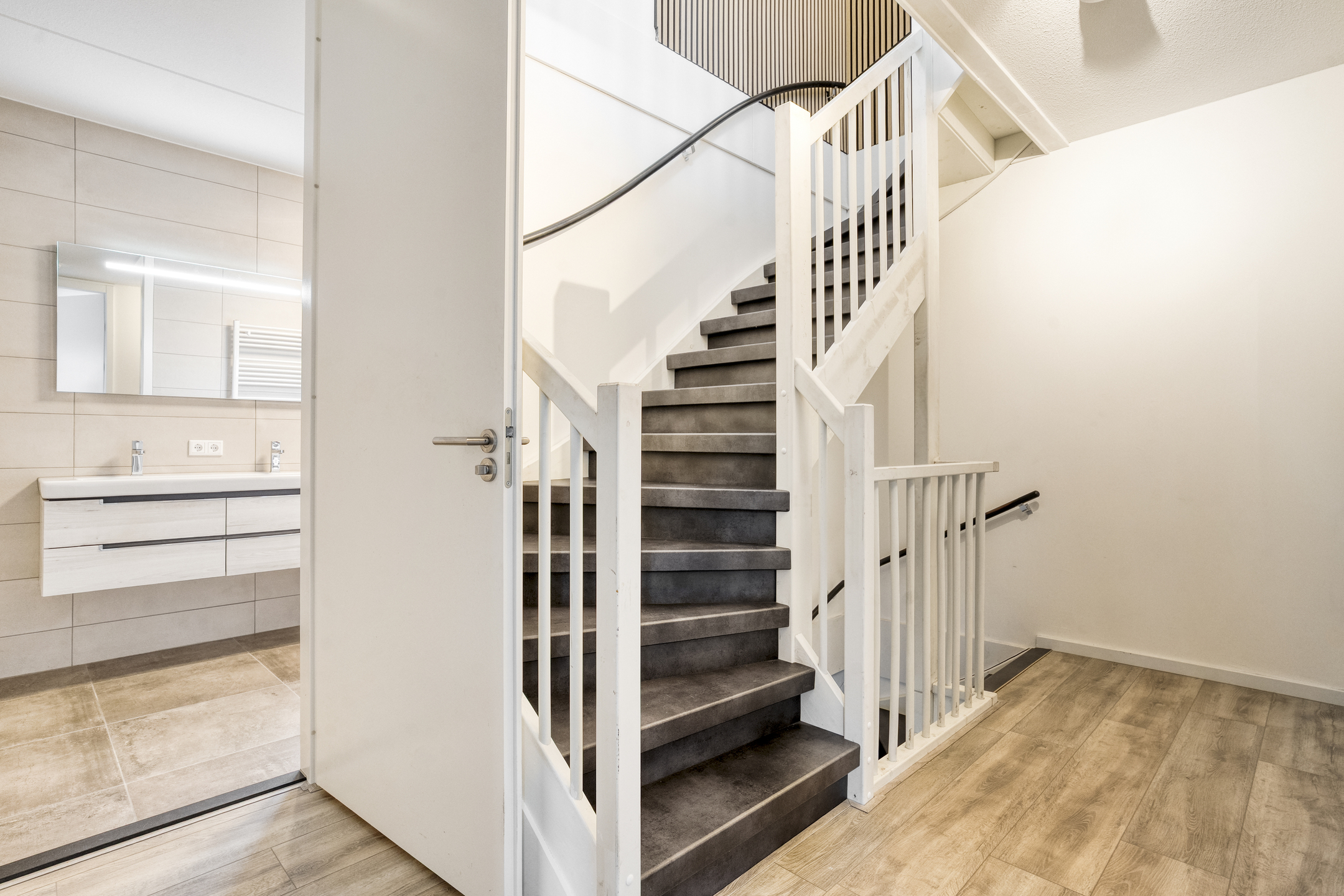 Bij binnenkomst tref je een hal met toegang tot het toilet met fonteintje en de meterkast. De ruime en lichte woonkamer loopt naadloos over in een moderne open keuken, voorzien van diverse inbouwapparatuur en een ruim kookeiland. Dankzij de grote ramen is er volop natuurlijk licht, wat bijdraagt aan een warme en uitnodigende sfeer.