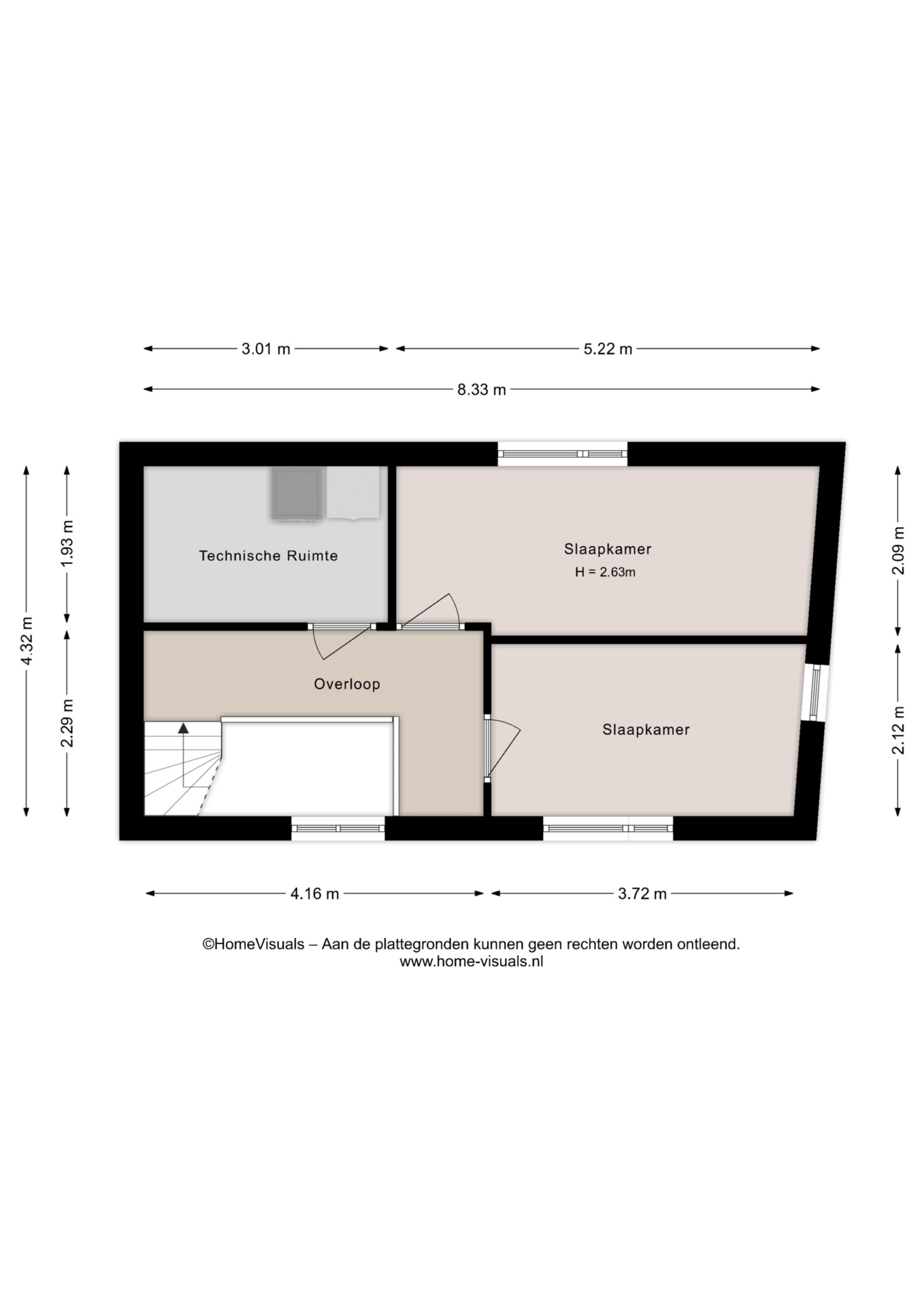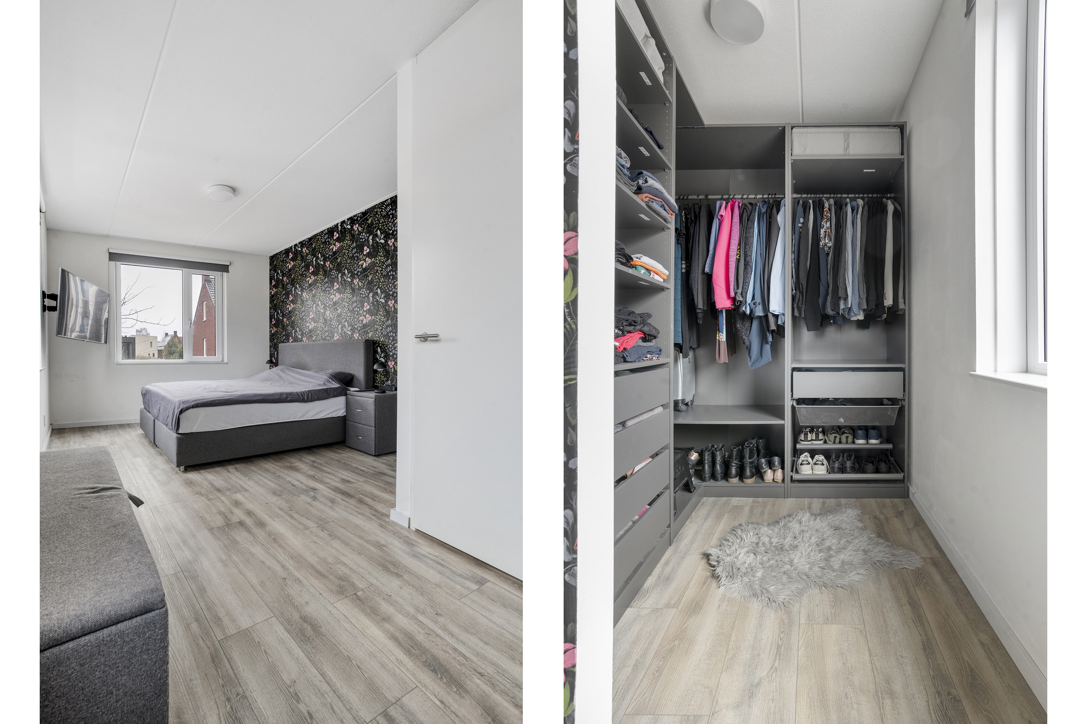Op de eerste en tweede verdieping bevinden zich de vier ruime slaapkamers van het huis, evenals een goed uitgeruste badkamer met toilet, wastafelmeubel en inloopdouche op de eerste verdieping. Daarnaast is er op een tweede verdieping een technische ruimte met de o.a. de warmtepomp en wasmachine aansluiting. Met de ruimte en flexibiliteit die deze kamers bieden, kan je van jouw huis een thuis maken.