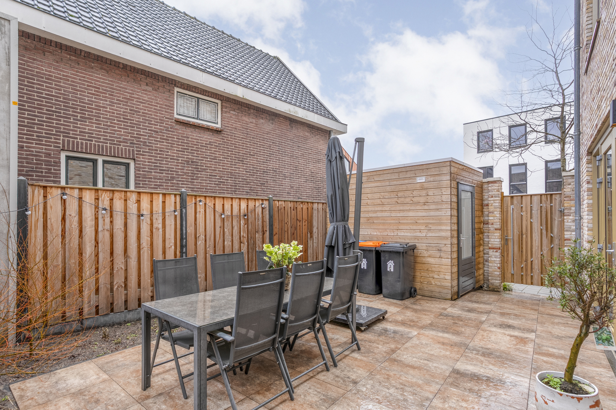 De tuin aan de achterzijde biedt voldoende ruimte om te ontspannen of om vrienden en familie te ontvangen op zonnige dagen. En voor extra opslag is er een vrijstaande houten berging van 6 m2.
