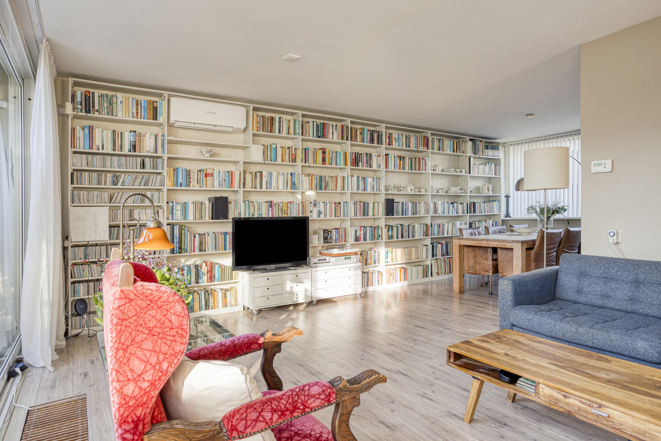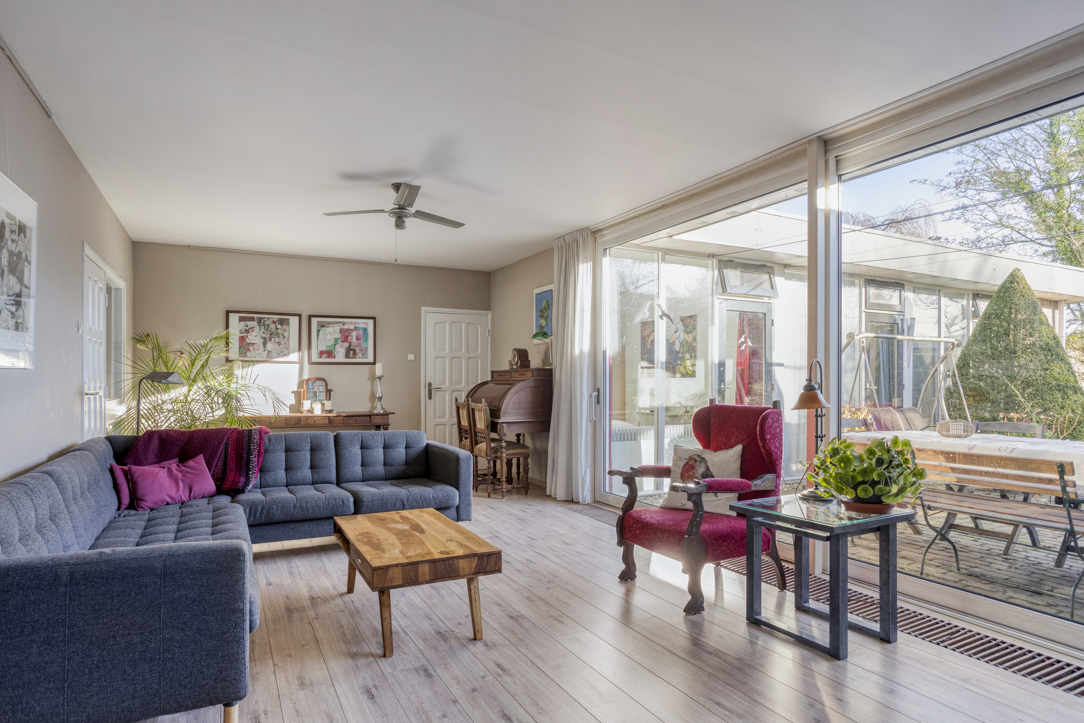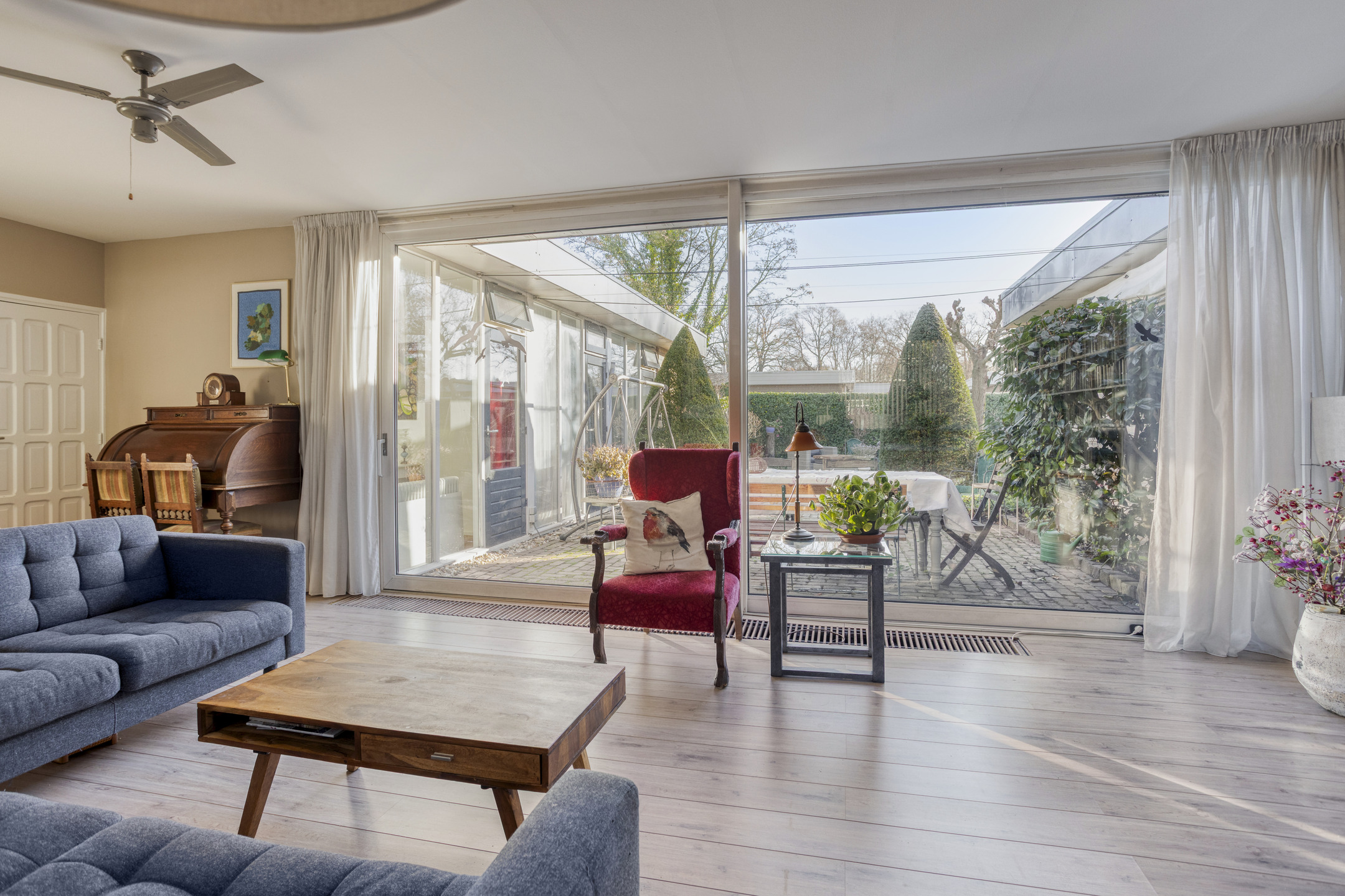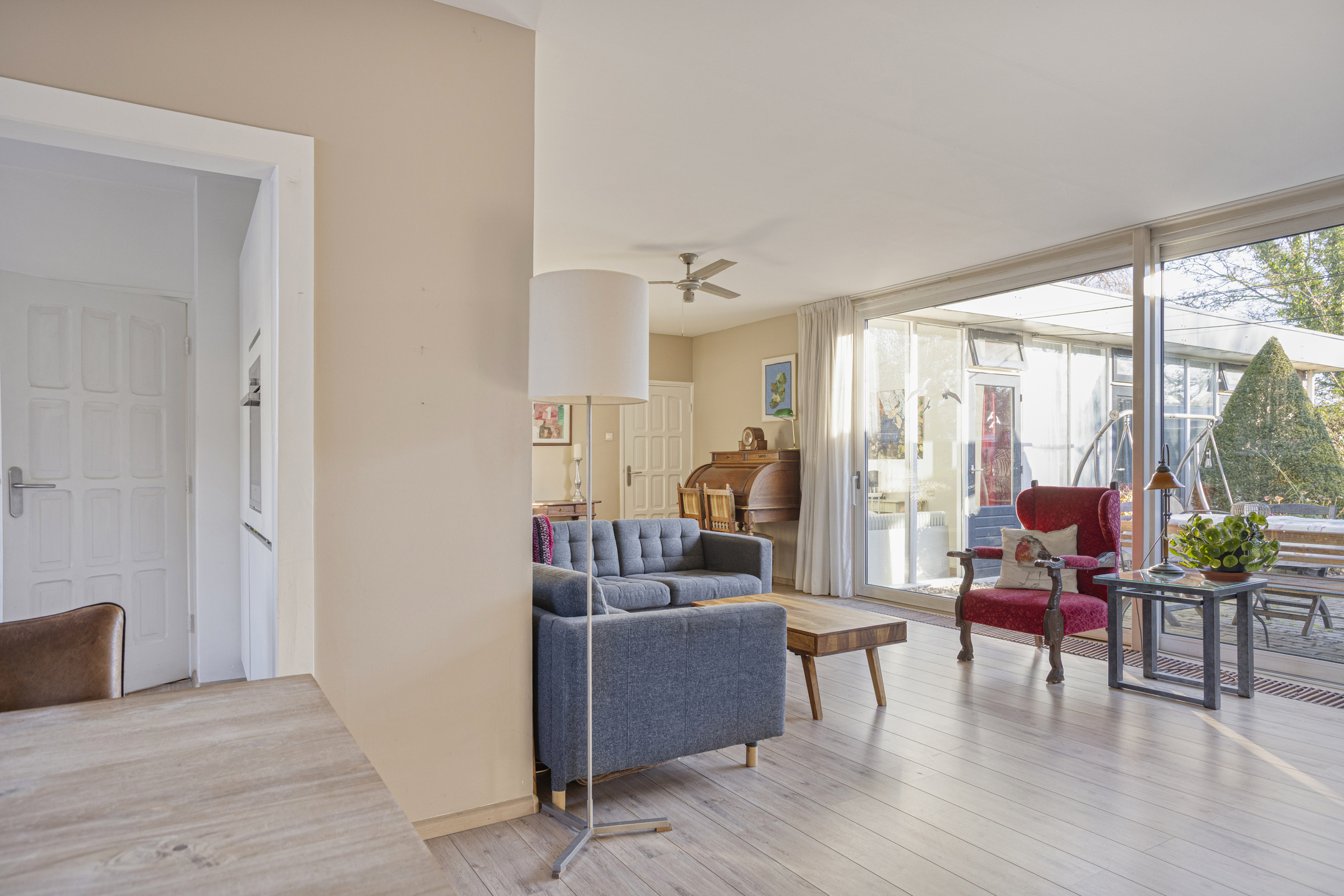 - Ruime, lichte L-vormige woonkamer met schuifpui naar de tuin.