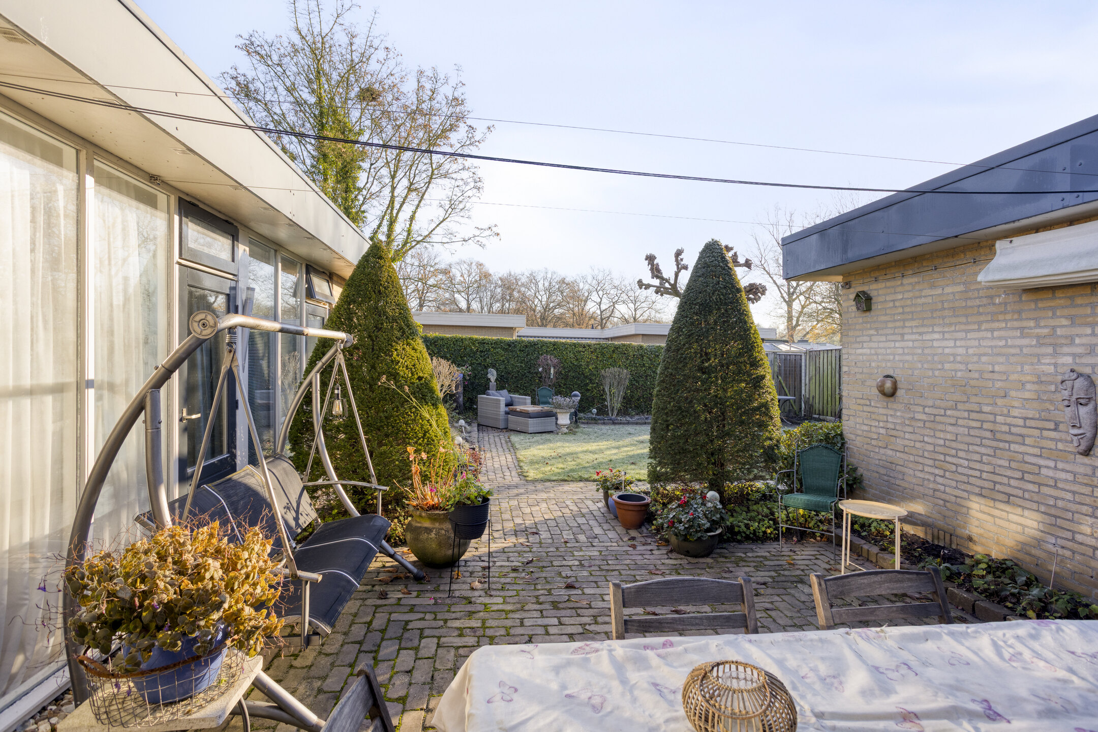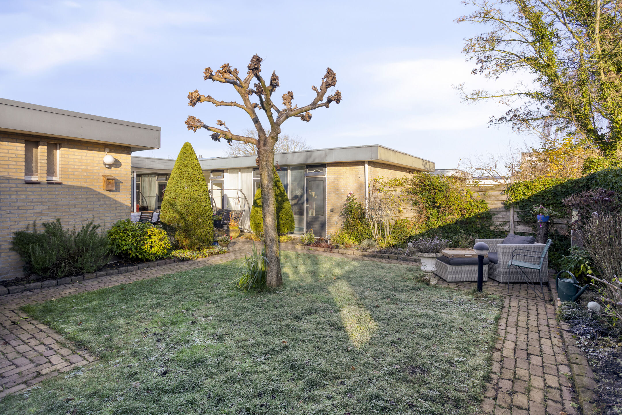 Bij aankomst valt meteen op hoe royaal het geheel is opgezet. Het perceel van 381 m² biedt een keurig onderhouden voor- en achtertuin, waarbij de achtertuin op het oosten ligt en dankzij de eigen achterom bijzonder praktisch in gebruik is. Vanuit vrijwel elke ruimte stap je zo de tuin in, wat zorgt voor veel licht, vrijheid en fijne zitplekjes gedurende de dag.