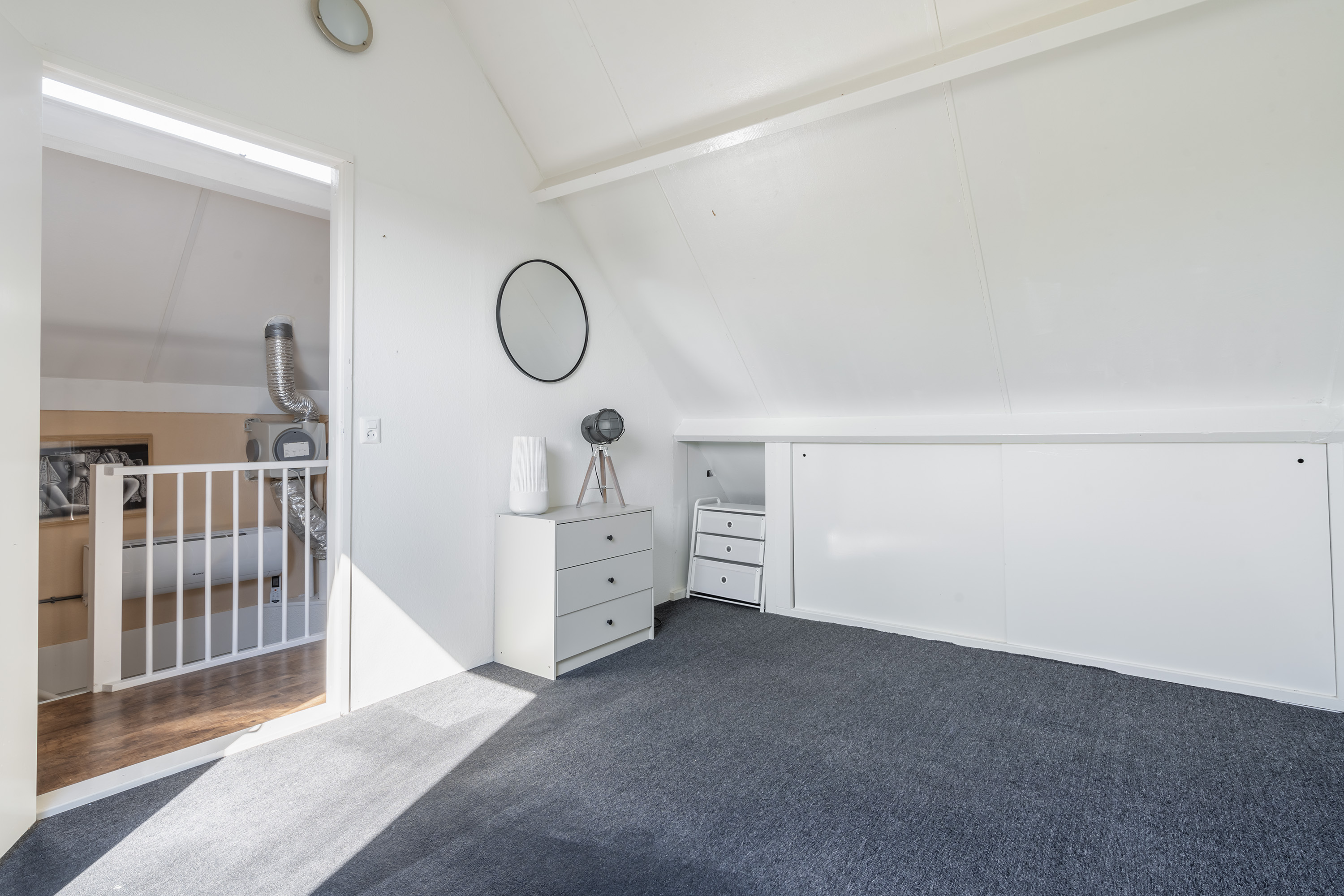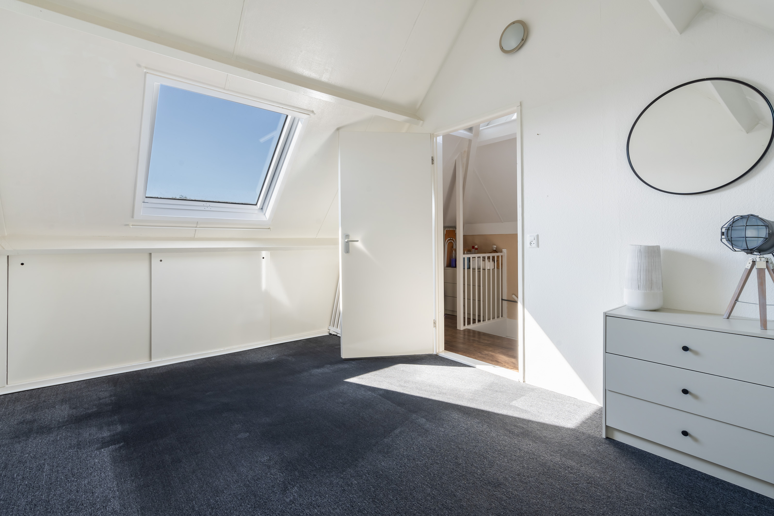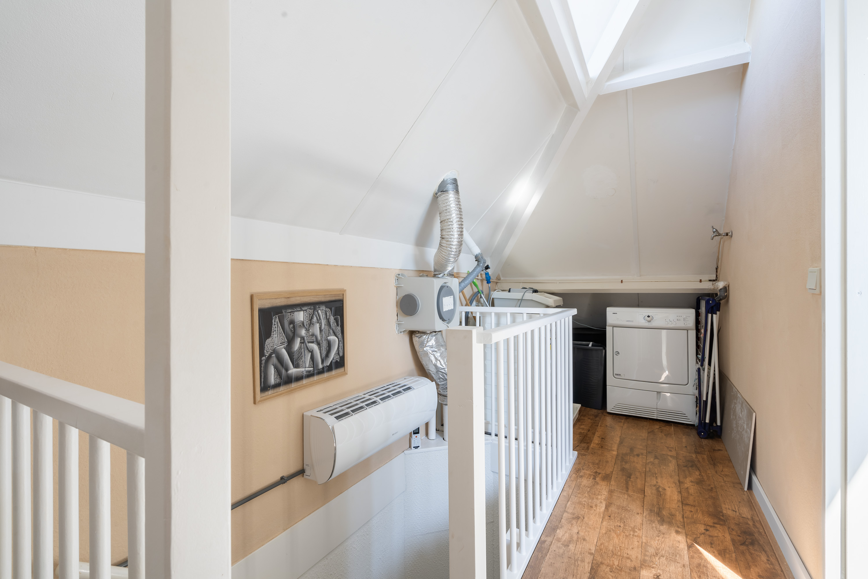 Tweede verdieping: middels vaste trap bereikbare zolderverdieping, overloop met wasruimte en vierde slaapkamer voorzien van een dakraam en bergruimten middels knieschotten.