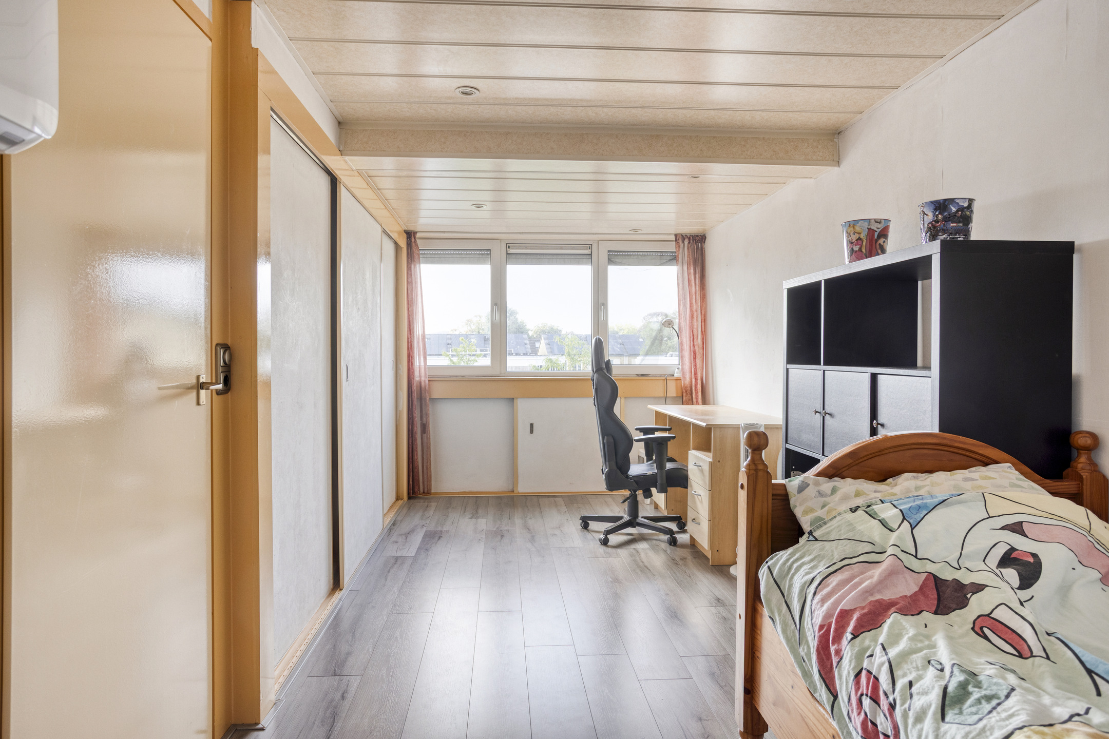 De tweede verdieping is bereikbaar via een vaste trap en beschikt over een overloop met opstelplaats voor witgoed en de CV-ketel. Hier bevindt zich ook de derde slaapkamer, compleet met dakkapel en airconditioning.
