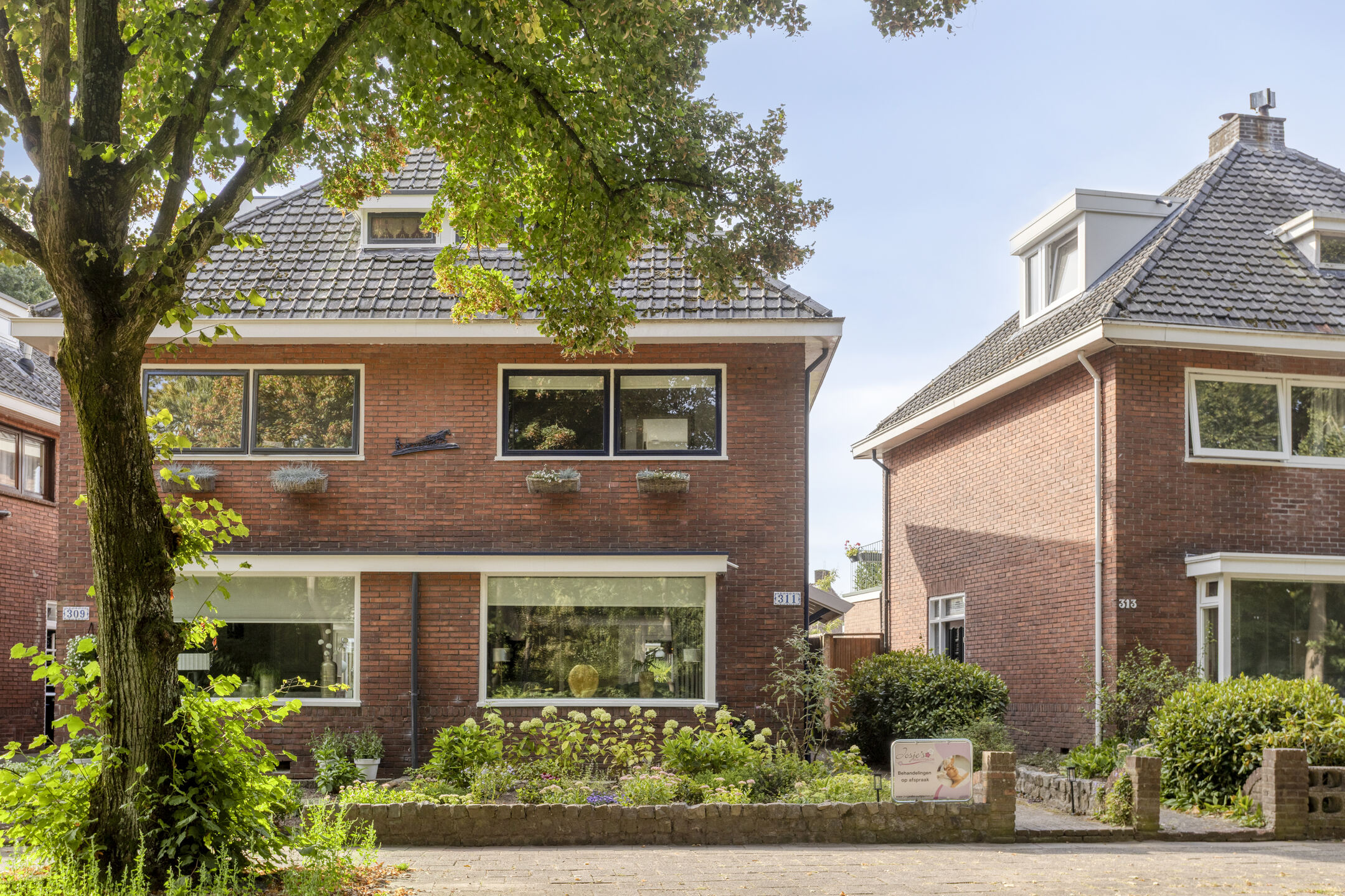 Gemoderniseerde jaren ’30-woning met uitzicht op het park en praktijkruimte in de tuin.