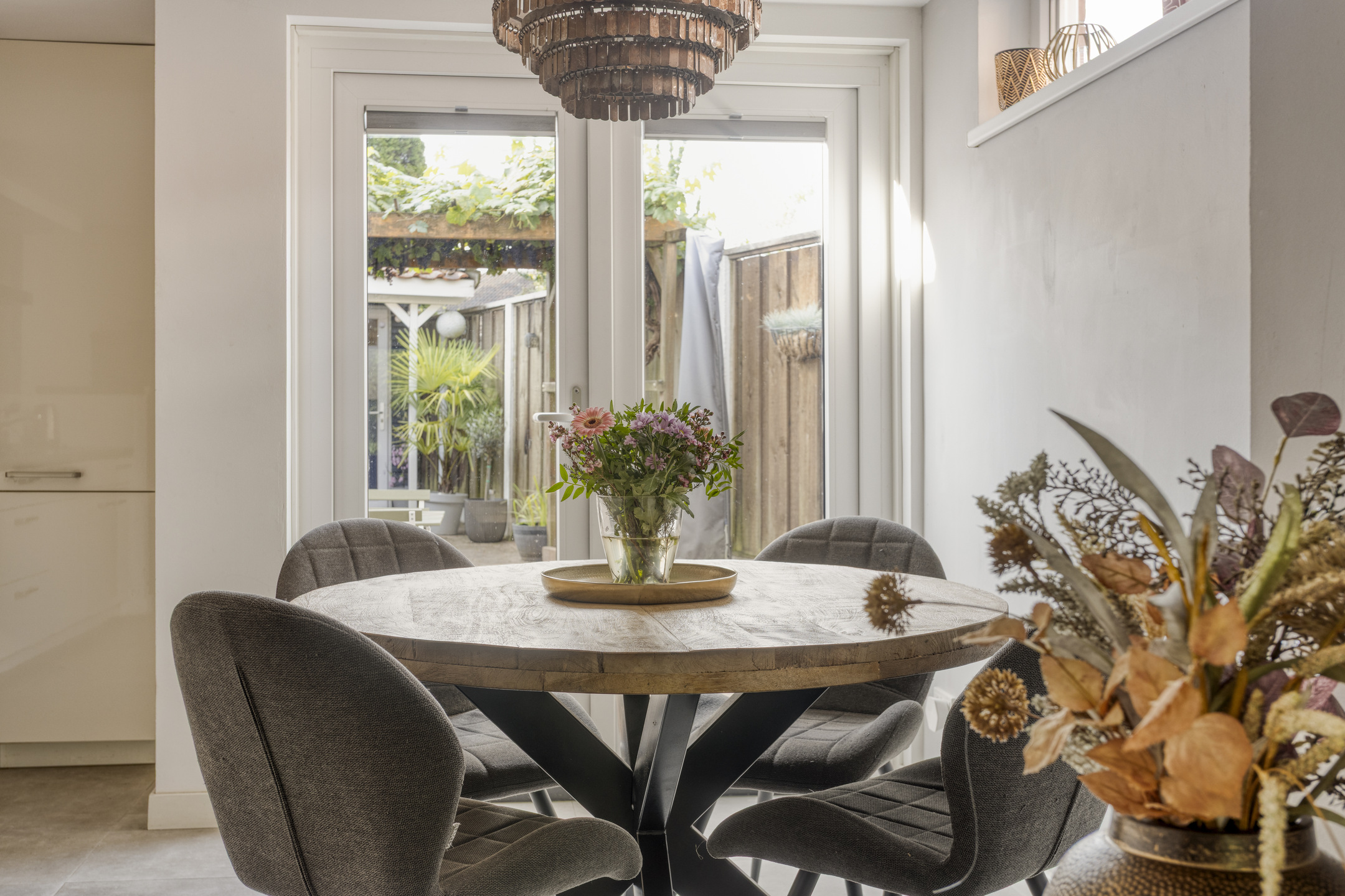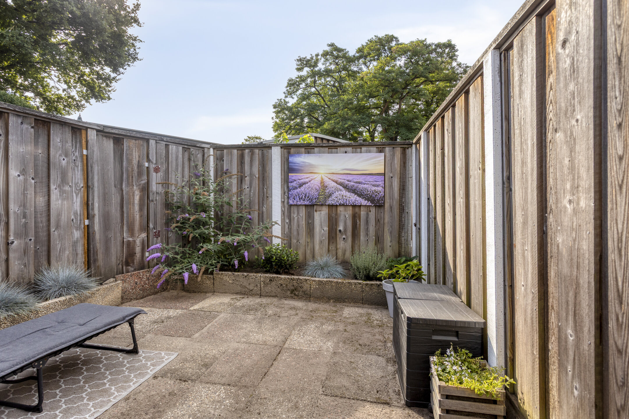 ’s Ochtends met een kop koffie in de hand, zittend in de zon terwijl de vogels fluiten in de tuin. Of juist ’s avonds met een goed boek of een wandeling door het park tegenover de woning, tussen de bomen en langs het water. Op deze plek in ’t Bruggert, een geliefde en groene wijk in Enschede-Stadsveld, voelt iedere dag een beetje als vakantie.