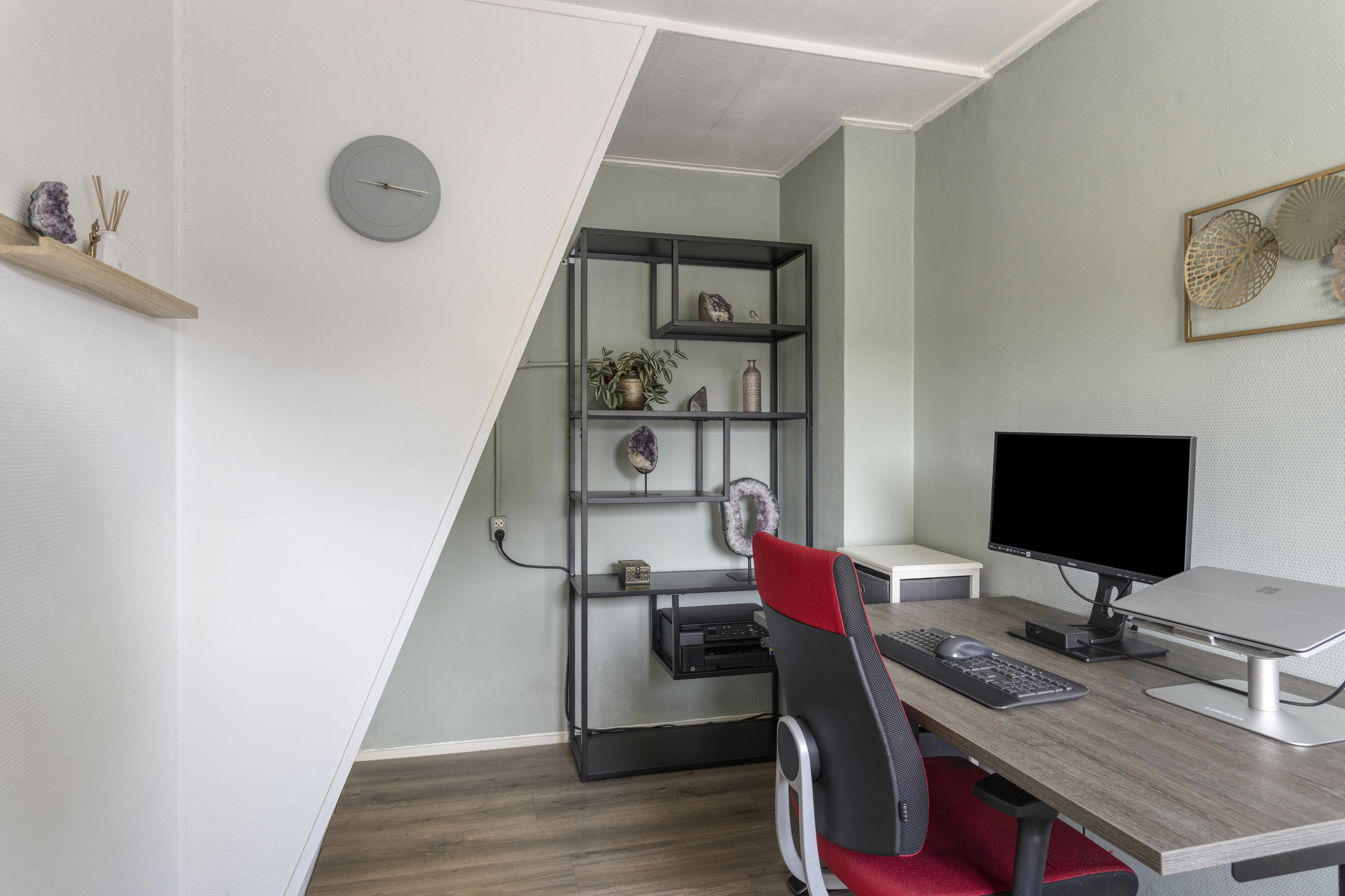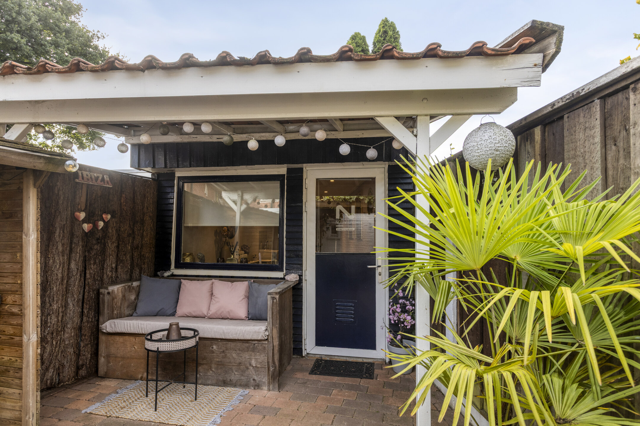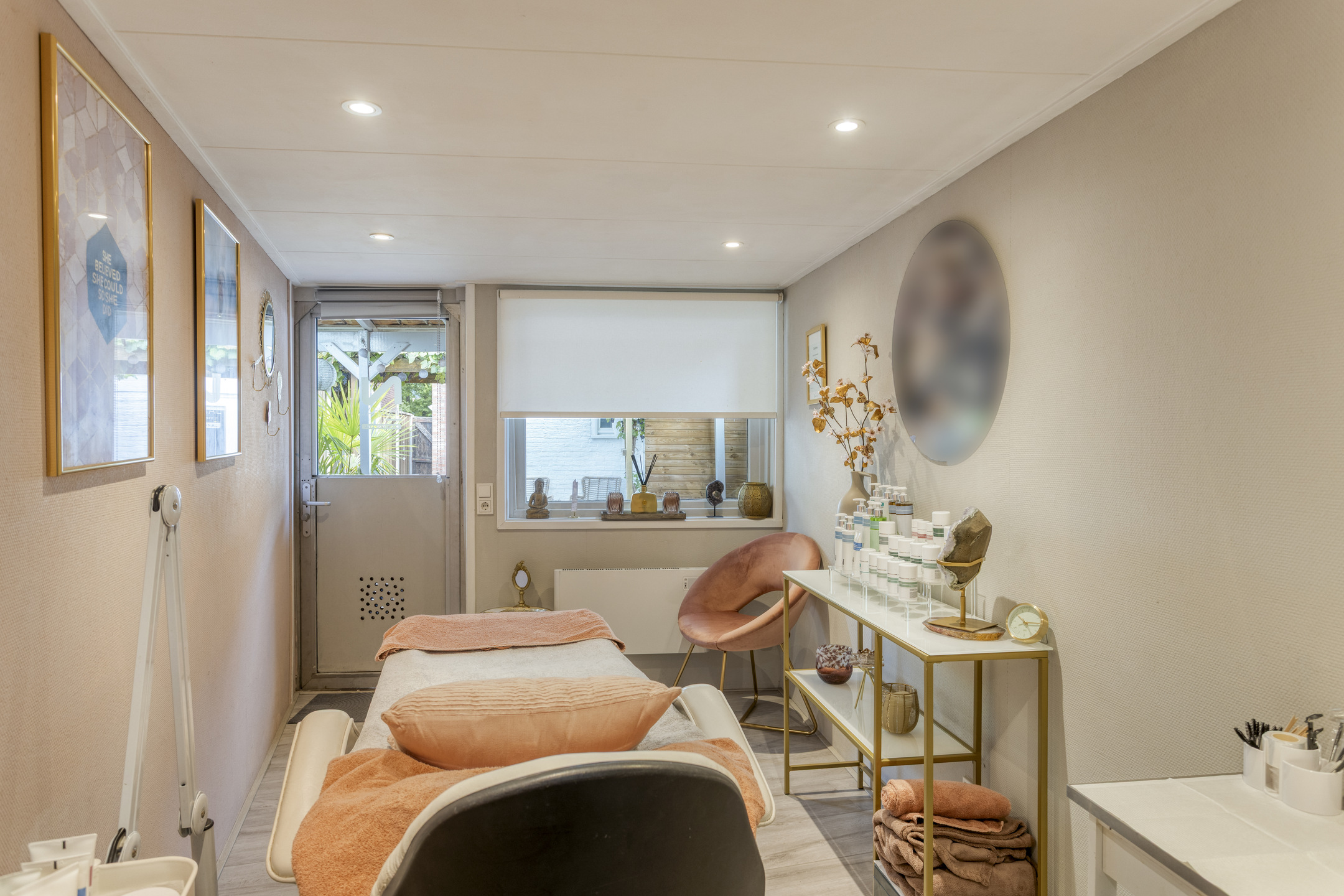 Achter in de tuin bevindt zich een volledig geïsoleerde praktijkruimte met eigen entree en wateraansluiting. Deze voormalige schuur is in 2021 tot in de puntjes verbouwd en wordt momenteel gebruikt als schoonheidssalon, maar biedt ook volop mogelijkheden bijvoorbeeld als thuiskantoor, kapsalon of nette berging voor fietsen en tuingereedschap.