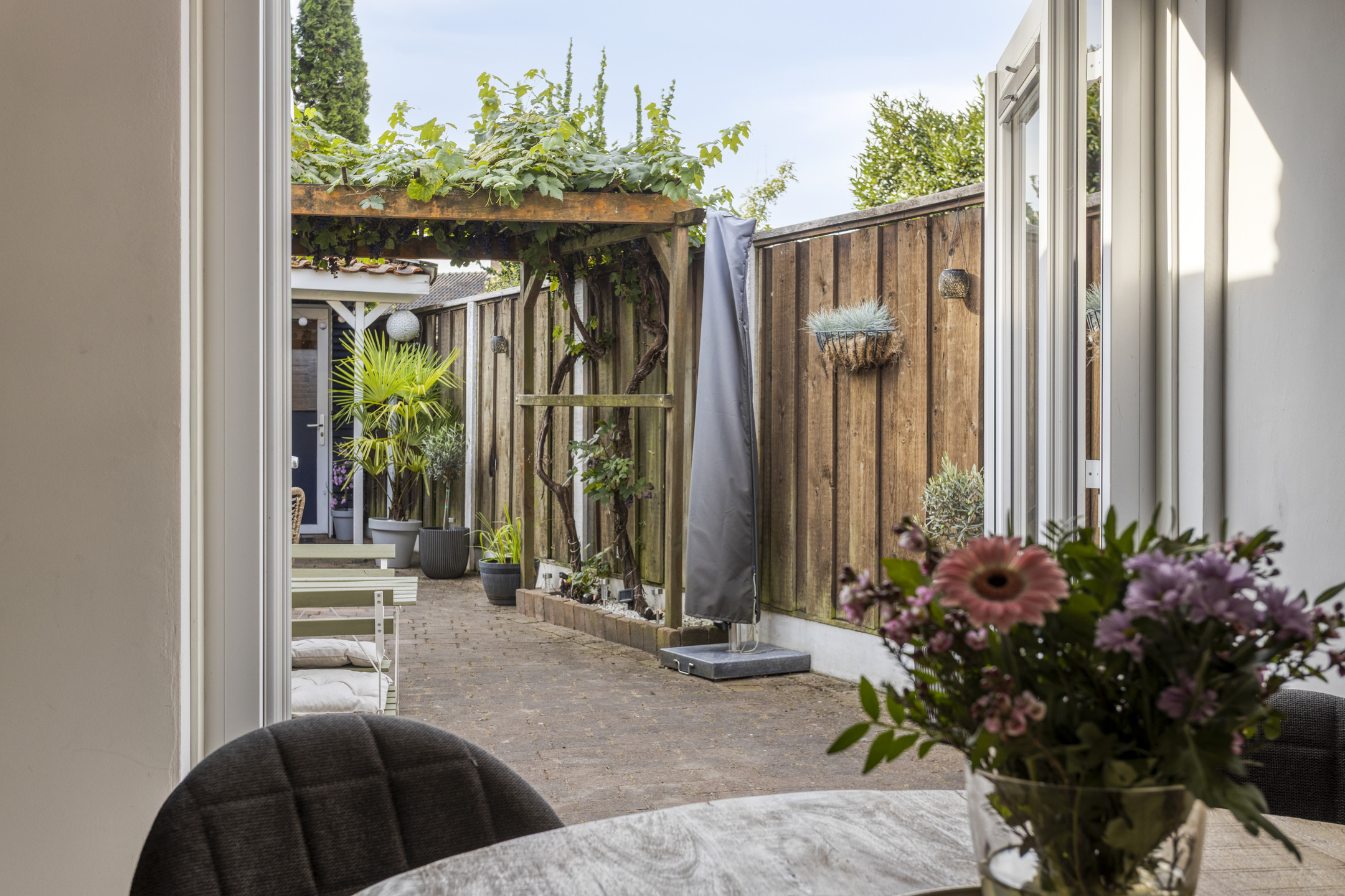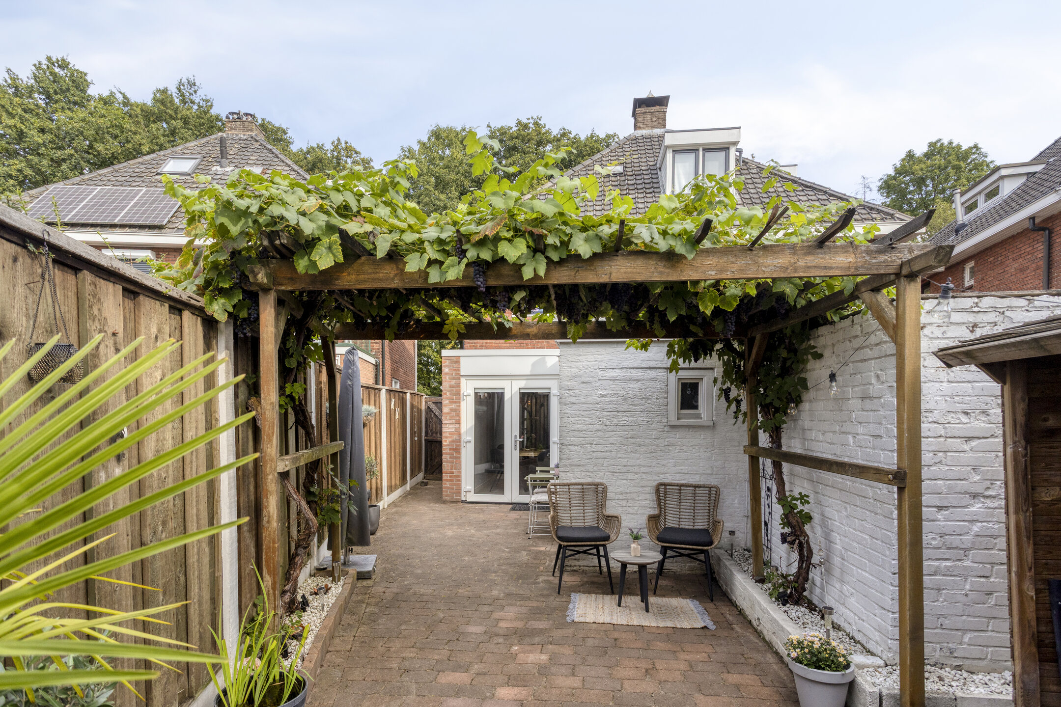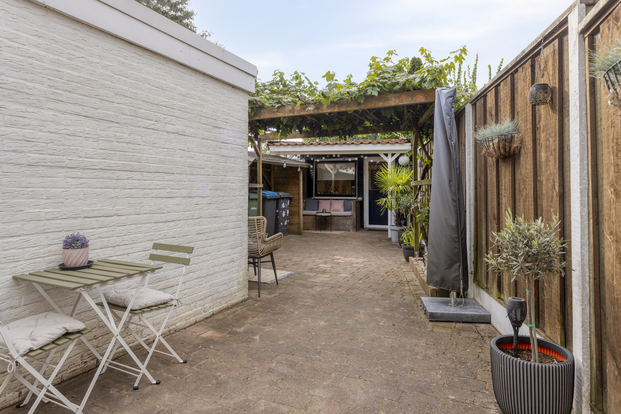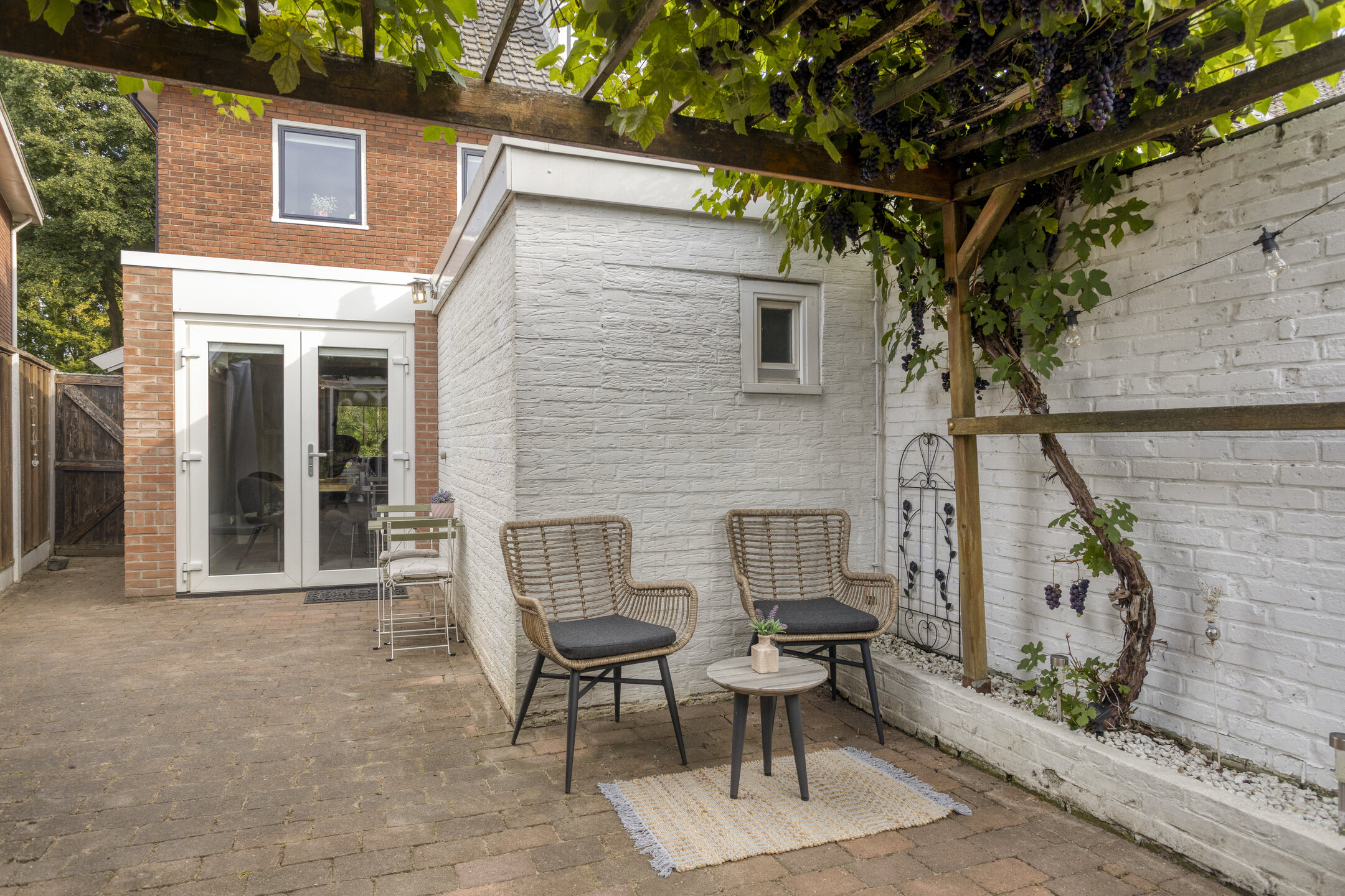 Achter in de tuin bevindt zich een volledig geïsoleerde praktijkruimte met eigen entree en wateraansluiting. Deze voormalige schuur is in 2021 tot in de puntjes verbouwd en wordt momenteel gebruikt als schoonheidssalon, maar biedt ook volop mogelijkheden bijvoorbeeld als thuiskantoor, kapsalon of nette berging voor fietsen en tuingereedschap.