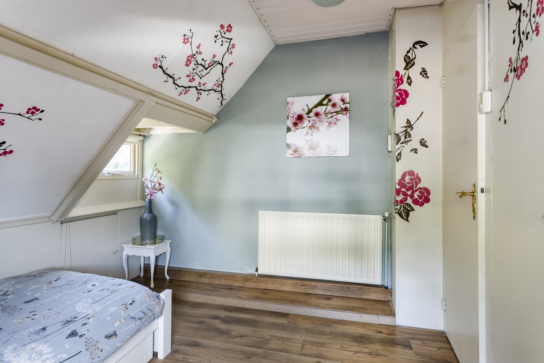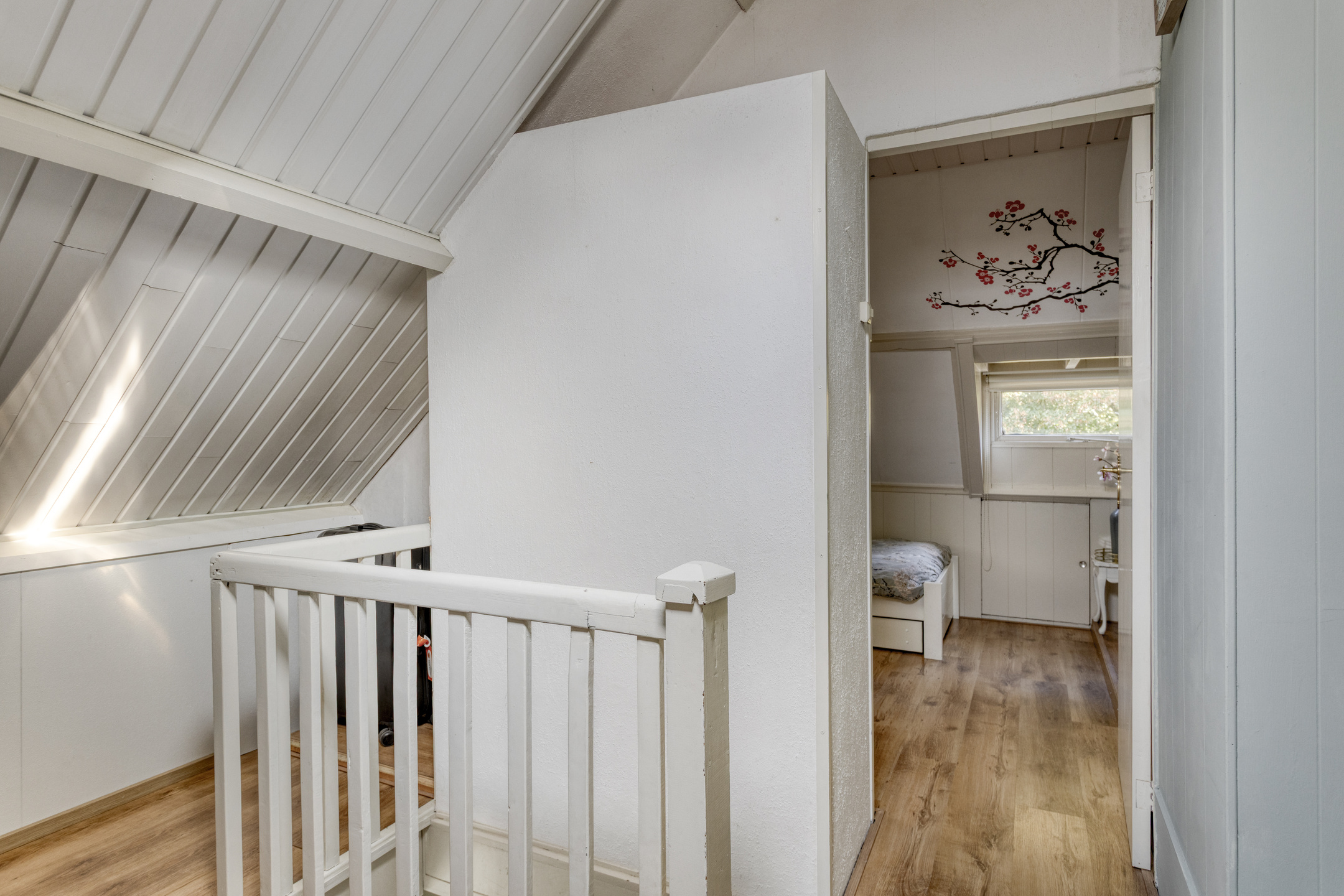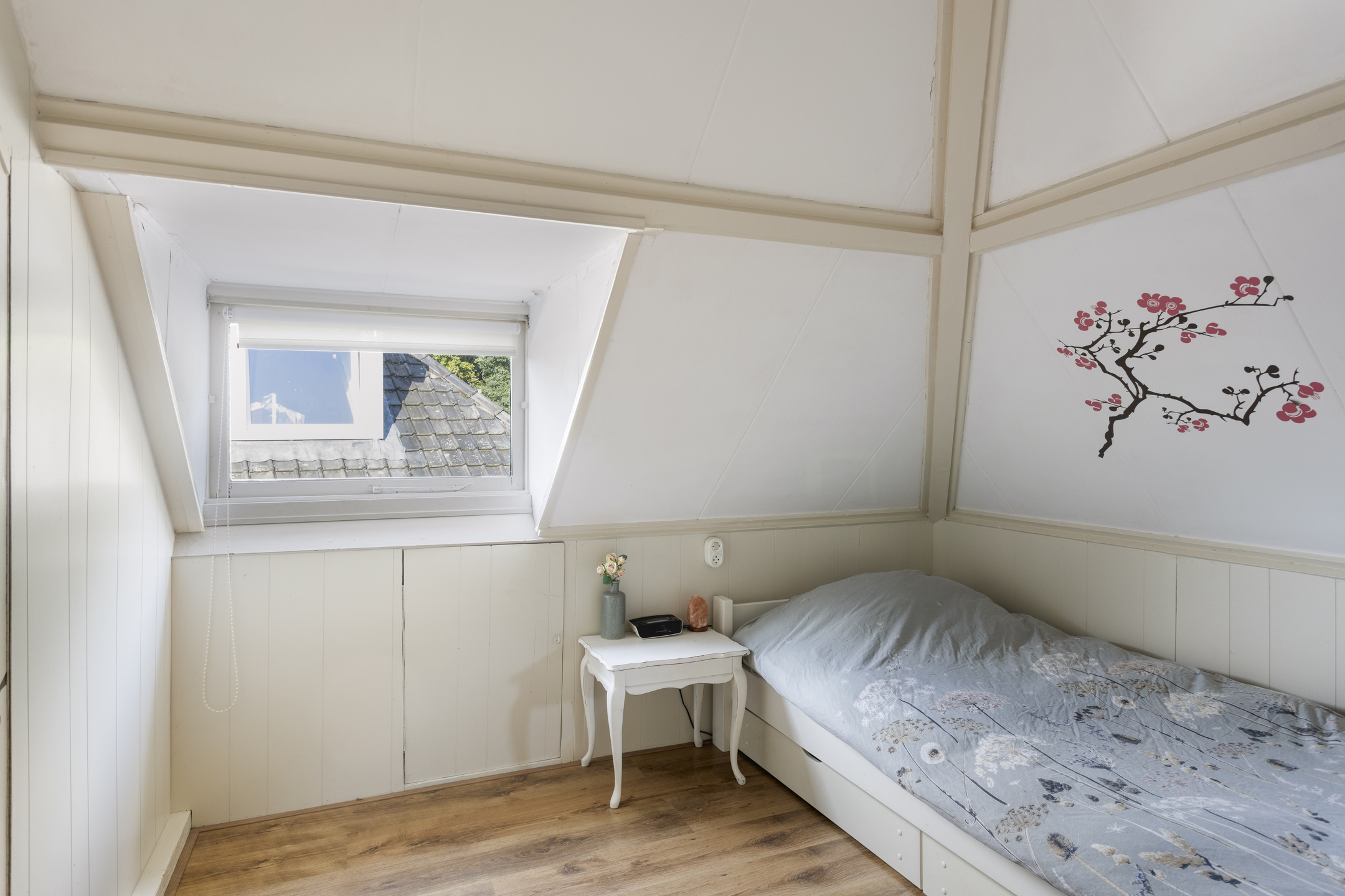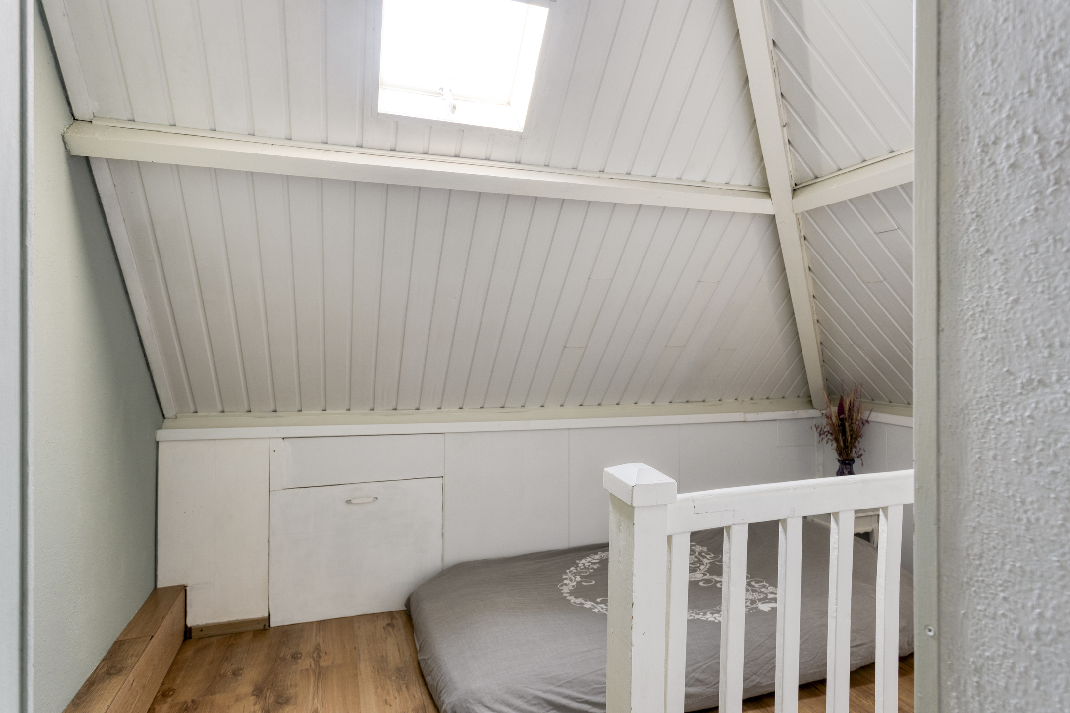 Zolder/tweede verdieping: Derde slaapkamer en bergruimte achter de knieschotten, met mogelijkheid tot het creëren van een vierde slaapkamer.
