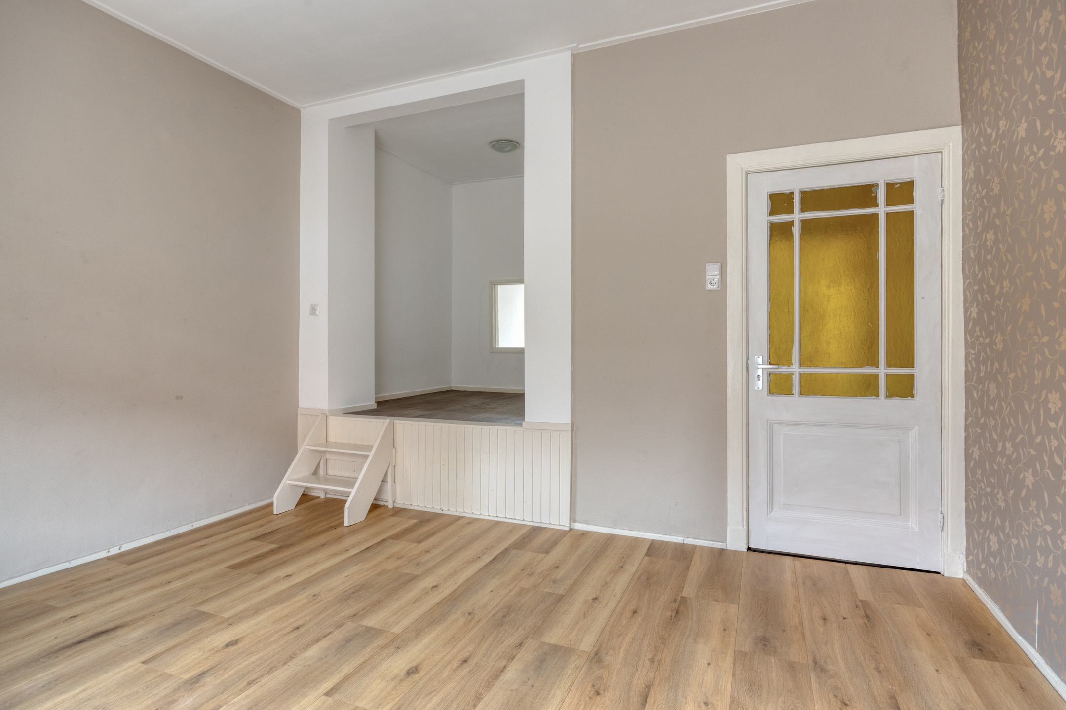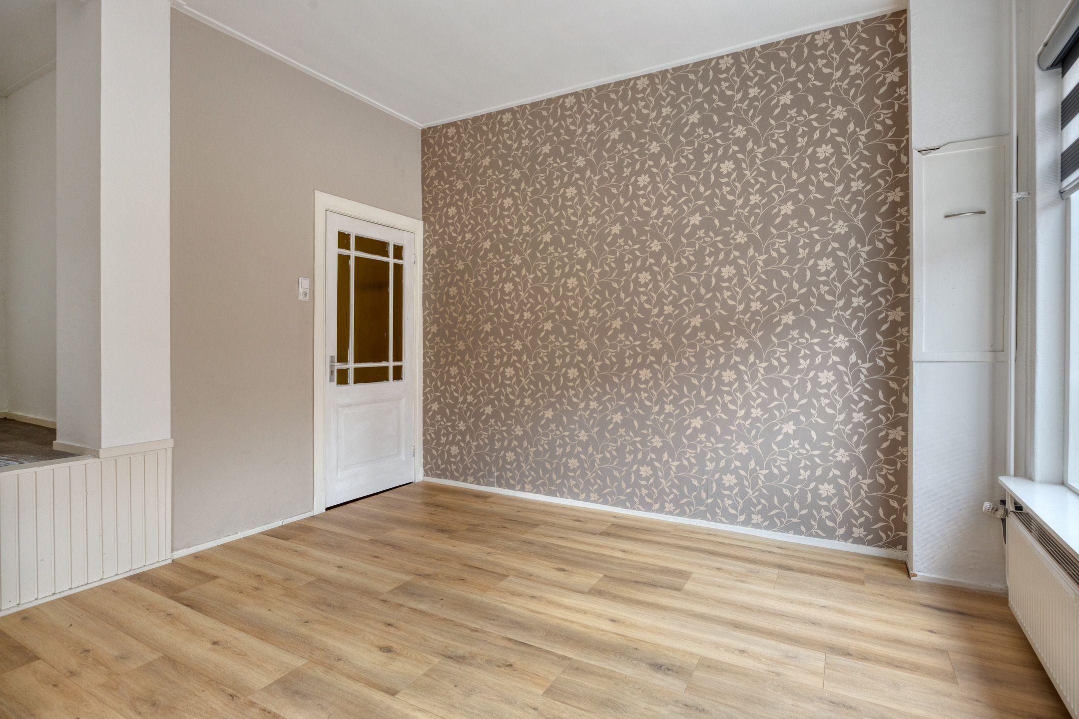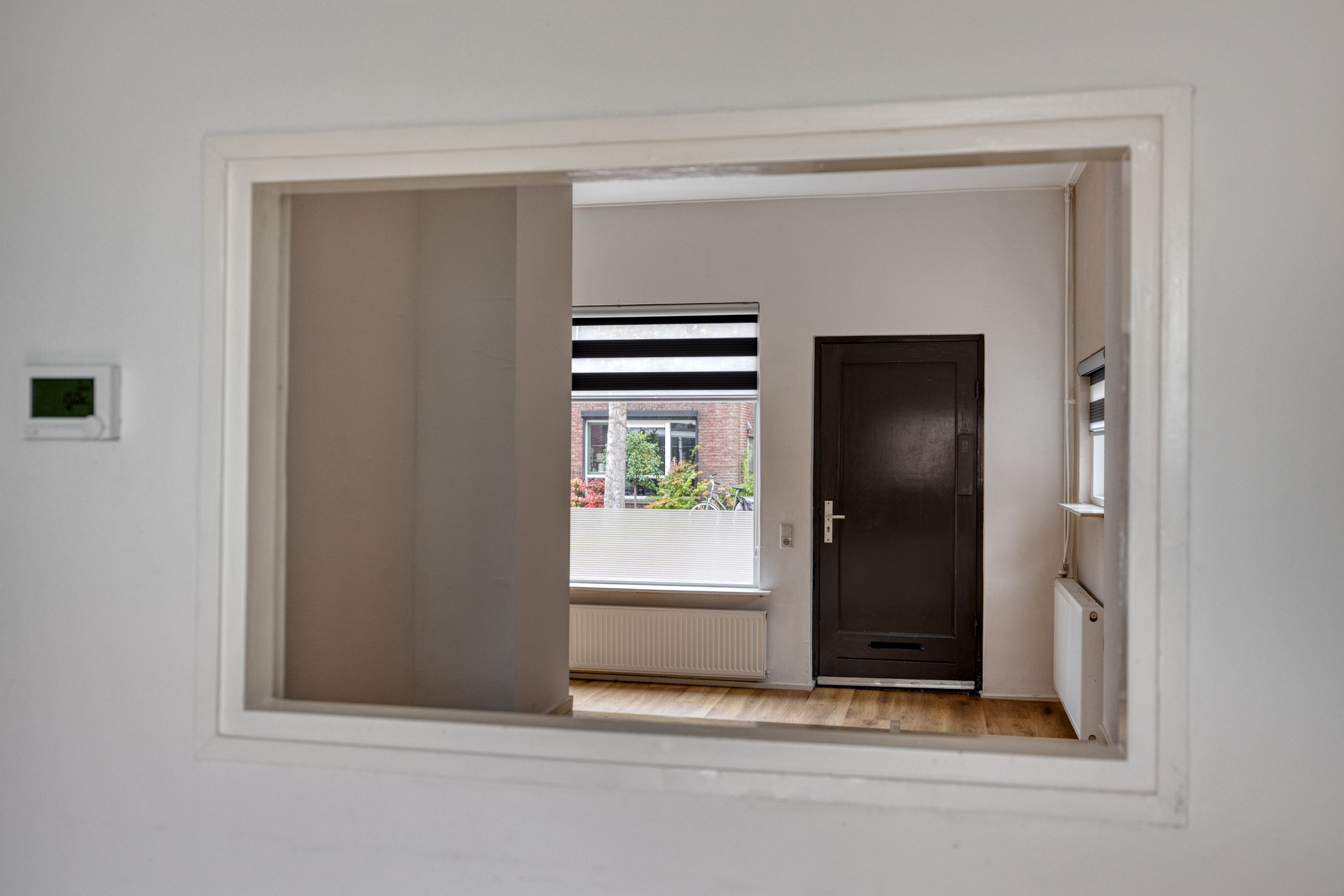 Entree in de voorkamer met nog de originele opkamer, kleine gang met toegang tot de eerste verdieping en kelder, achterkamer, ideaal als eetkamer in te richten, dichte keuken voorzien van keukenblok, portaal met CV en wasmachine aansluiting, apart toilet met fonteintje, badkamer met douche, wastafel en mechanische ventilatie.