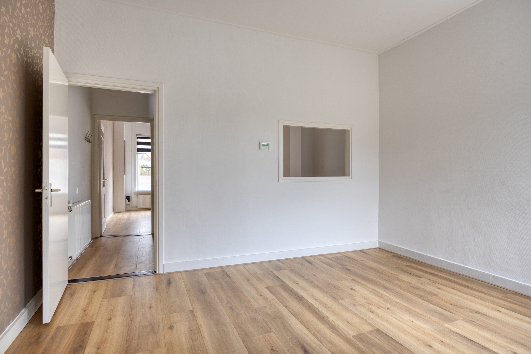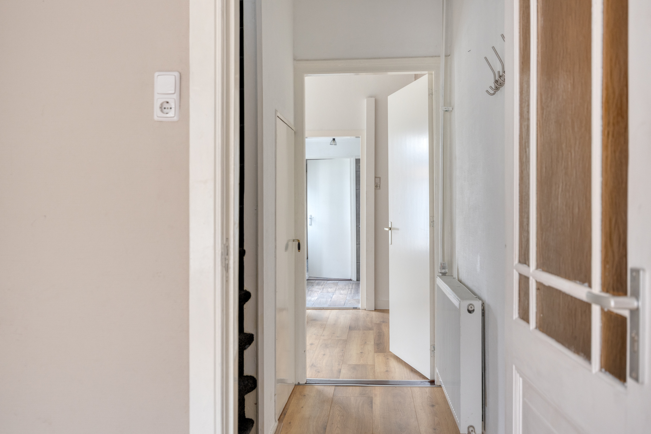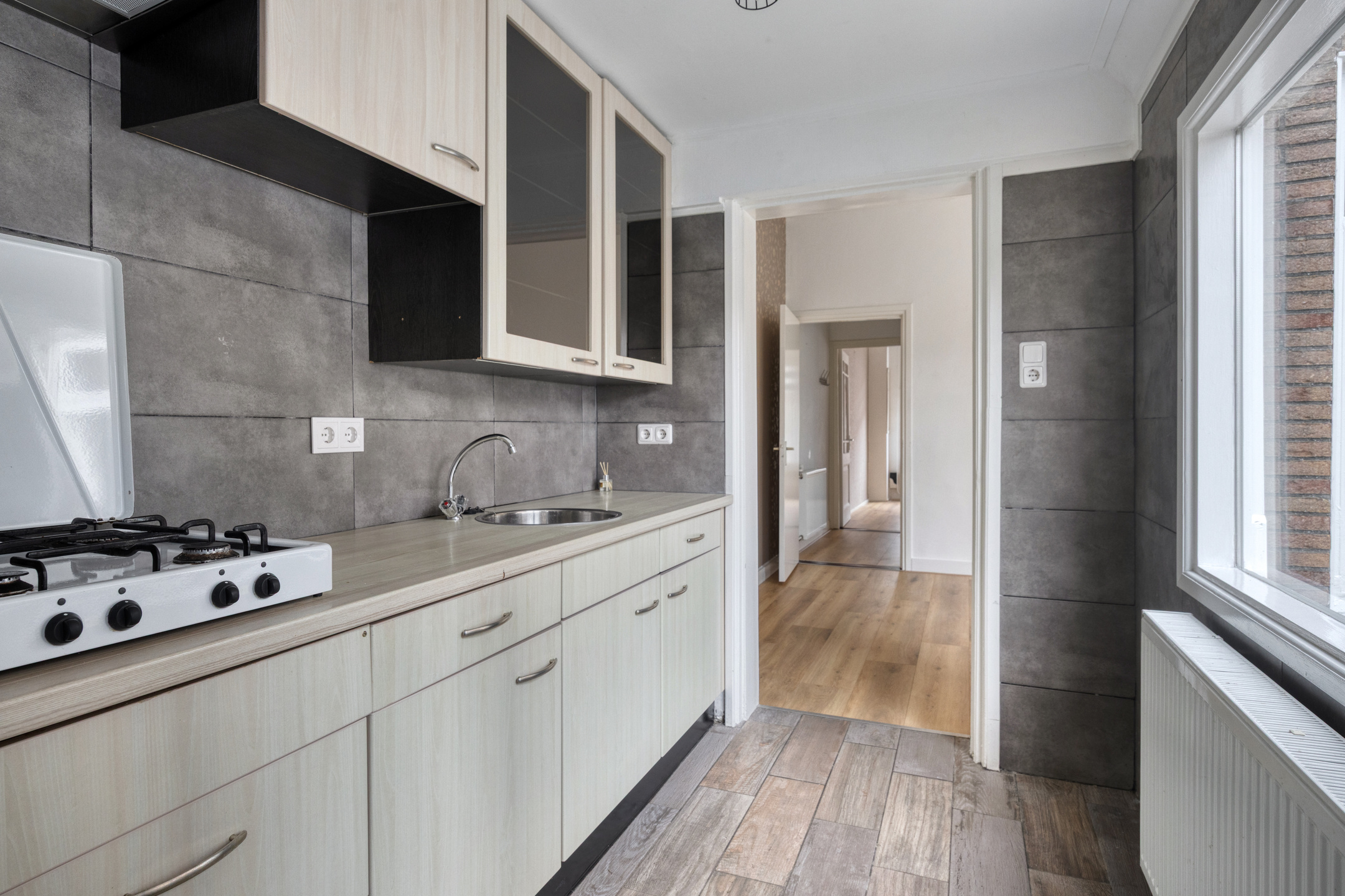 Entree in de voorkamer met nog de originele opkamer, kleine gang met toegang tot de eerste verdieping en kelder, achterkamer, ideaal als eetkamer in te richten, dichte keuken voorzien van keukenblok, portaal met CV en wasmachine aansluiting, apart toilet met fonteintje, badkamer met douche, wastafel en mechanische ventilatie.