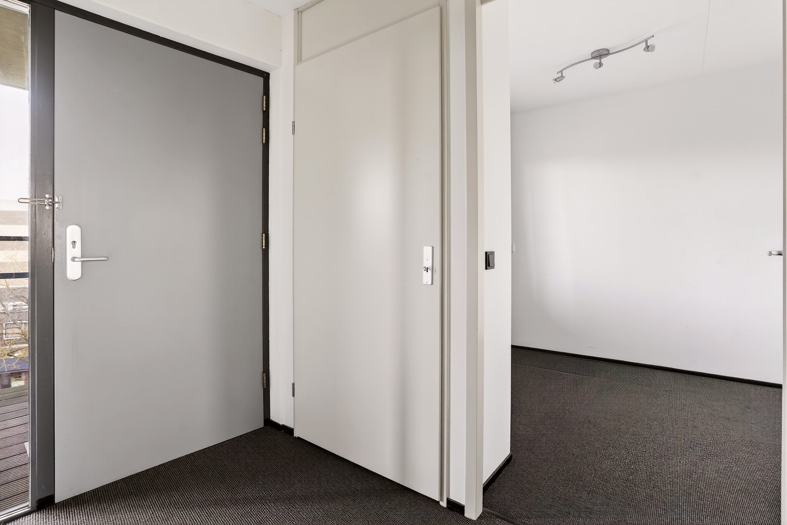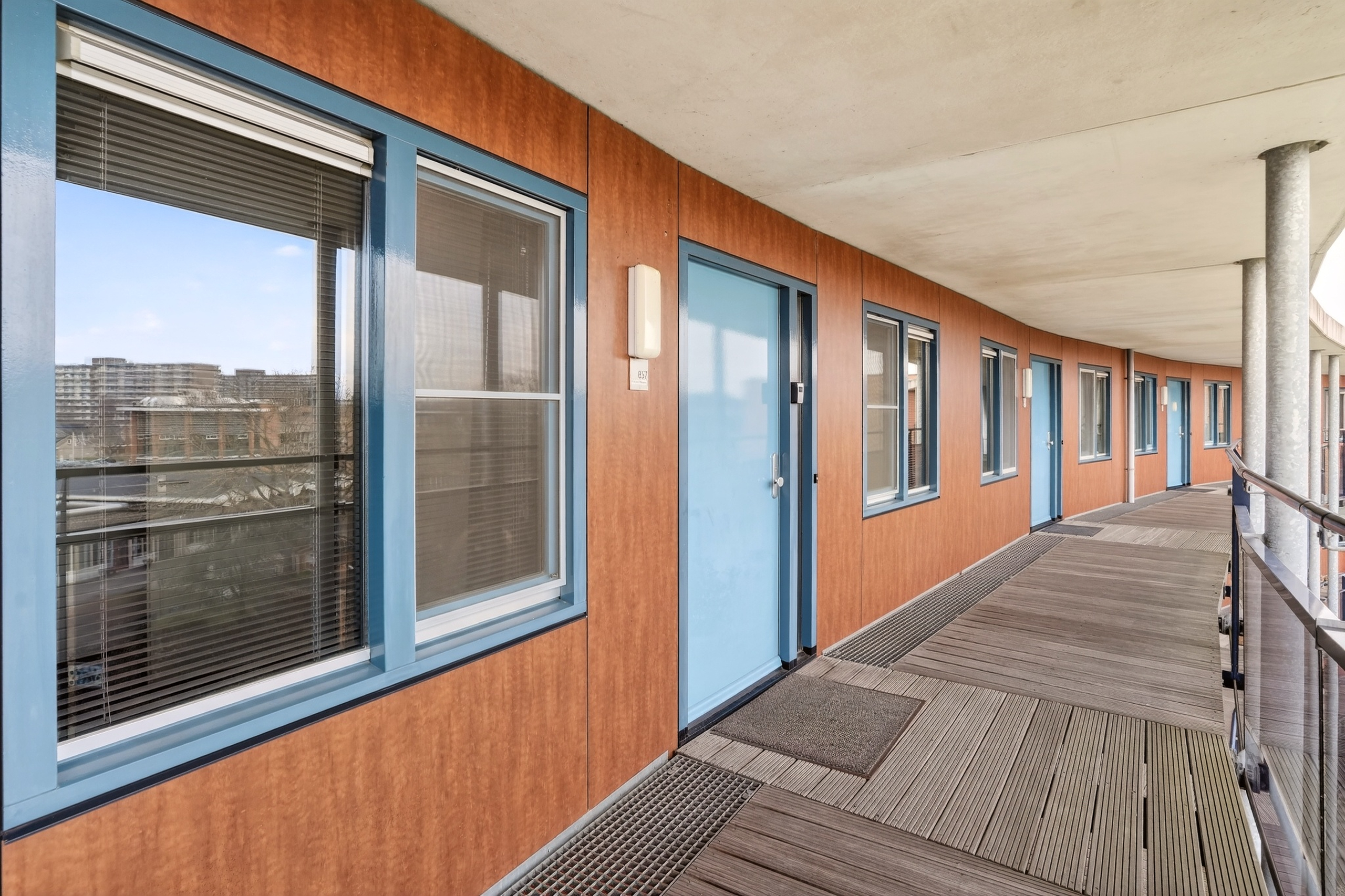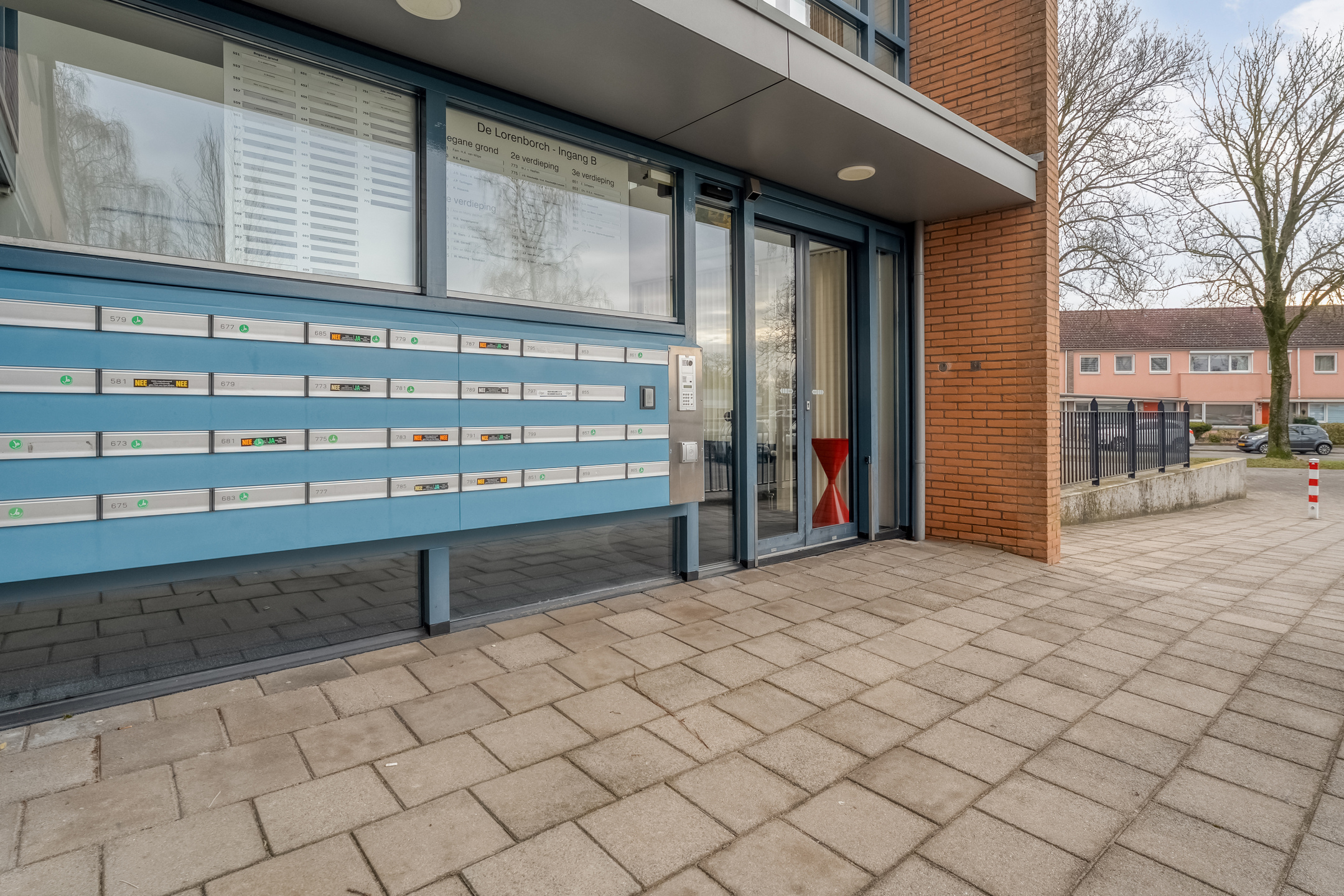 Je betreedt het complex via een afgesloten entree met videofooninstallatie. In de centrale hal bevinden zich de brievenbussen en is er toegang tot de parkeergarage, fietsenberging, lift en het trappenhuis. Een verzorgde en veilige binnenkomst die direct de nette indruk van het gebouw onderstreept.