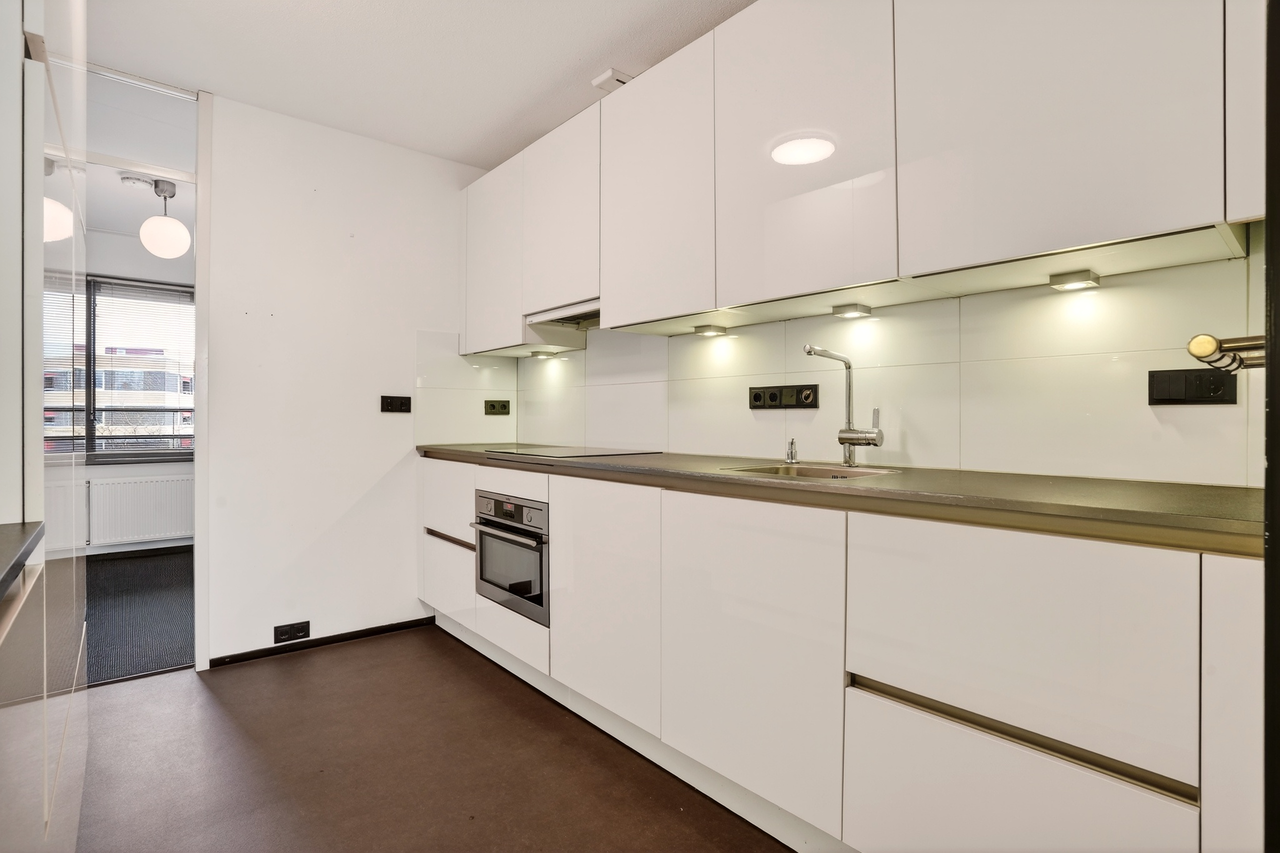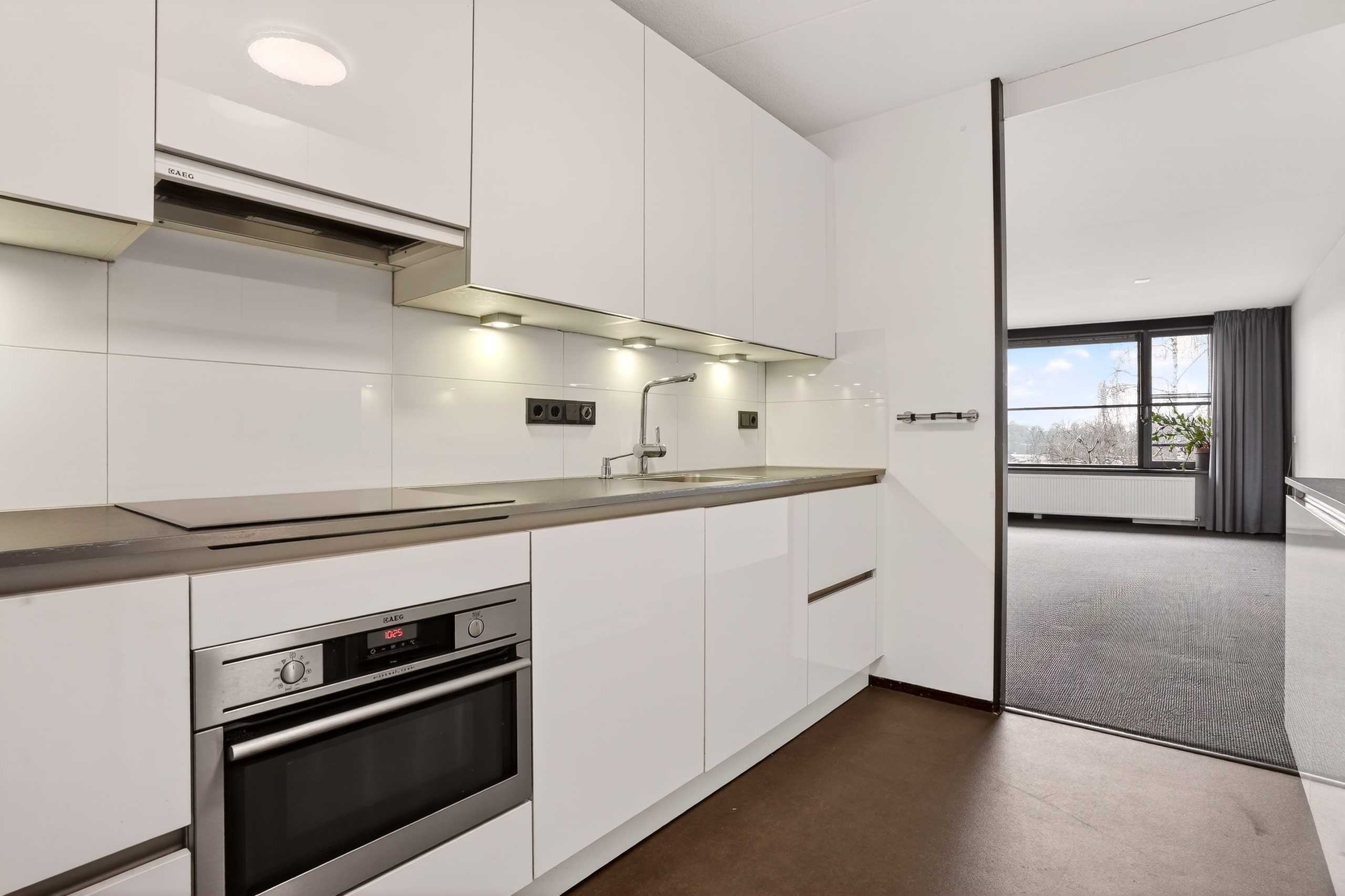 De woonkamer vormt het hart van het appartement. Dankzij de royale raampartijen geniet je hier van een prettige lichtinval. De aanwezige airconditioning zorgt het hele jaar door voor een aangenaam binnenklimaat. Vanuit de woonkamer stap je zo het overdekte balkon op, waar je beschut kunt genieten van een kop koffie of een goed boek. De open keuken sluit naadloos aan op de leefruimte en is modern en compleet uitgevoerd met diverse inbouwapparatuur, een heerlijke plek om te koken en te tafelen. Tot slot is er nog een derde slaapkamer, waardoor het appartement in totaal drie volwaardige kamers biedt en daarmee verrassend veel mogelijkheden heeft.