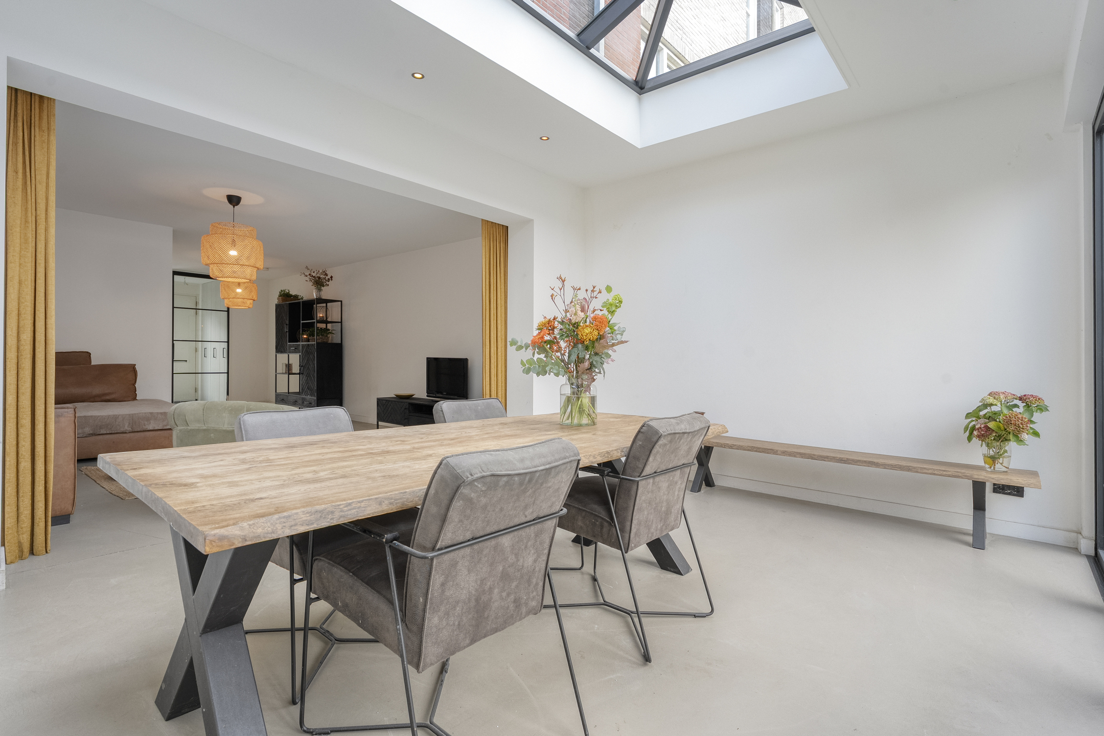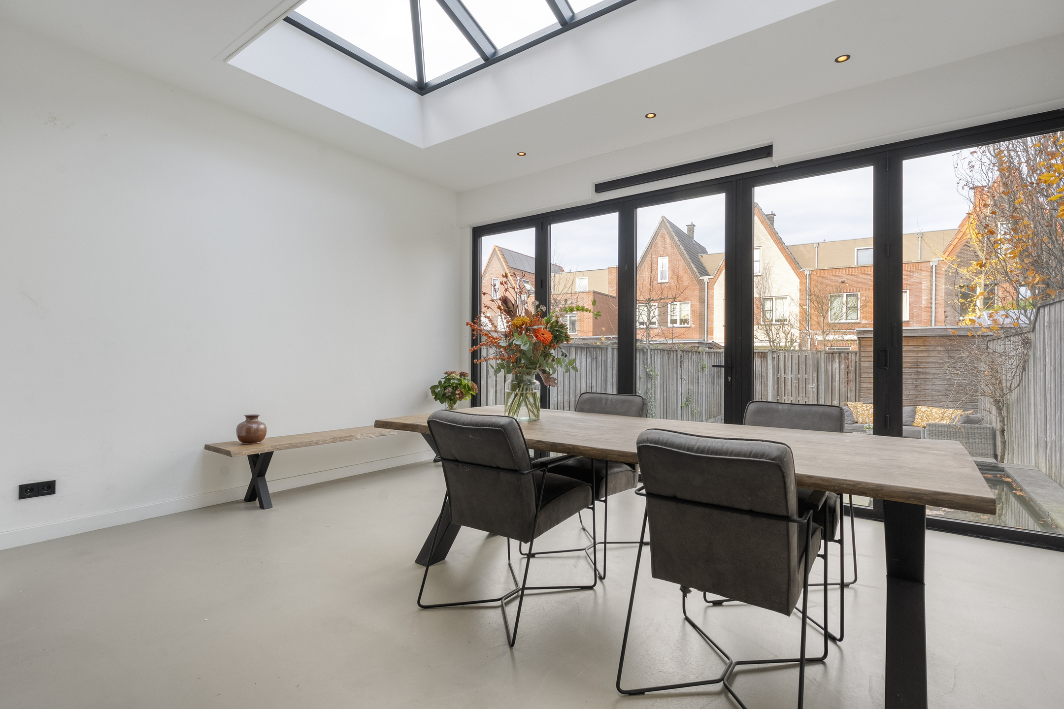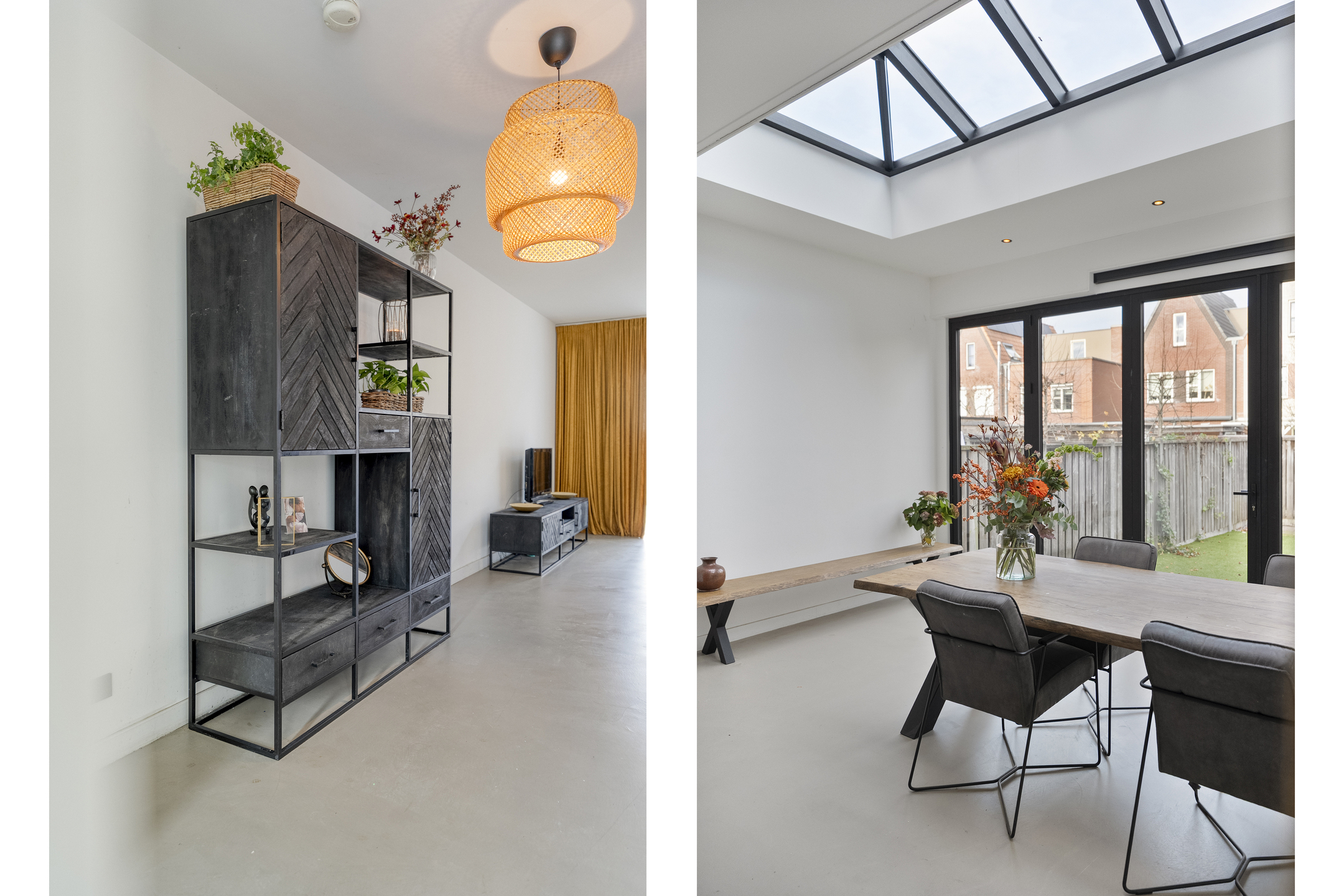 Bij binnenkomst op de begane grond vind je een mooie recent uitgebouwde woonkamer (ontworpen door een architect) met veel natuurlijk licht. Het is de ideale plek om te ontspannen na een lange dag. Ook tref je hier een modern uitgeruste keuken met o.a. een stoomoven, heteluchtoven, Quooker etc. Hier zijn al je culinaire dromen mogelijk. Daarnaast is de gehele benedenverdieping voorzien van vloerverwarming met daarover een moderne gietvloer.