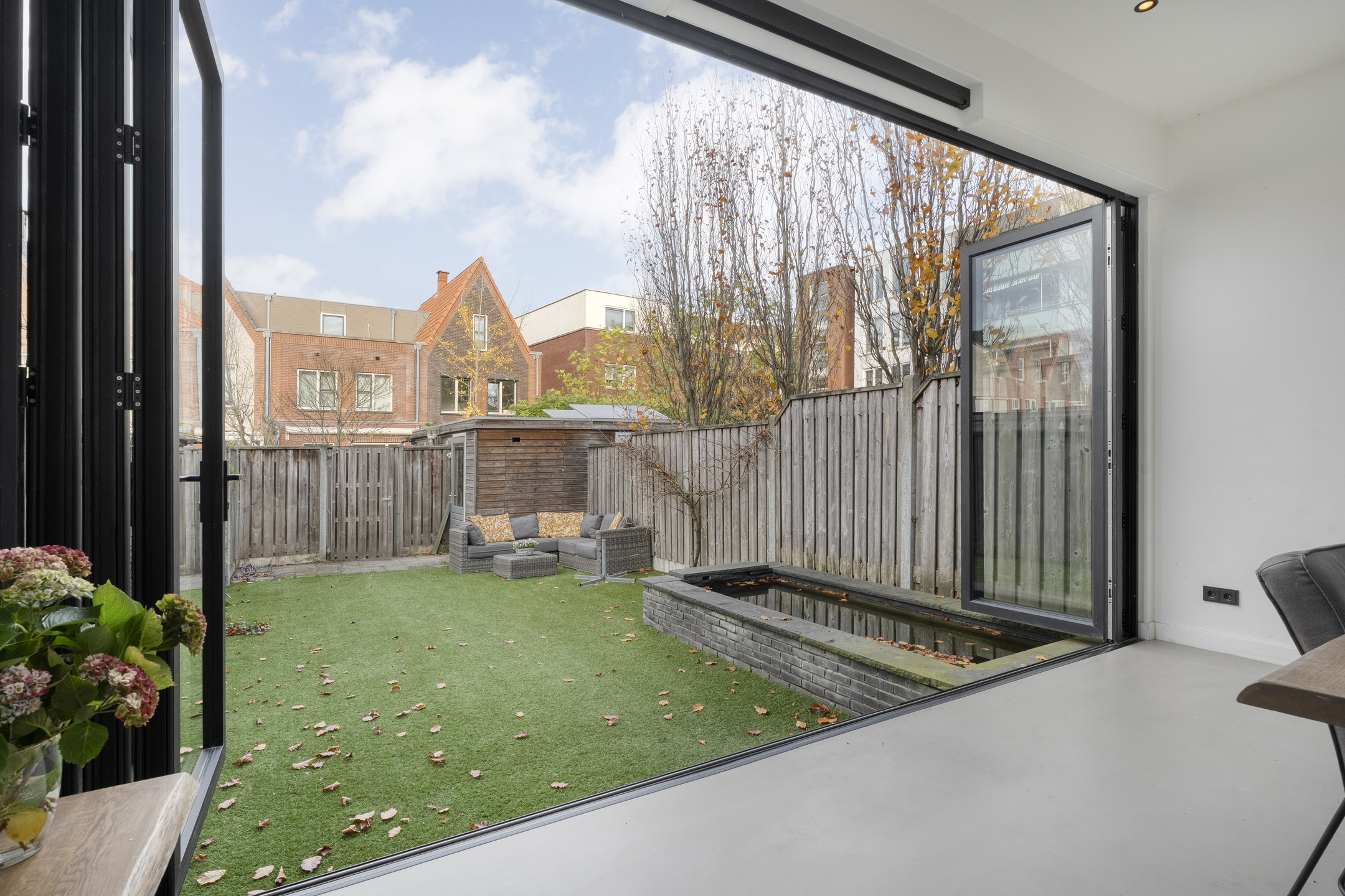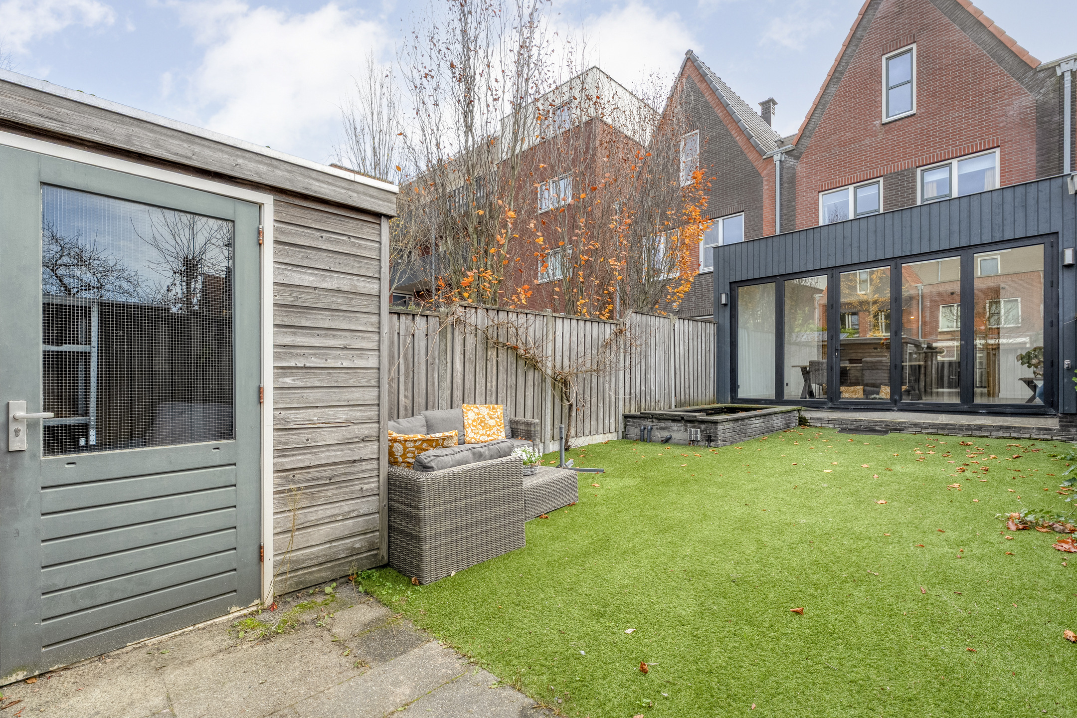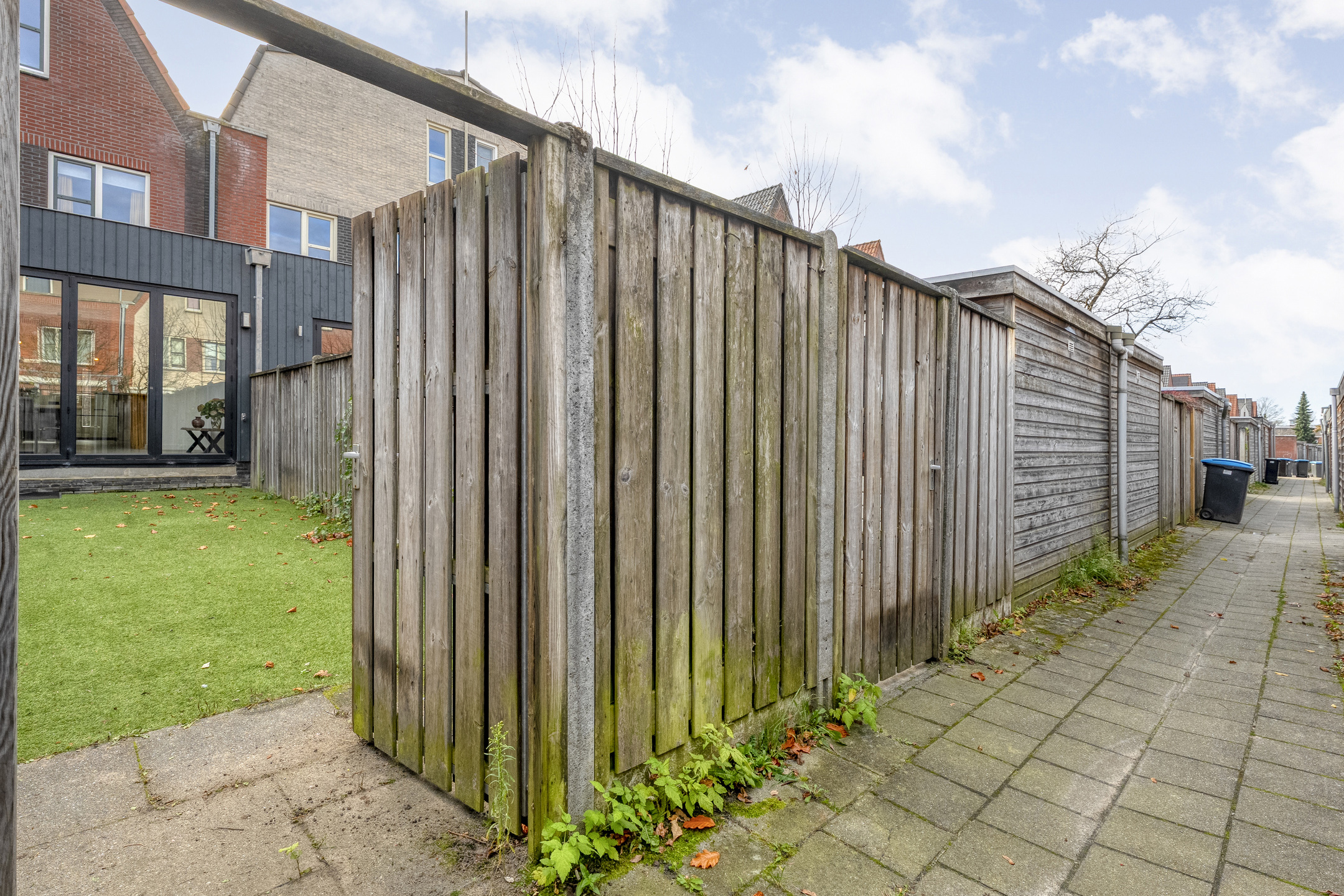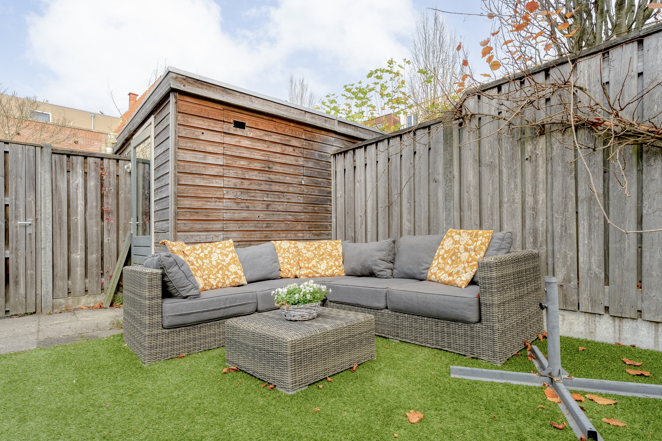 Bij deze woning hoort een mooi aangelegde noordelijke achtertuin. Met een oppervlakte van 52 vierkante meter is er voldoende ruimte om te genieten van de buitenlucht. Bovendien is er een achterom en een vrijstaande houten schuur dat zorgt voor extra opslagruimte.