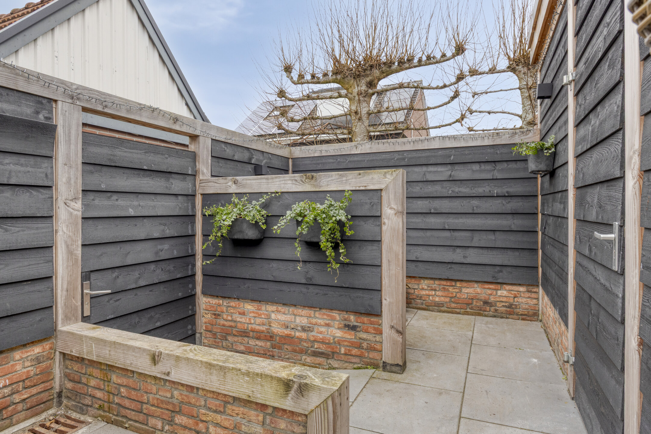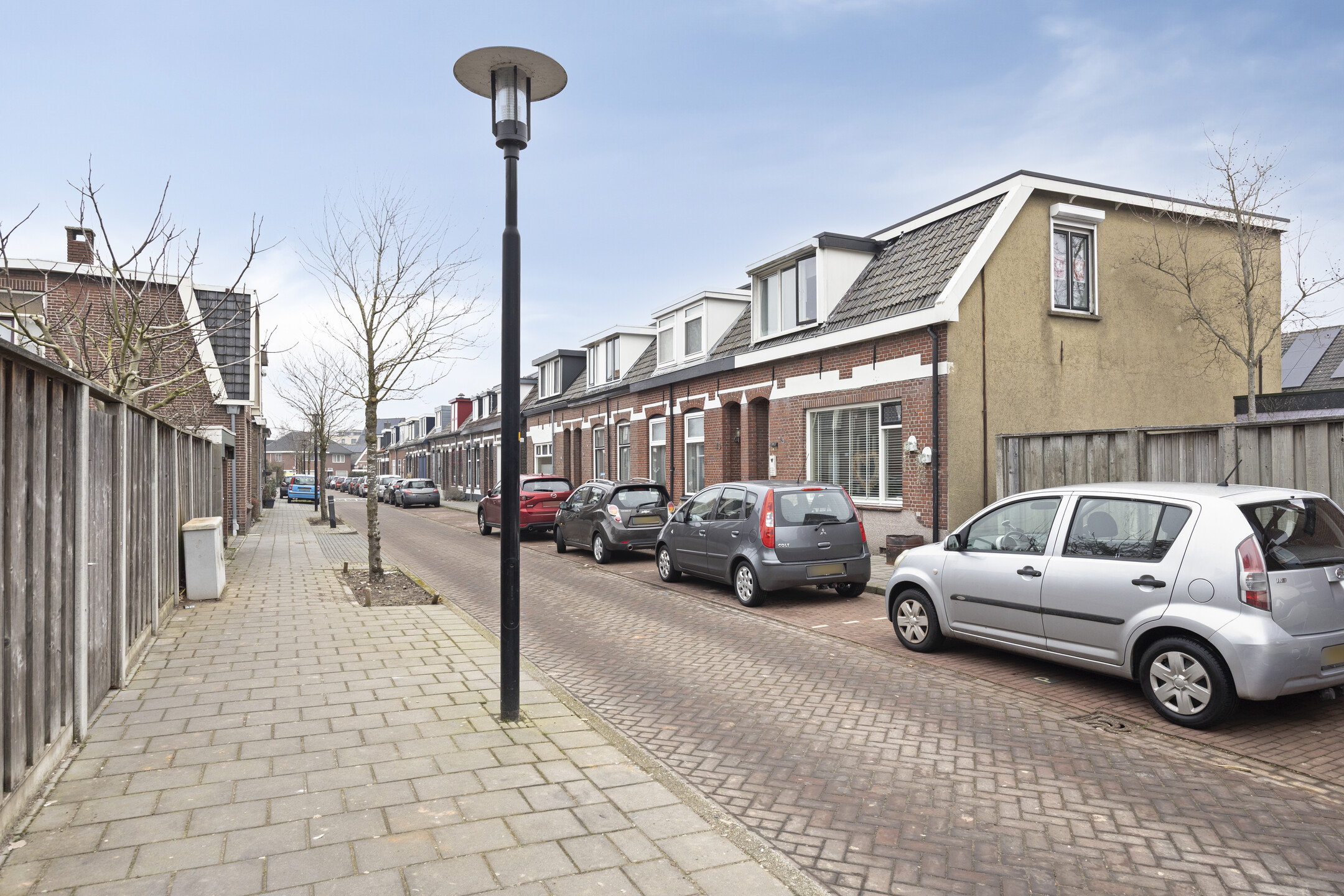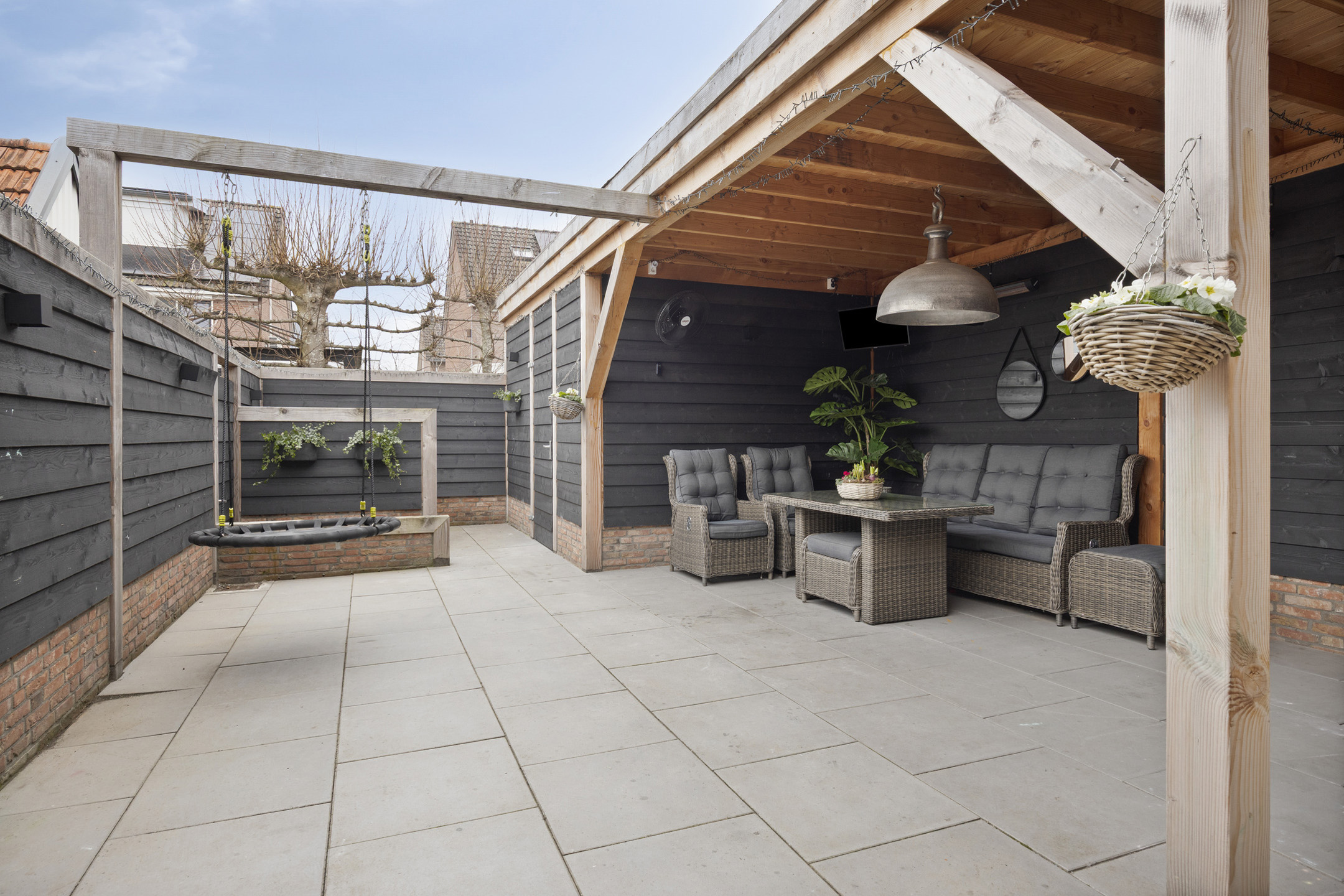 De op het oosten gelegen achtertuin is opgehoogd en voorzien van een fraaie houten overkapping en berging, bereikbaar via een eigen achterom. De woning ligt in een rustige, onlangs vernieuwde straat met sfeervolle geveltuintjes, ruime parkeerplaatsen en brede trottoirs.