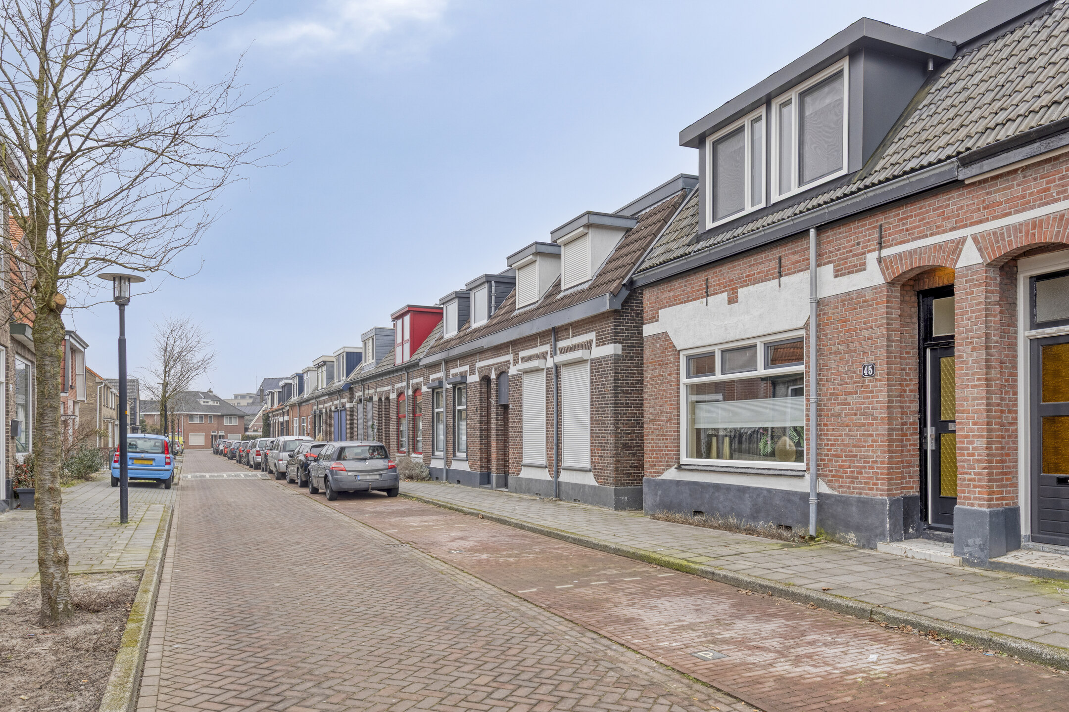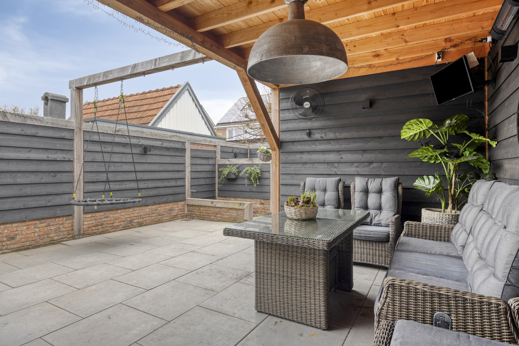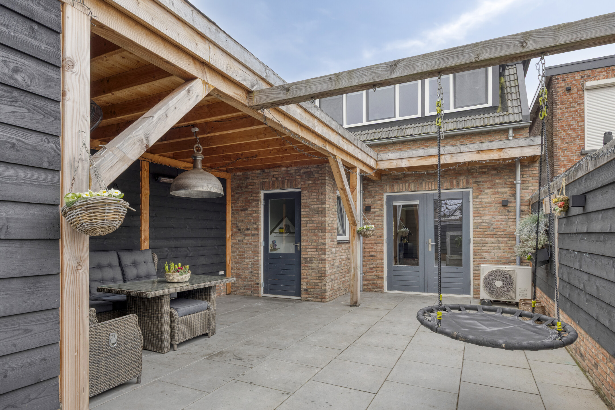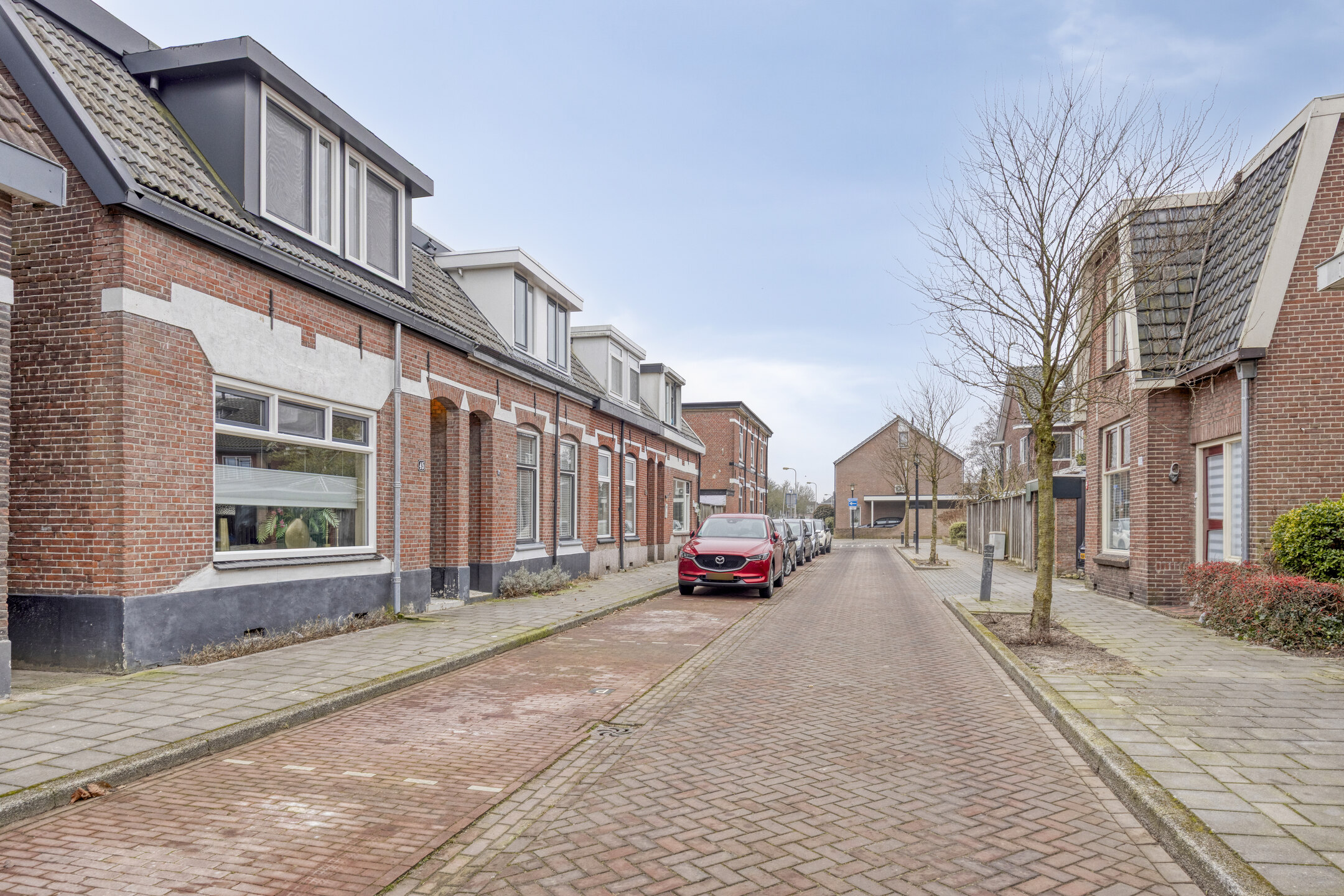 De op het oosten gelegen achtertuin is opgehoogd en voorzien van een fraaie houten overkapping en berging, bereikbaar via een eigen achterom. De woning ligt in een rustige, onlangs vernieuwde straat met sfeervolle geveltuintjes, ruime parkeerplaatsen en brede trottoirs.