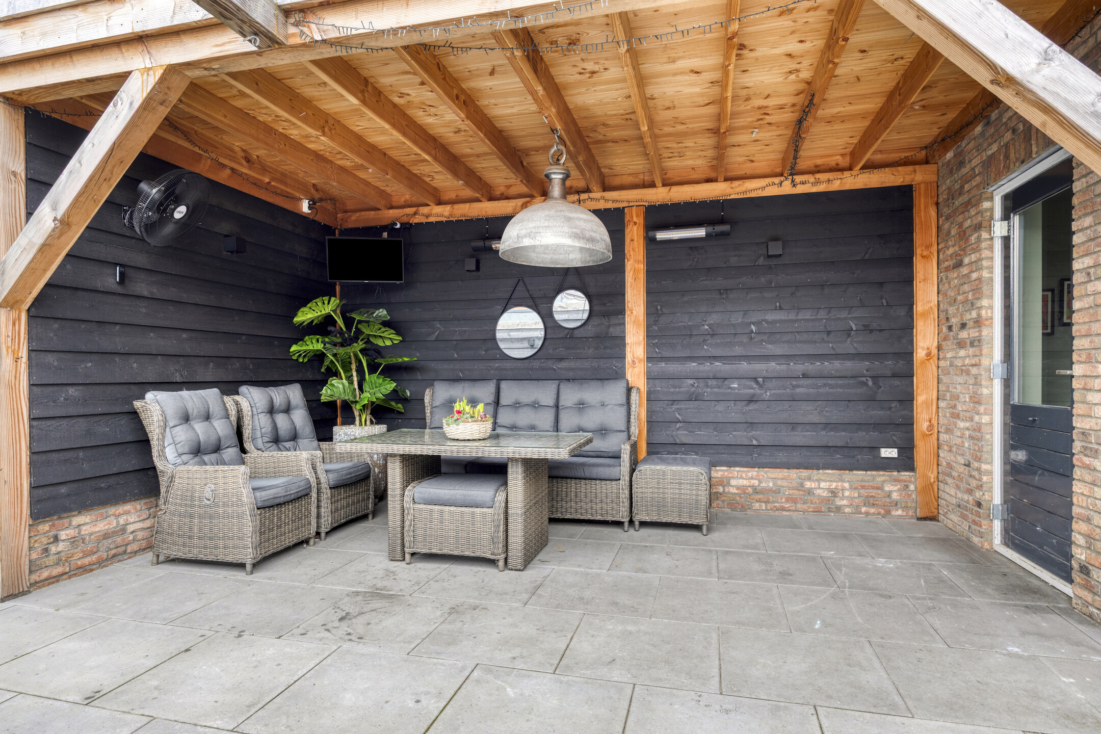 - Fraai aangelegde achtertuin op het oosten, volledig opgehoogd, met houten overkapping en eigen afgesloten achterom.