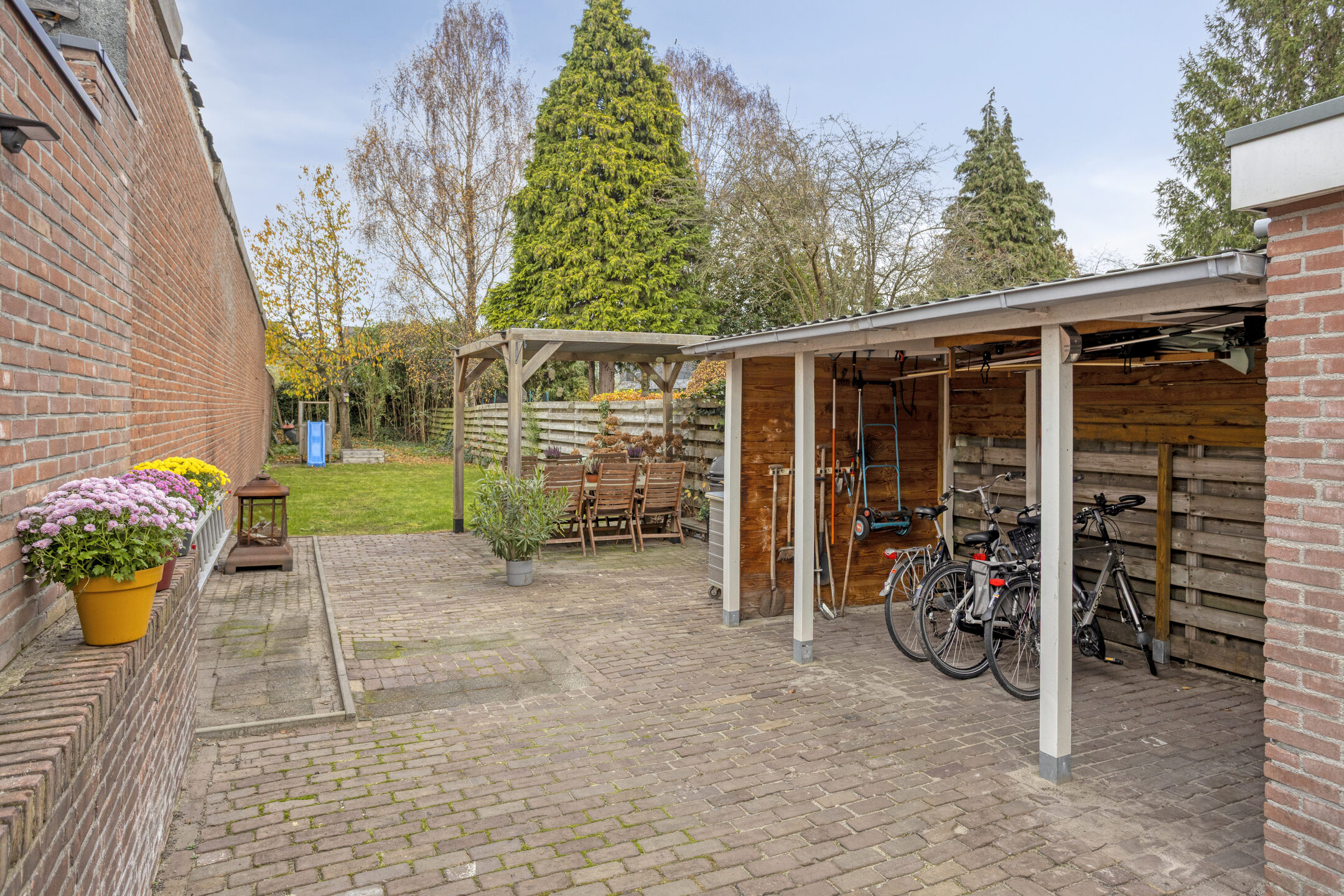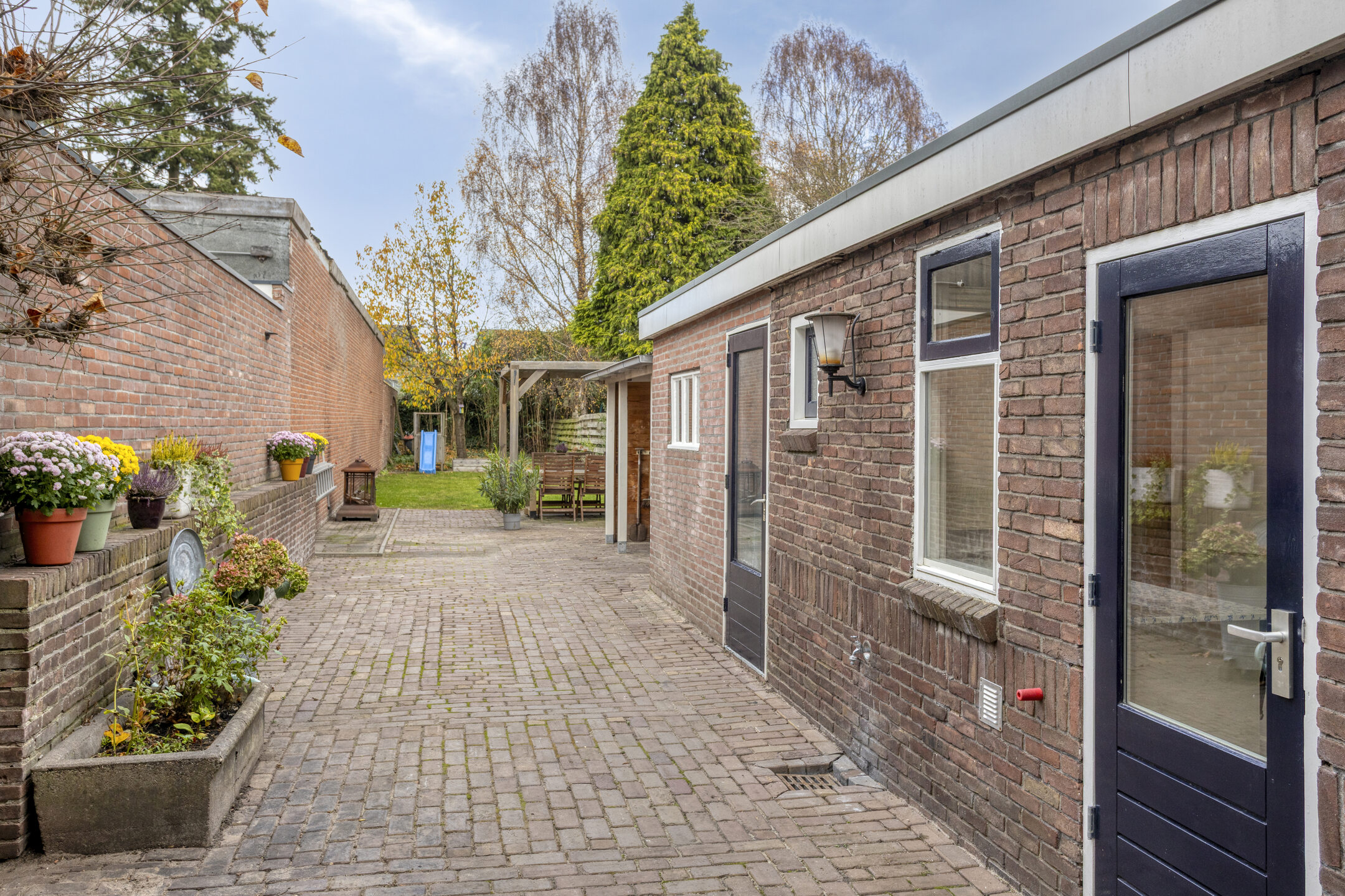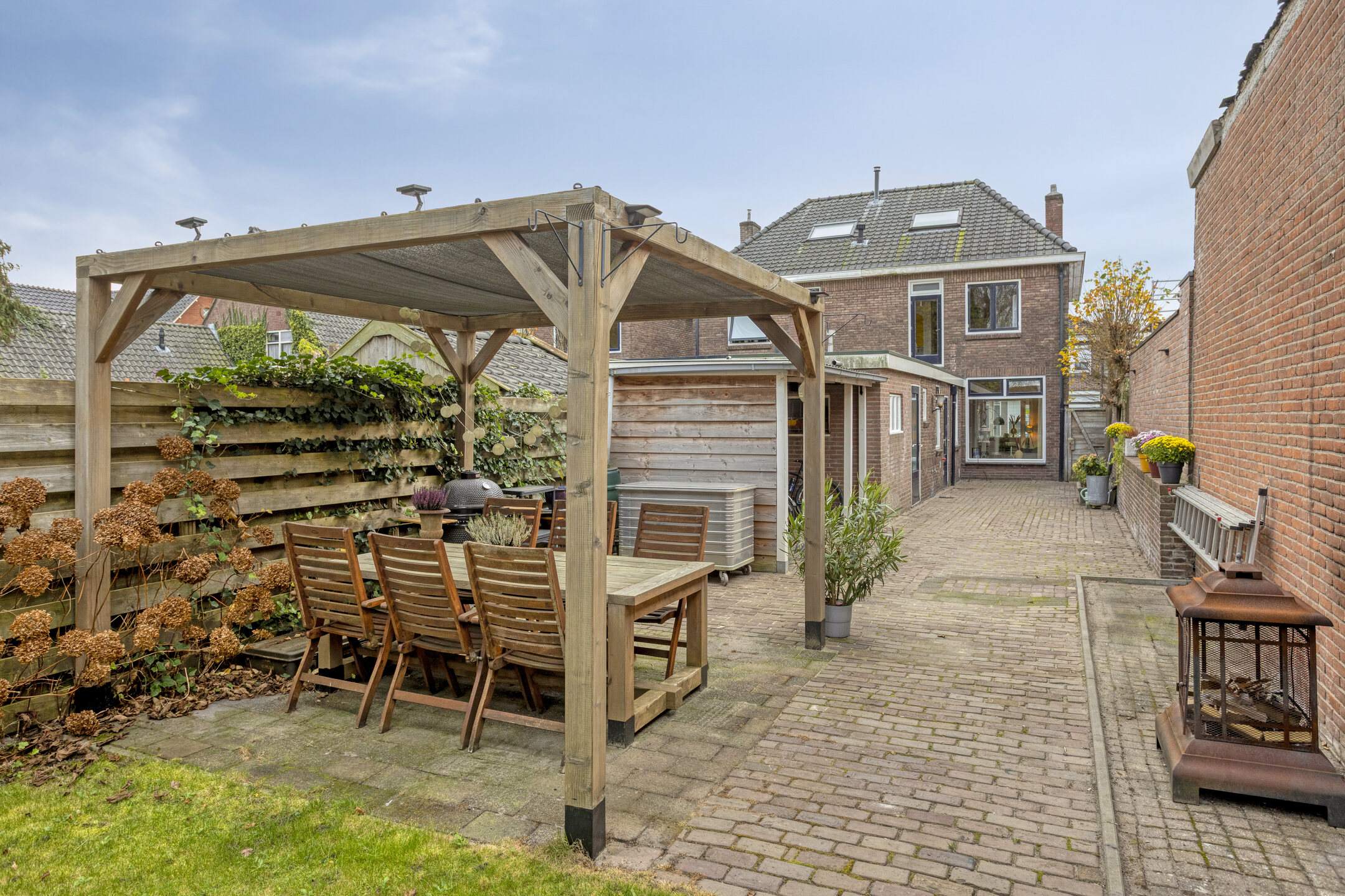 De achtertuin is uitzonderlijk diep en ligt op het noord-oosten, met volop mogelijkheden voor tuinliefhebbers. De tuin is voorzien van een aangebouwde stenen berging, vrijstaande houten overkappingen en is bereikbaar via een eigen achterom.