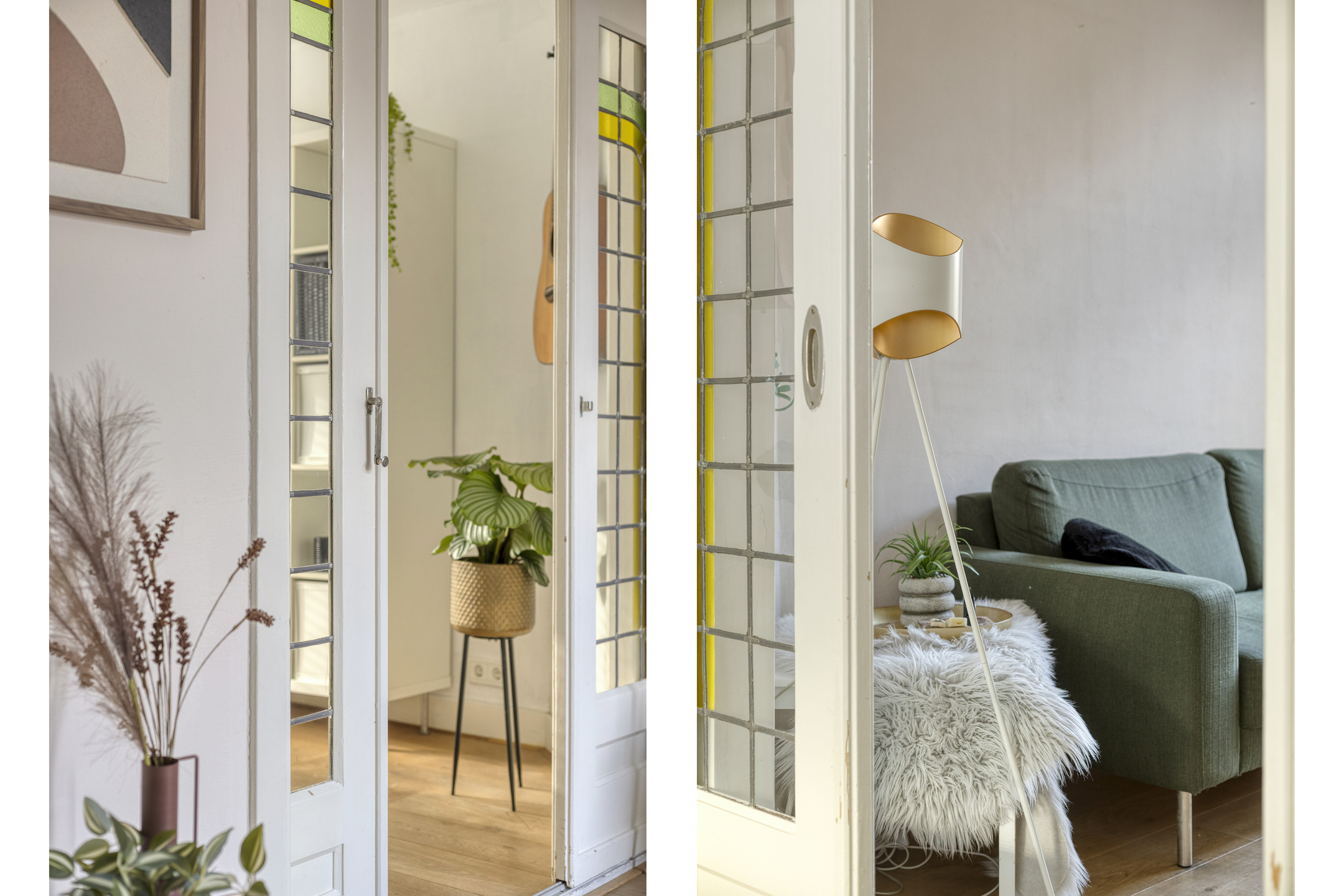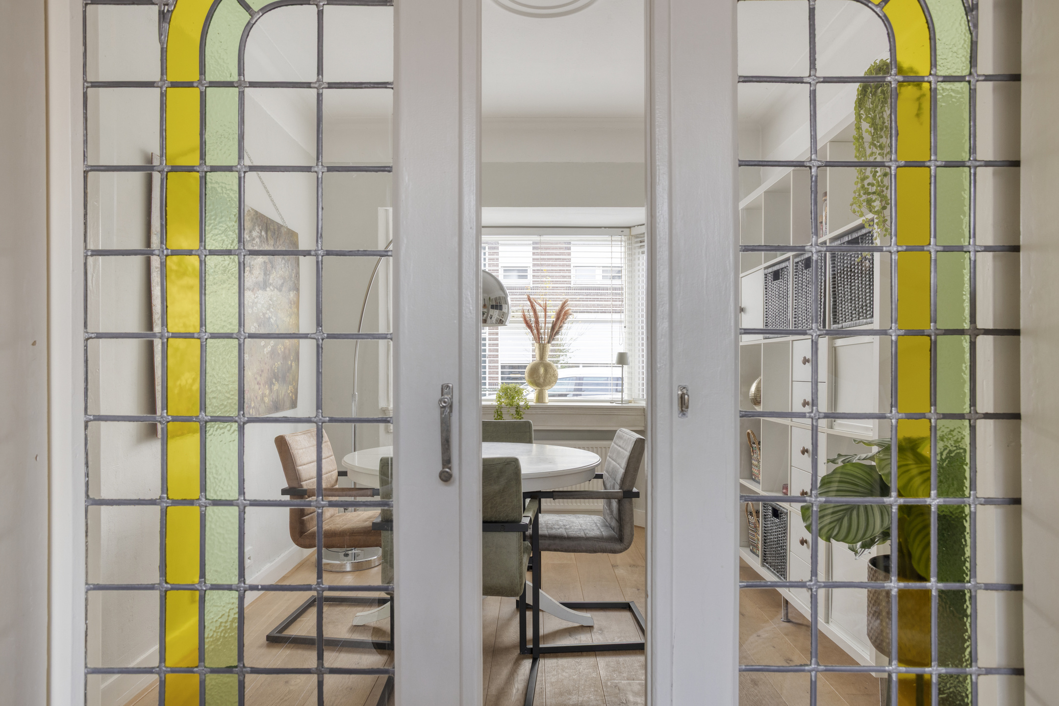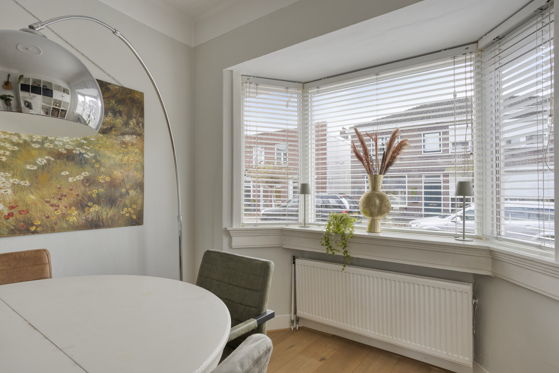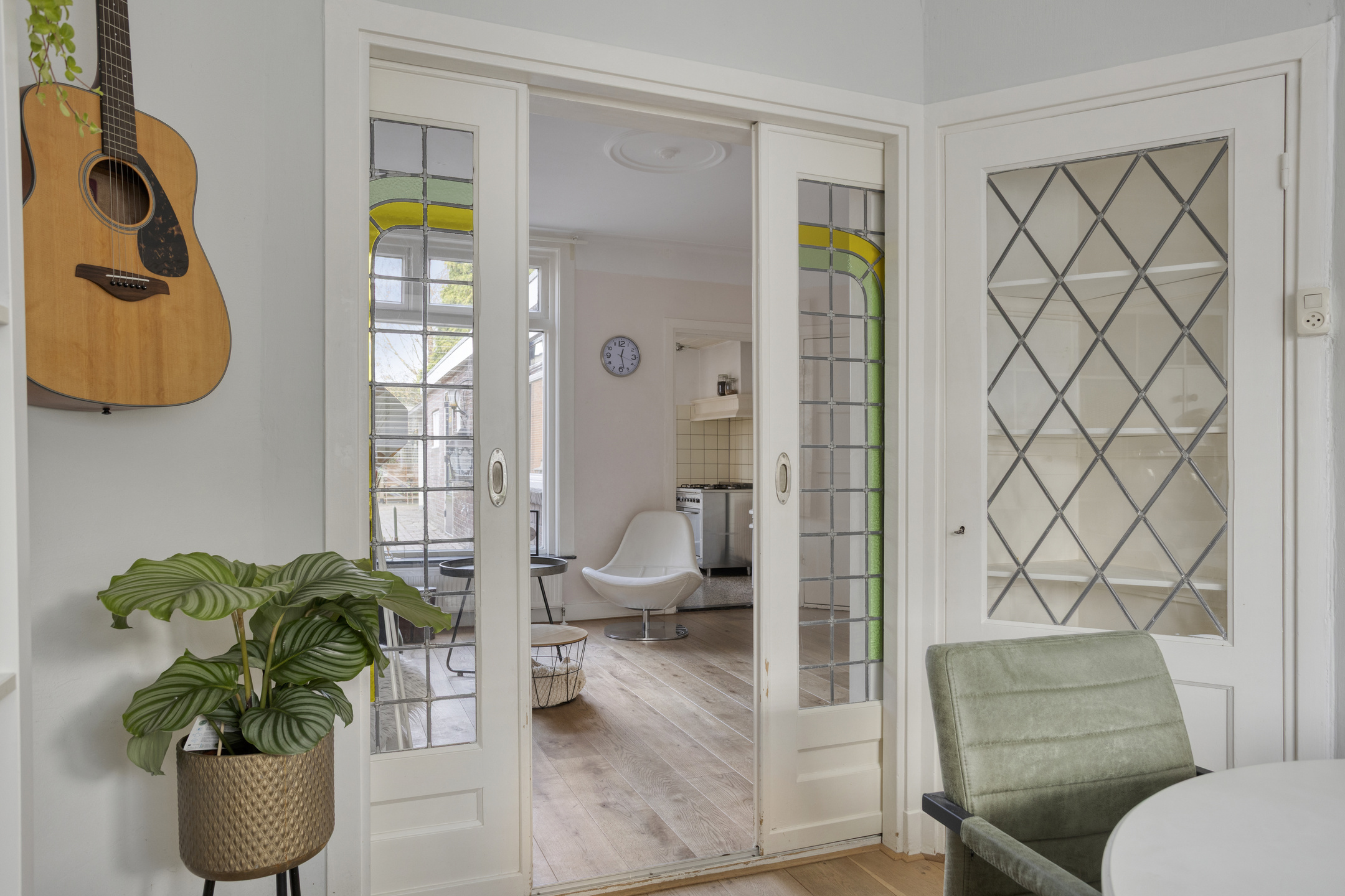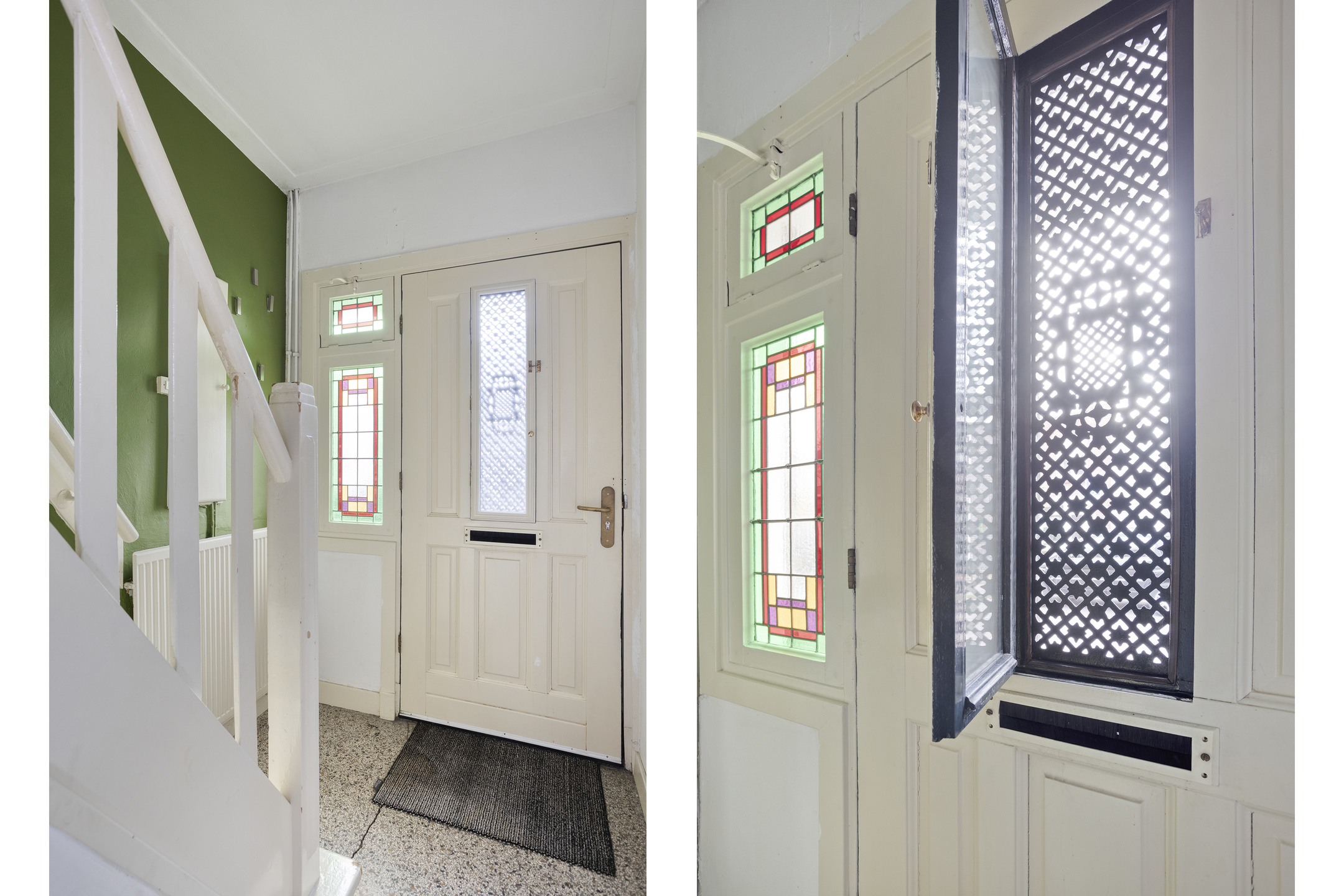 - Karakteristieke jaren ’30 twee-onder-een-kapwoning met veel originele details zoals granitovloeren, glas-in-loodramen, en-suite deuren en hoge vloerplinten.