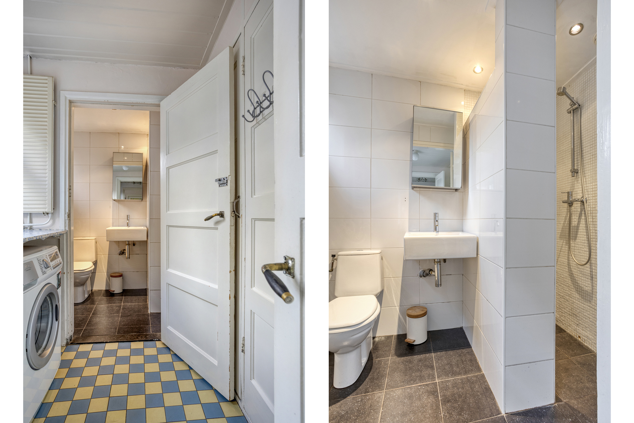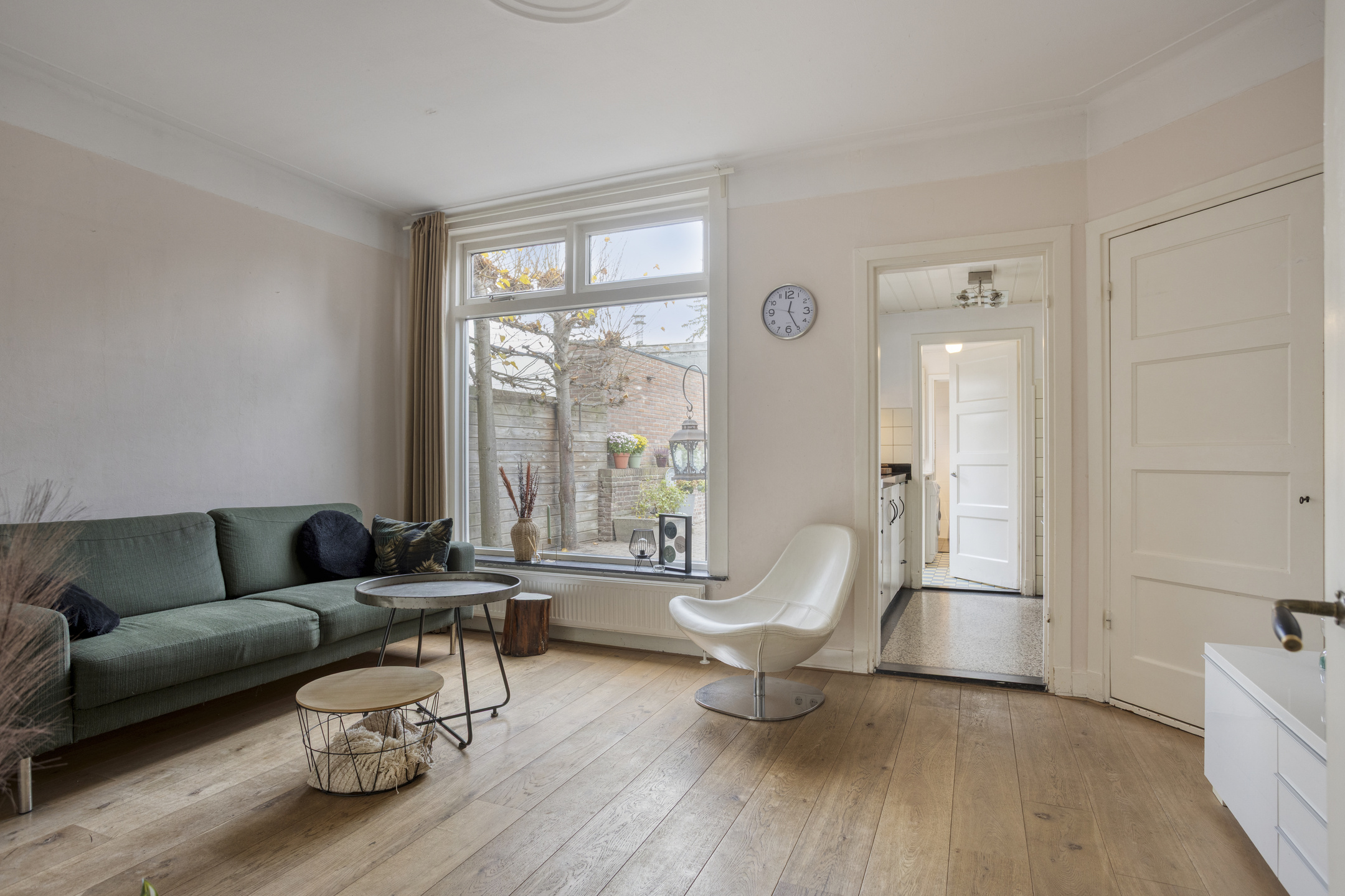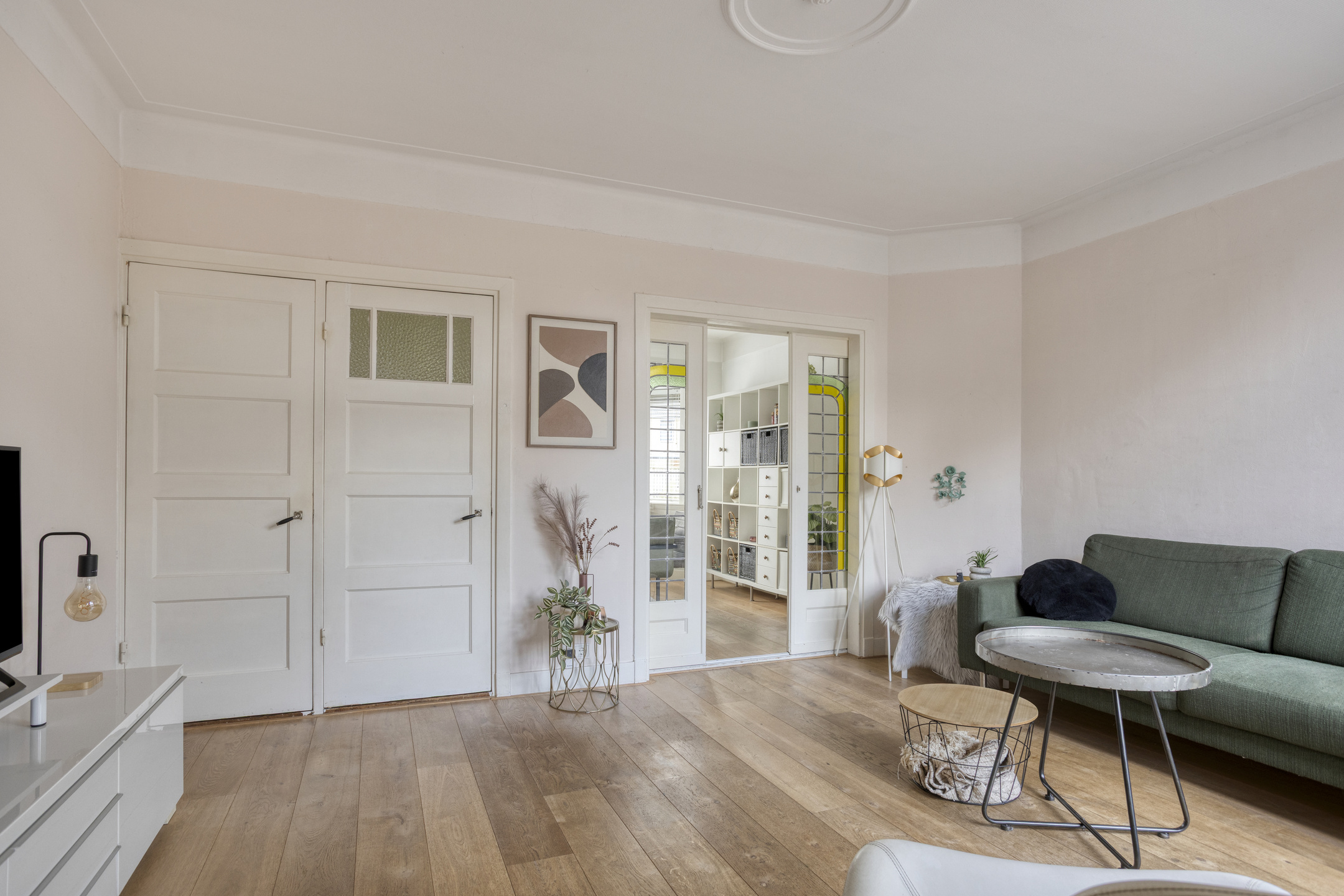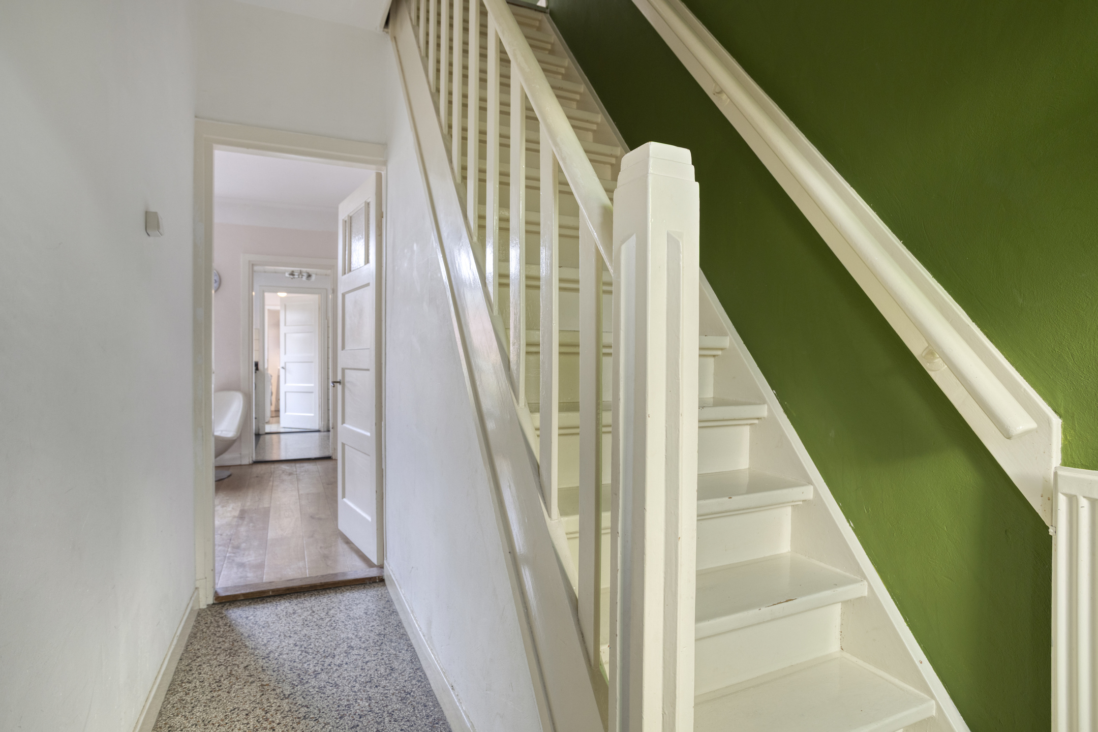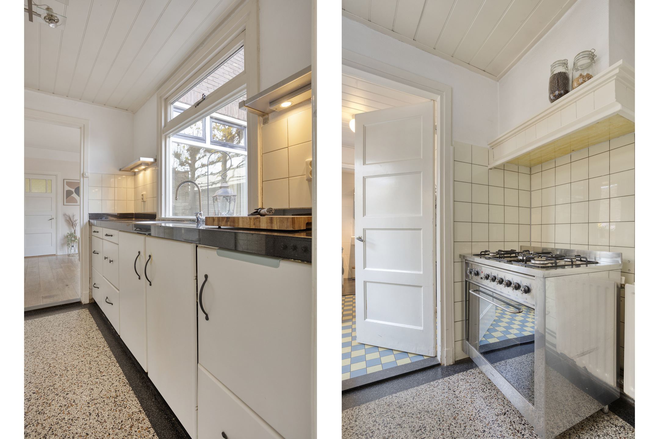 - Karakteristieke jaren ’30 twee-onder-een-kapwoning met veel originele details zoals granitovloeren, glas-in-loodramen, en-suite deuren en hoge vloerplinten.