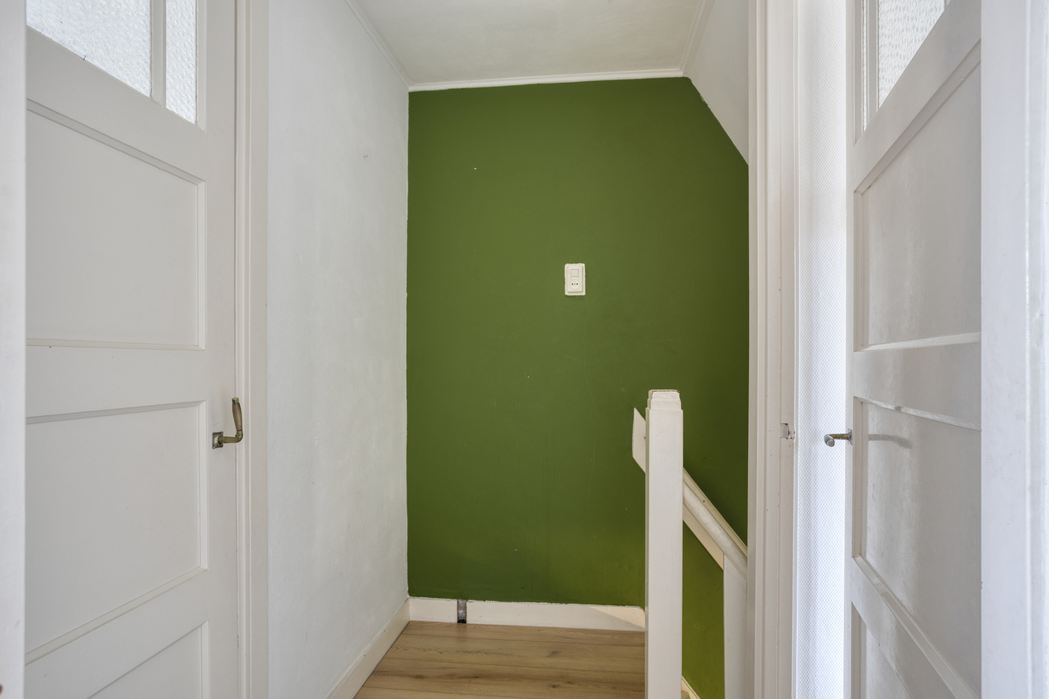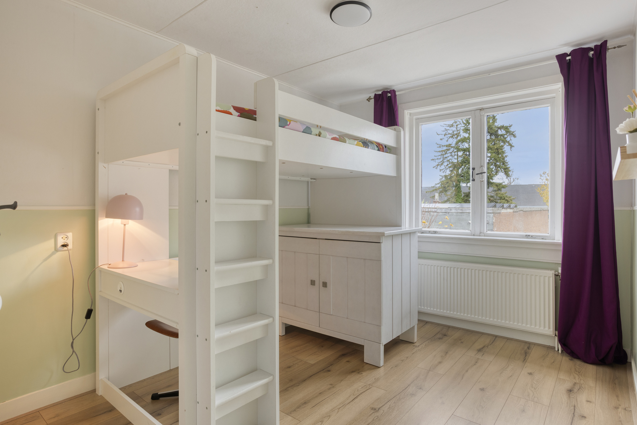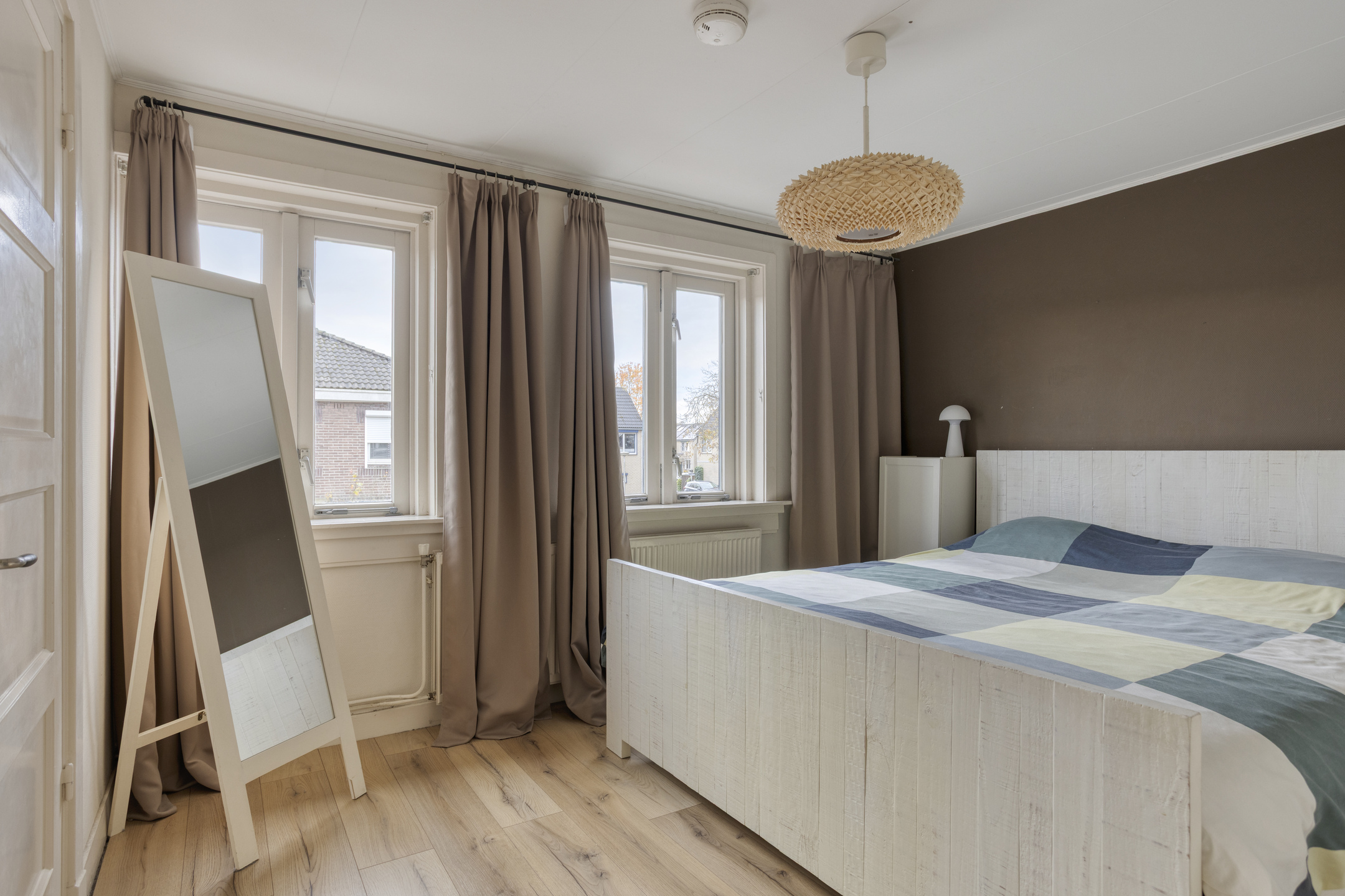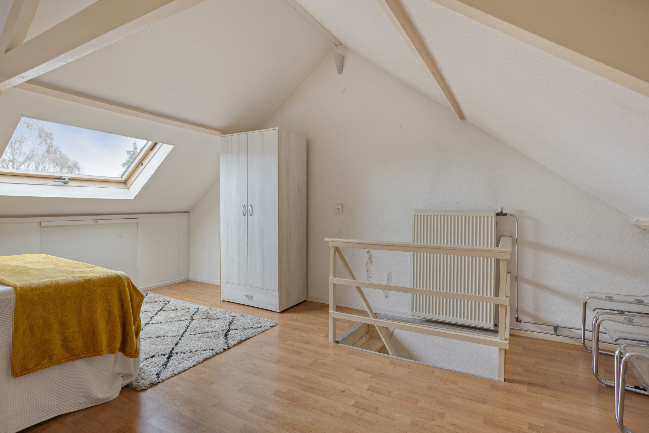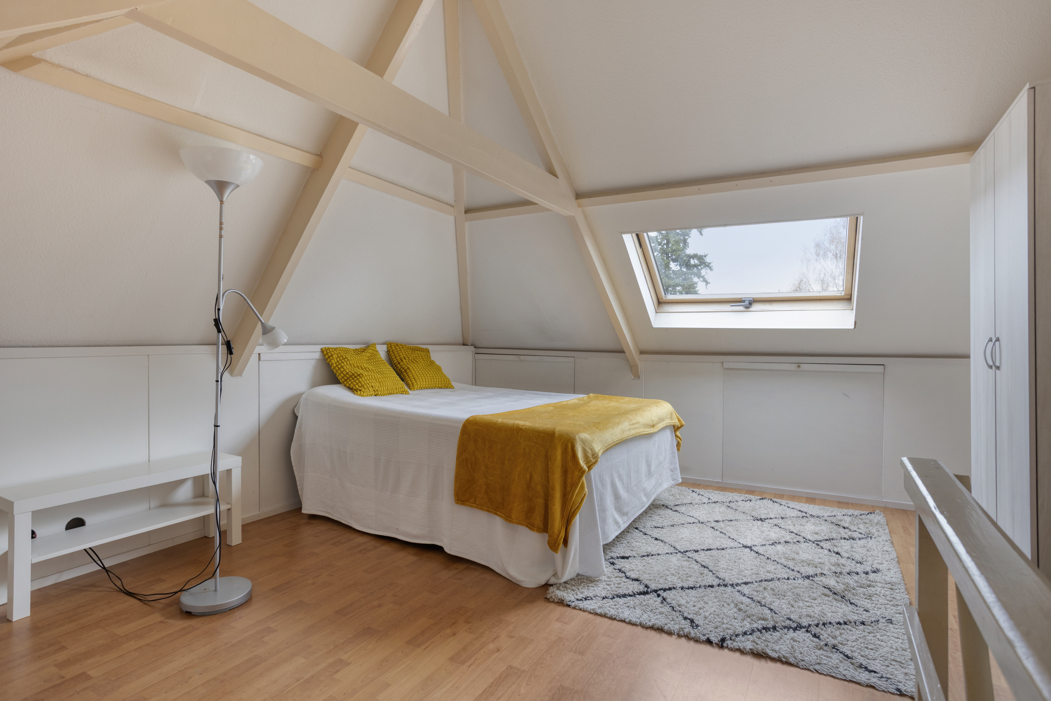 Op de eerste verdieping bevinden zich drie slaapkamers, elk met laminaatvloer en eigen karakteristieke afwerking. Eén slaapkamer heeft een inbouwkast. Vanuit de derde slaapkamer is er een vaste trap naar de tweede verdieping. De tweede verdieping biedt een open ruimte met bergruimte achter de knieschotten en een dakraam voor natuurlijk licht. Geschikt om als vierde slaapkamer te gebruiken.