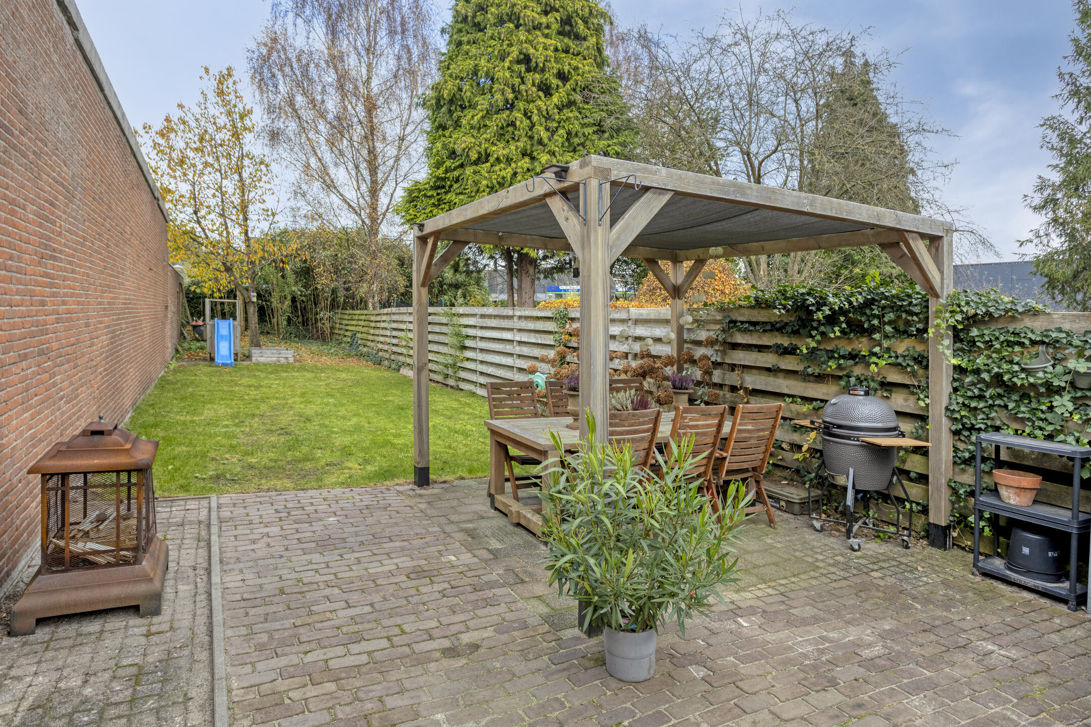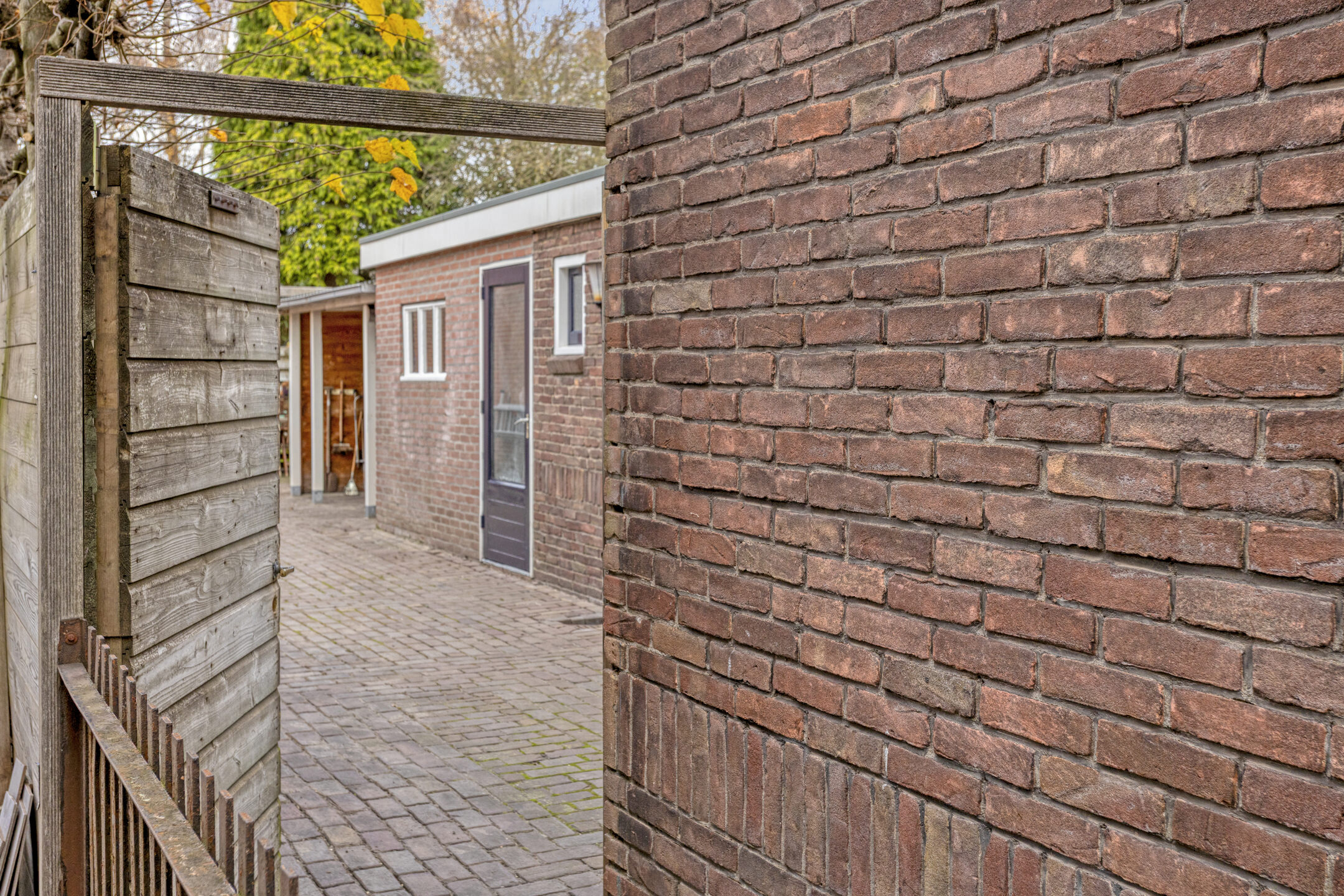 - Ruime en diepe achtertuin op het noord-oosten met aangebouwde stenen berging, vrijstaande houten overkappingen en eigen achterom.