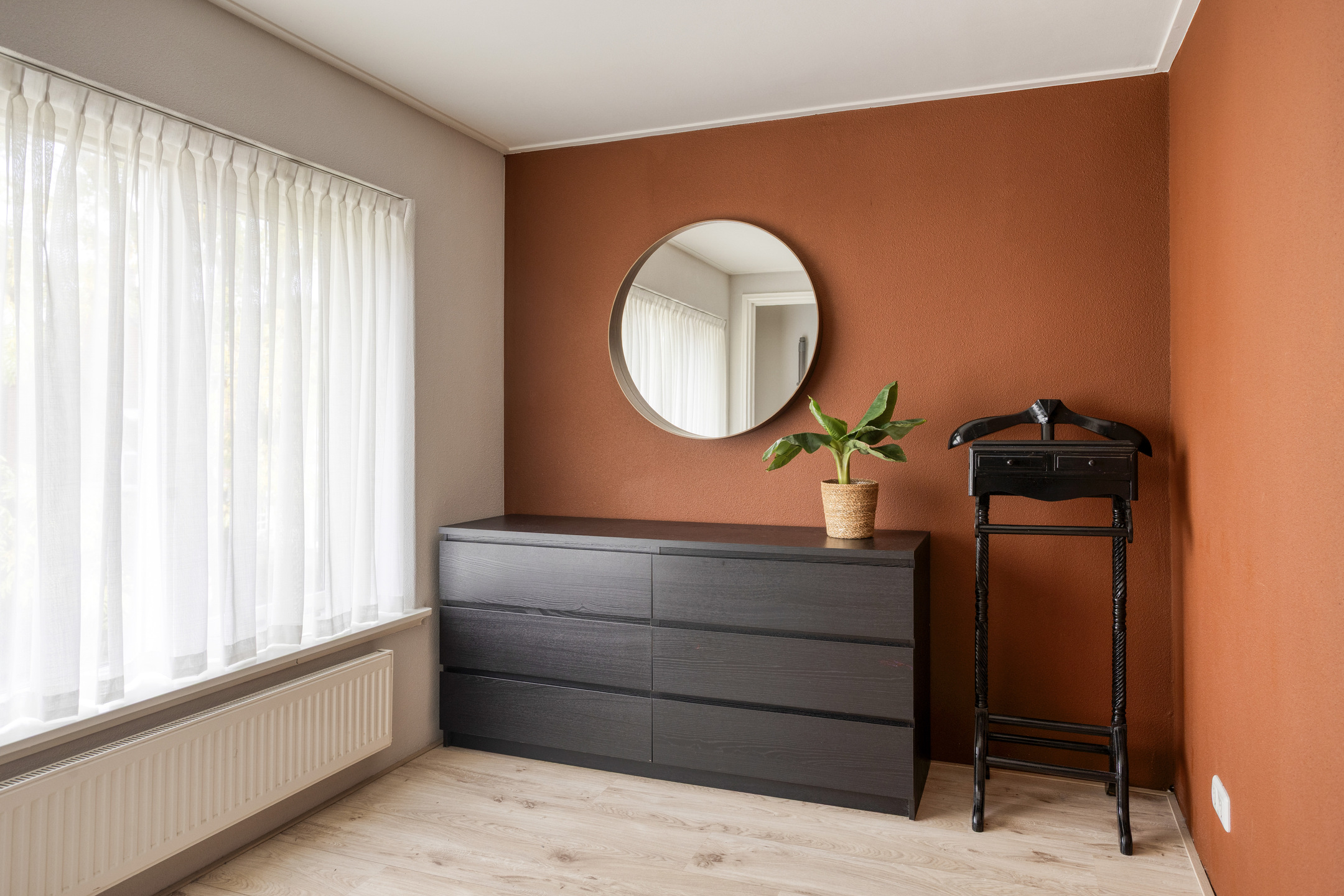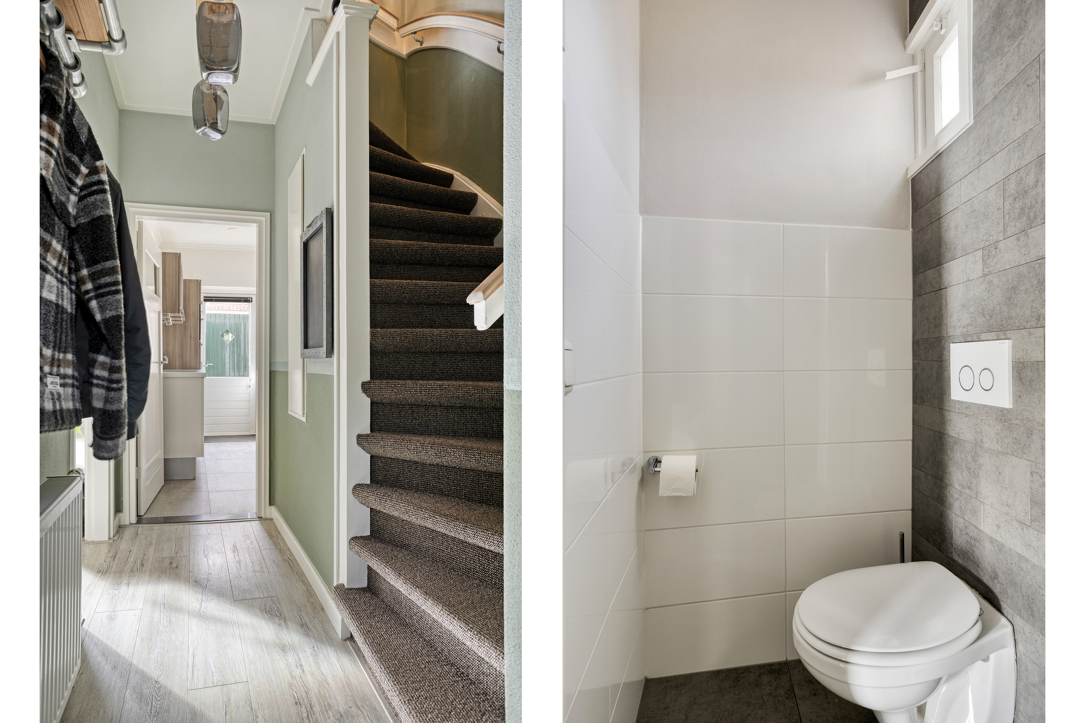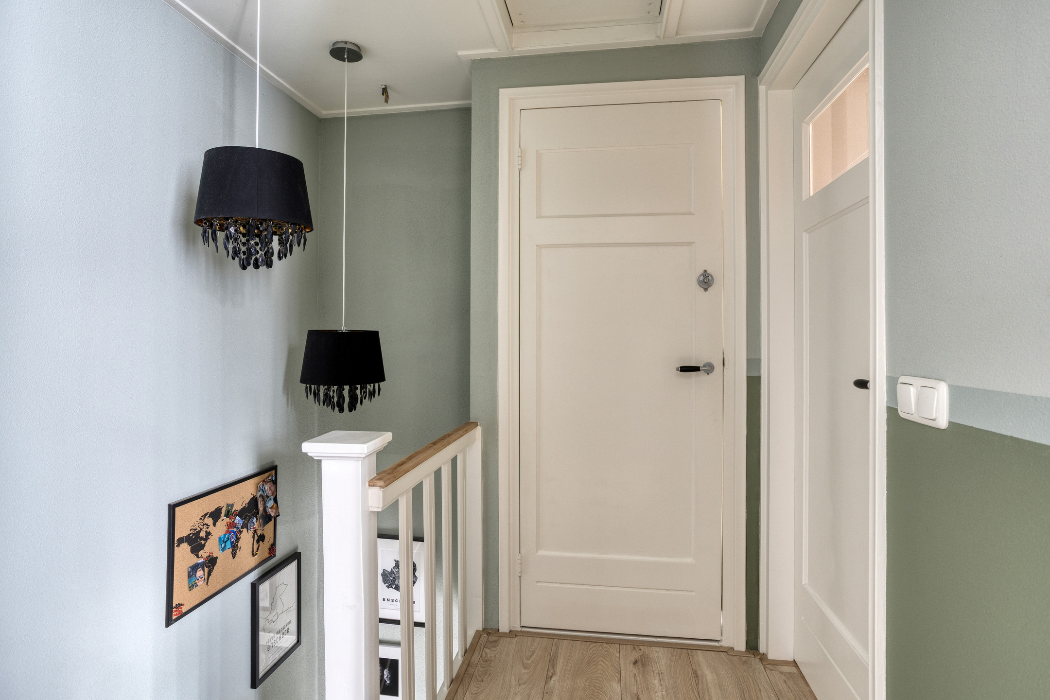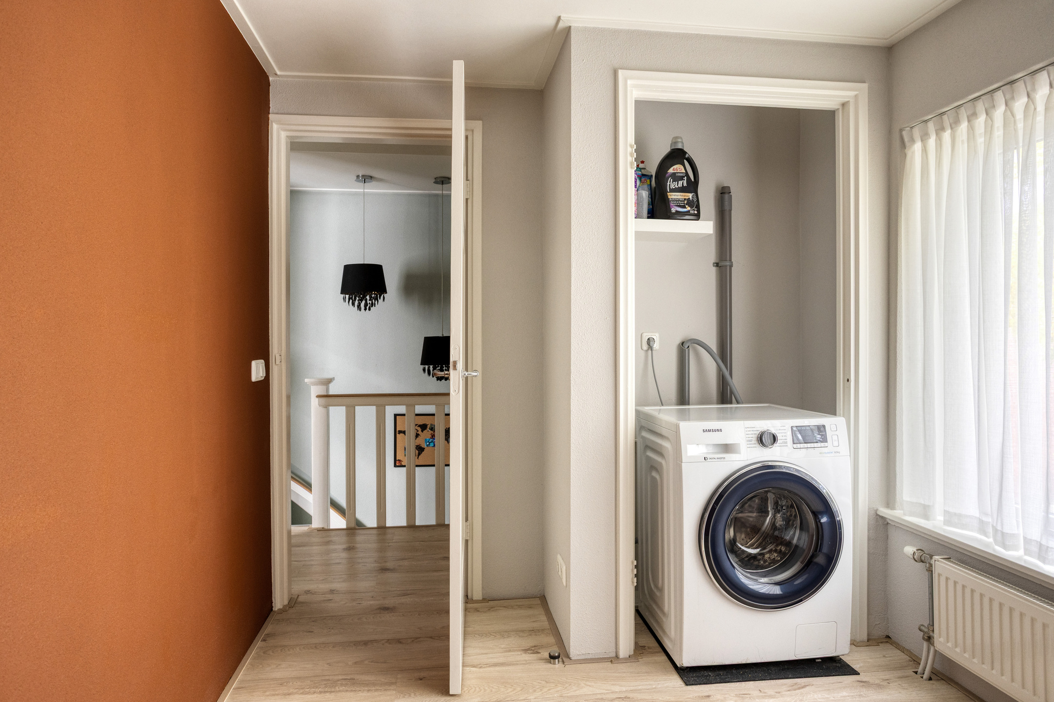 De eerste verdieping telt twee slaapkamers met vaste inbouwkasten. In één slaapkamer is de witgoedaansluiting netjes in de kast verwerkt, terwijl de andere slaapkamer nog extra beschikt over een inloopkast. De moderne badkamer is voorzien van een inloopdouche en een stijlvol wastafelmeubel. Via een vlizotrap is de tweede verdieping bereikbaar, waar zich een praktische bergzolder met dakraam en de cv-opstelling bevindt.
