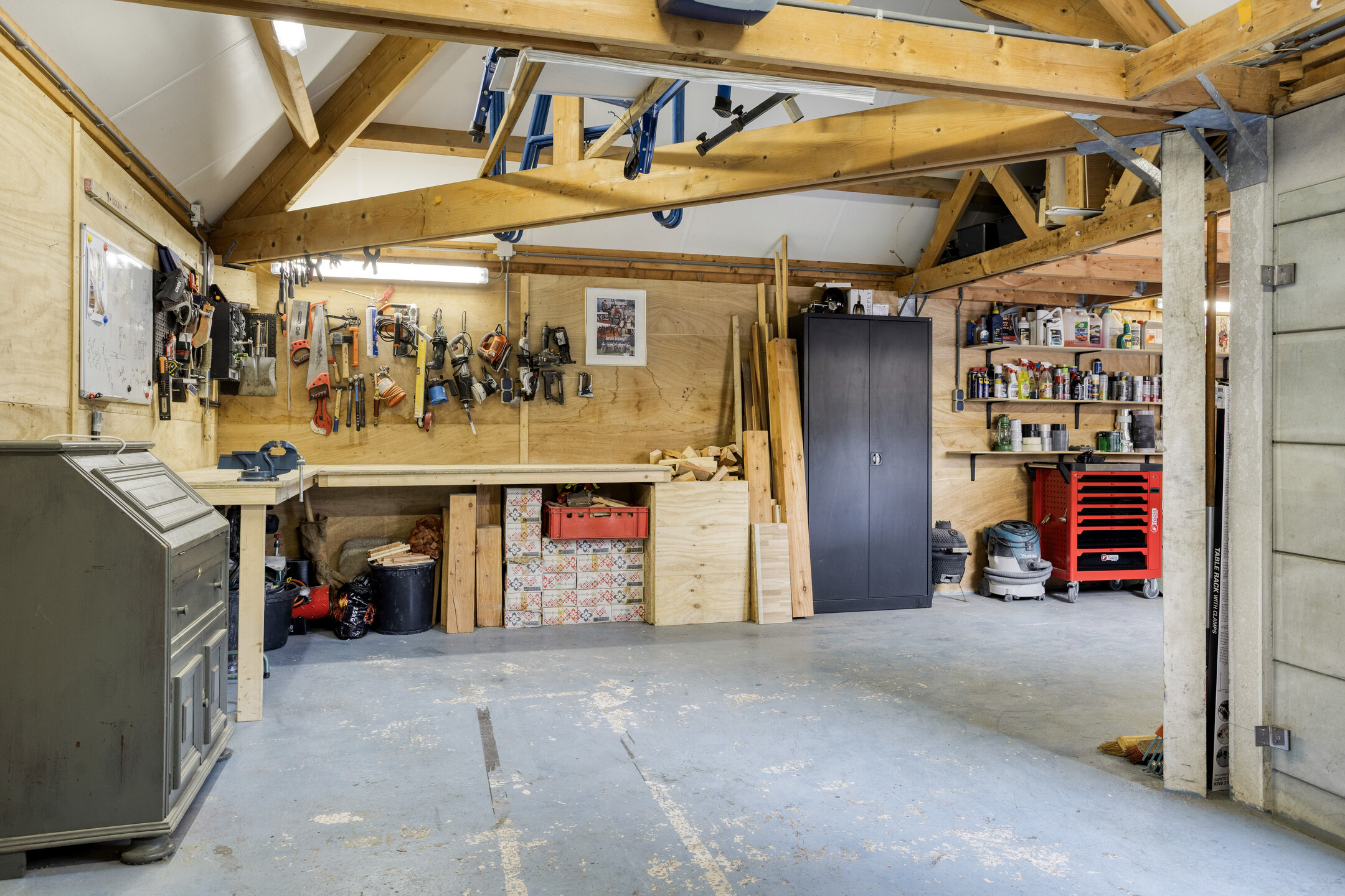 - Grote vrijstaande stenen garage van ca. 45 m² met geïsoleerd dak en elektrische garagedeur