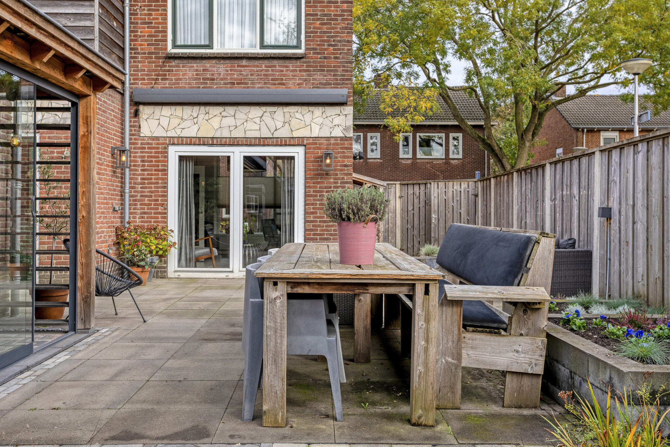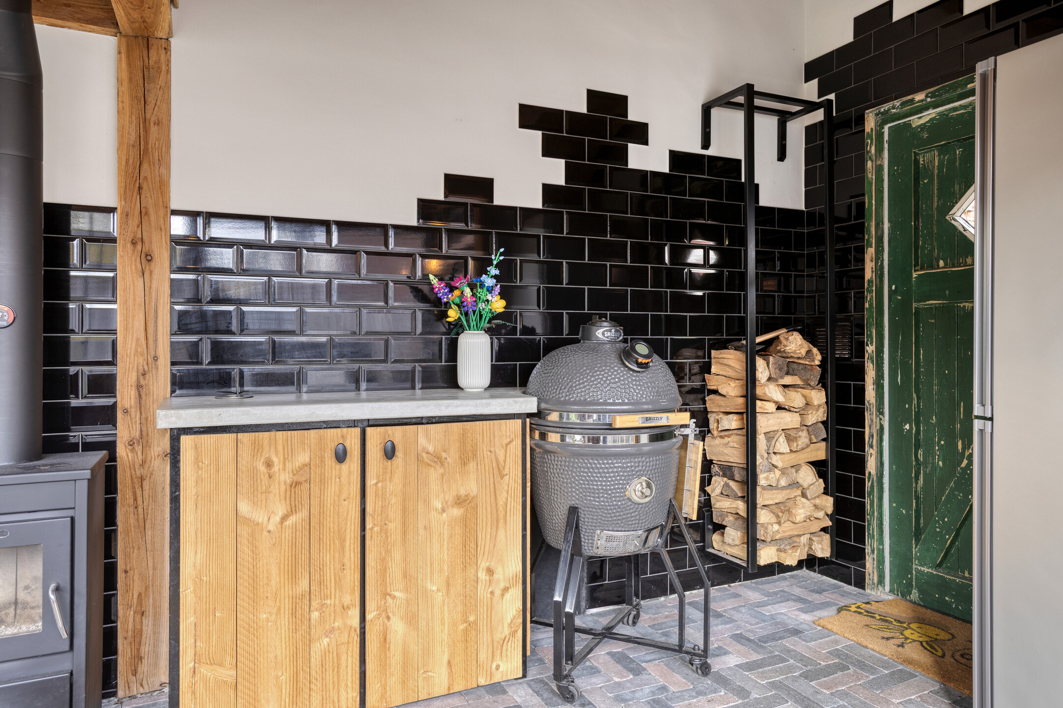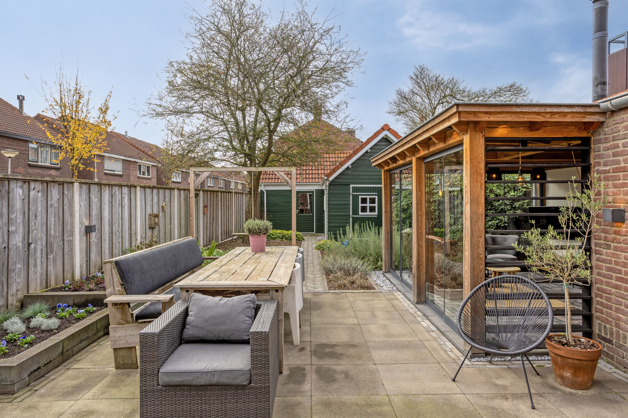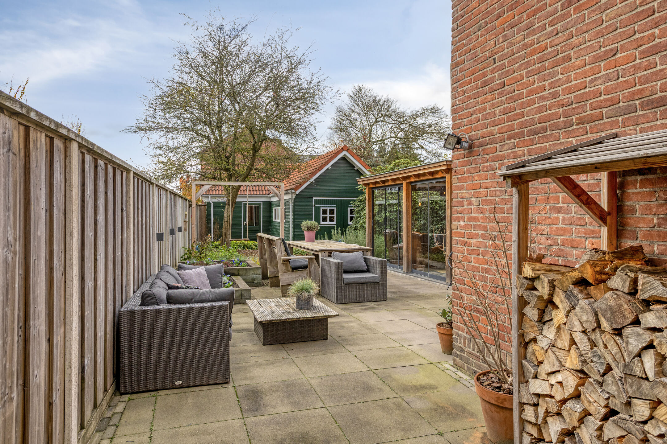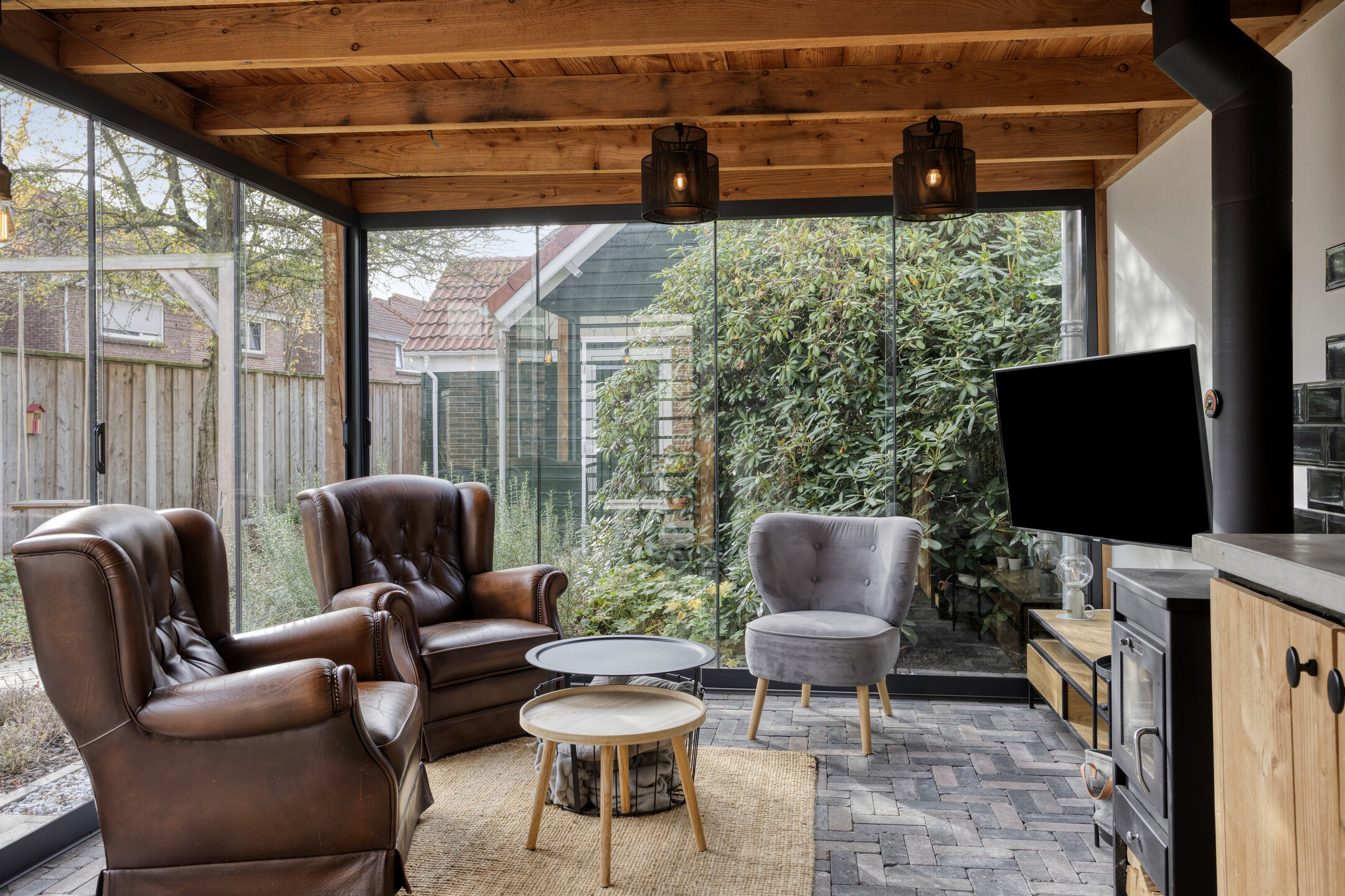 - Riante, fraai aangelegde achtertuin op het zuidwesten met luxe overkapping (glazen schuifwanden en houtkachel)