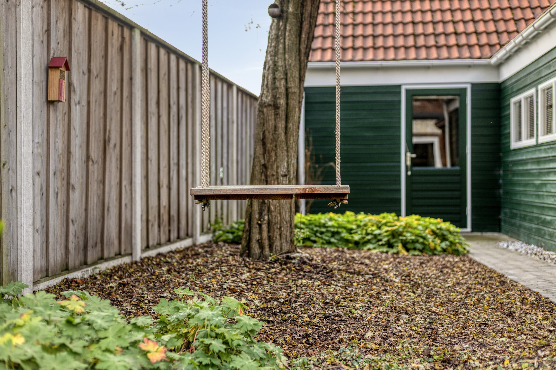 De woonkamer, een heerlijk lichte doorzonkamer, kijkt uit op de verzorgde achtertuin op het zonnige zuidwesten. Via de schuifpui stap je zo naar buiten, waar je een oase van rust en ruimte vindt. De tuin is fraai aangelegd en beschikt over een luxe overkapping met glazen schuifwanden en een houtkachel. Dé plek om het hele jaar door te genieten van het buitenleven. Achter in de tuin bevindt zich een vrijstaande stenen garage van ca. 45 m², stijlvol afgewerkt met hout en voorzien van een bergvliering, geïsoleerd dak en een elektrische garagedeur. Ideaal voor hobby’s, werk aan huis of extra opslagruimte: uniek op deze locatie!