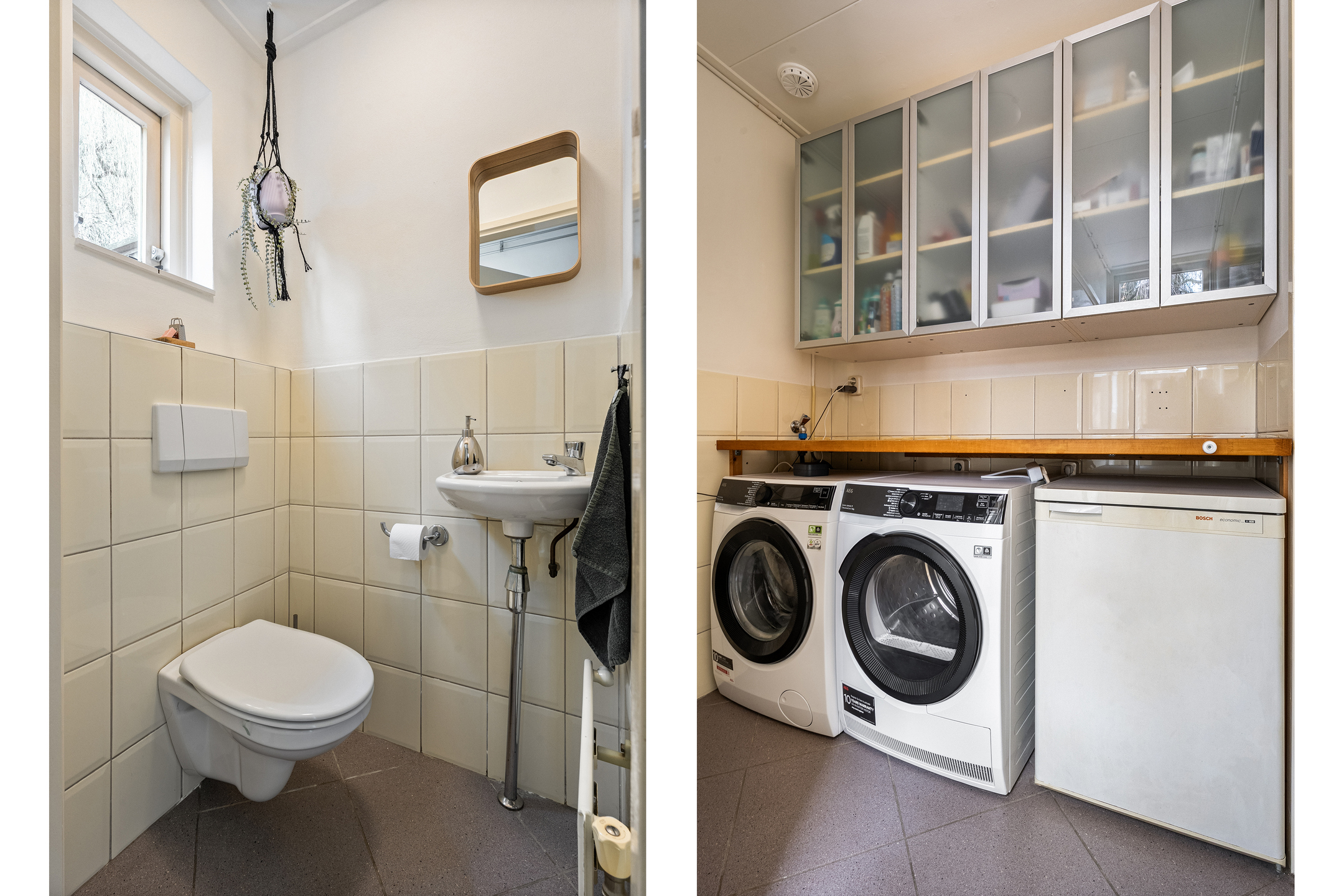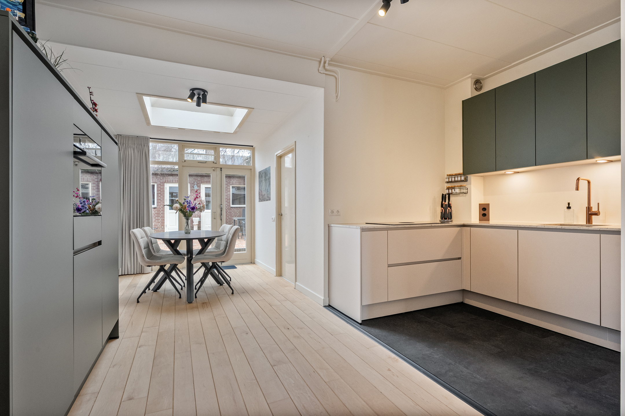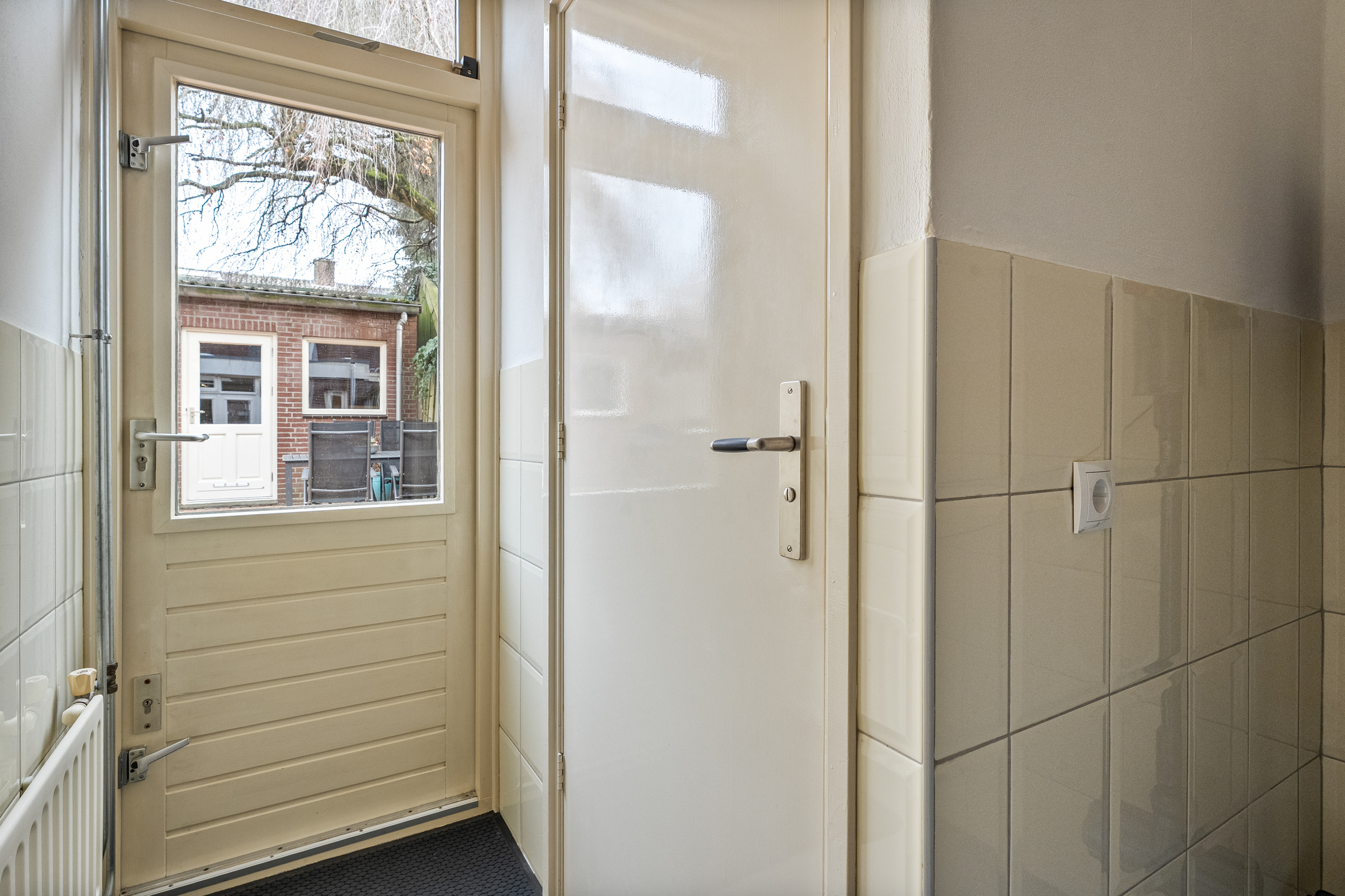 - Praktische bijkeuken met witgoedaansluitingen en toegang tot toiletruimte.