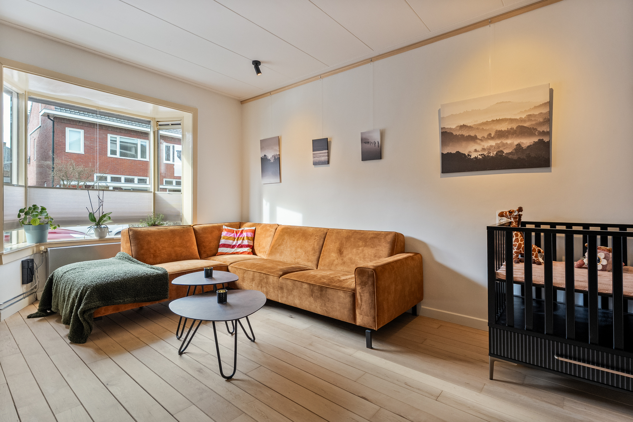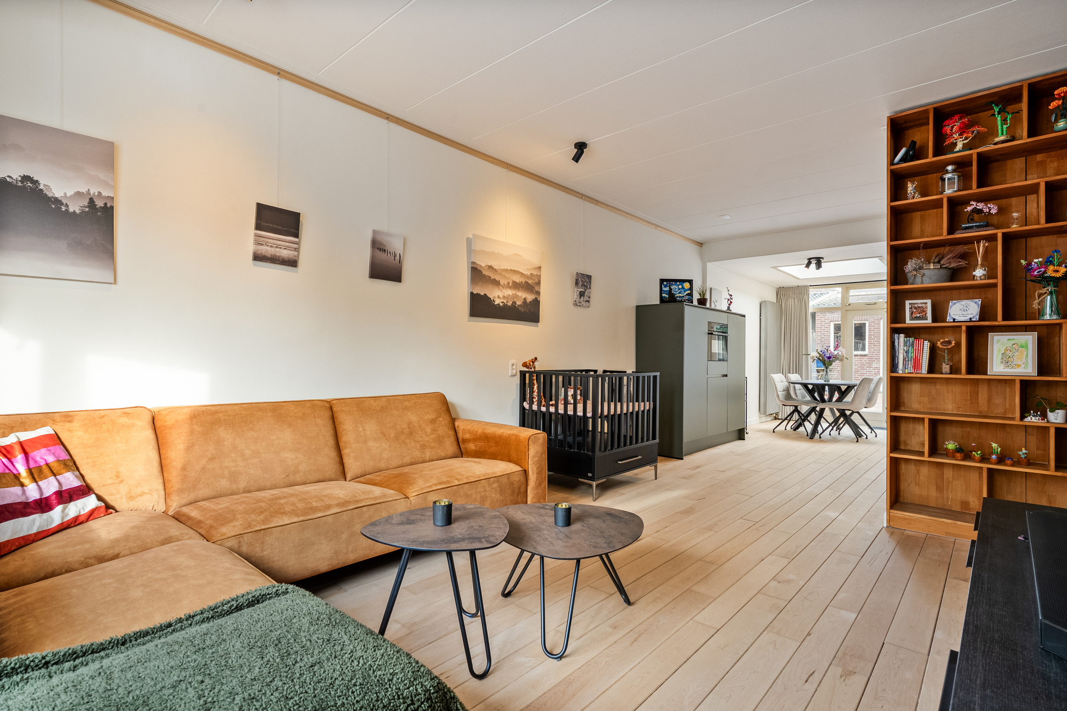 - Lichte en royale woonkamer met dakvenster in de aanbouw.