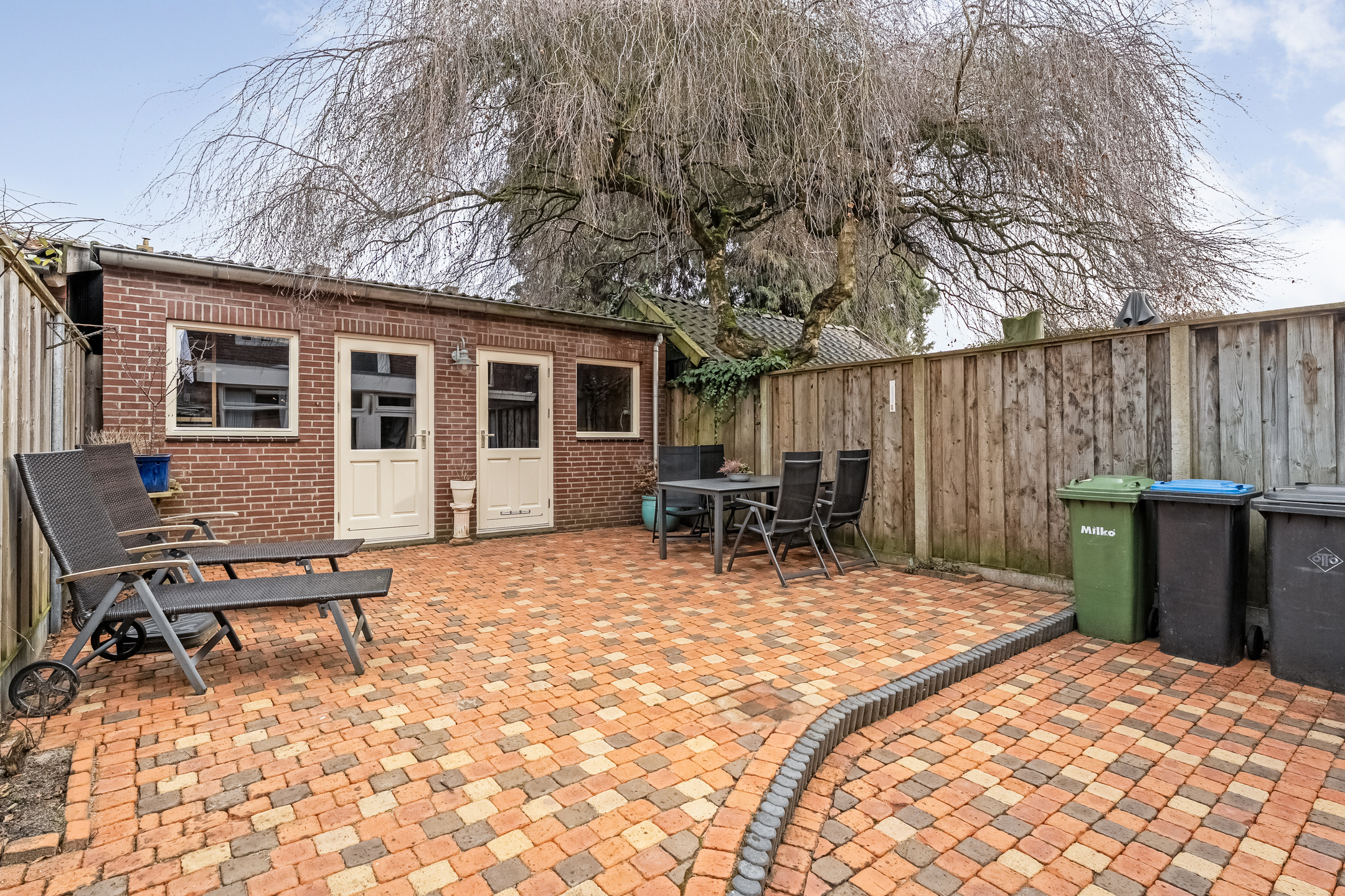 - Achtertuin gelegen op het oosten, volledig betegeld.
