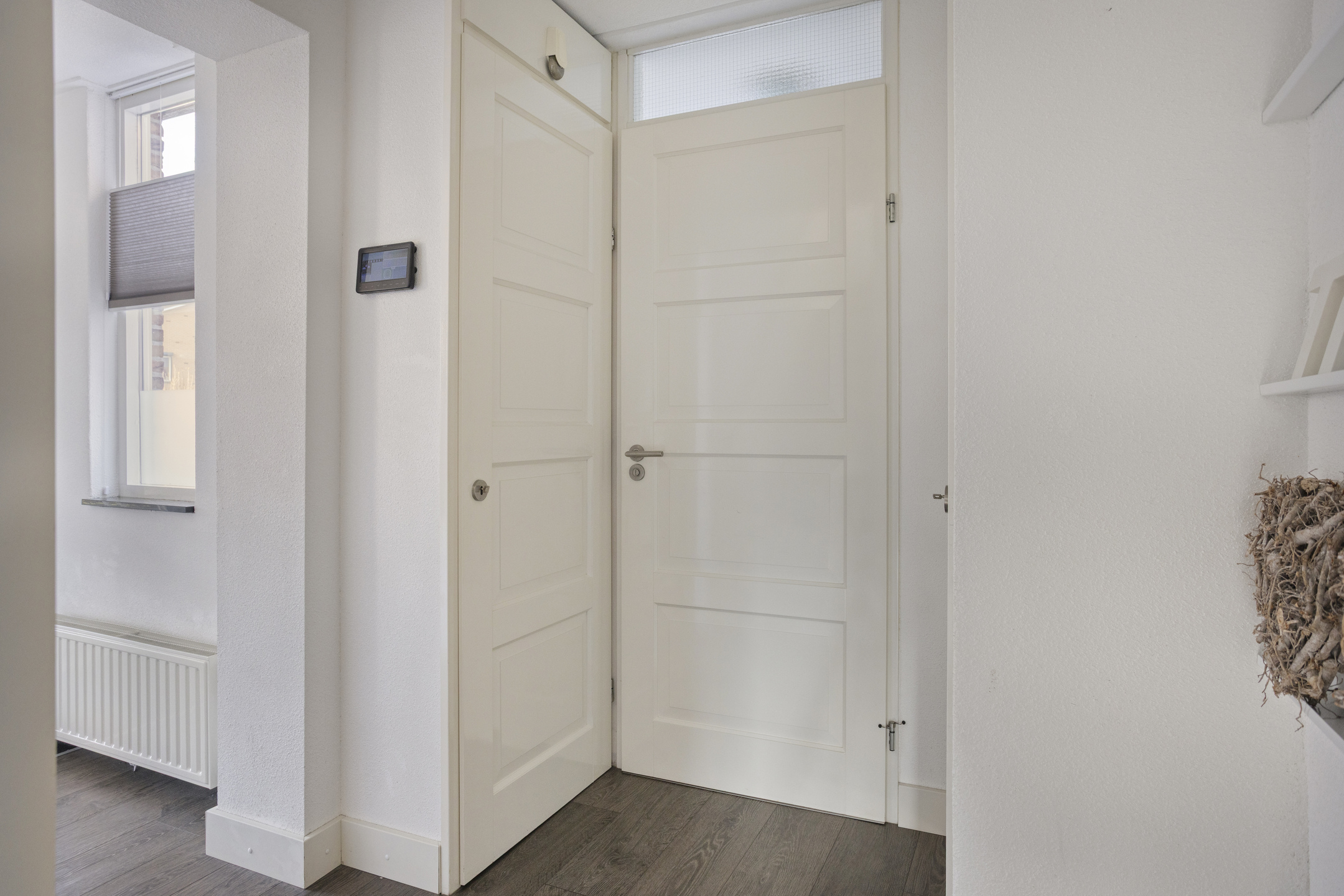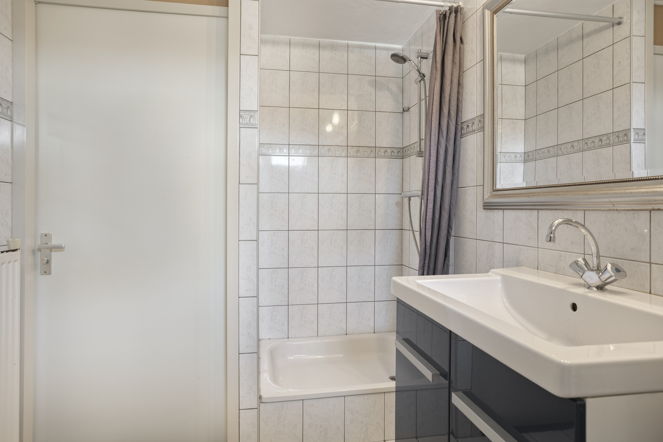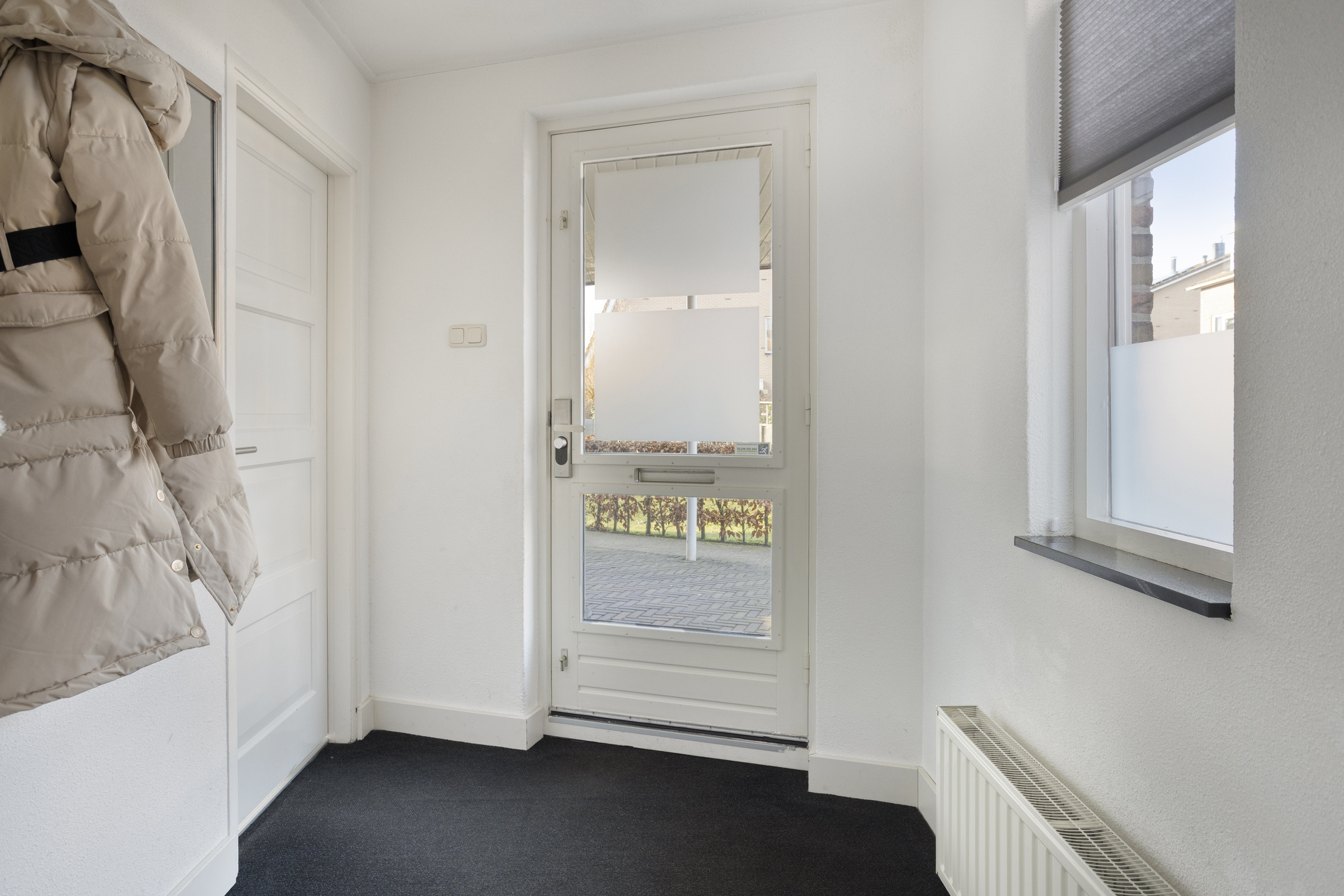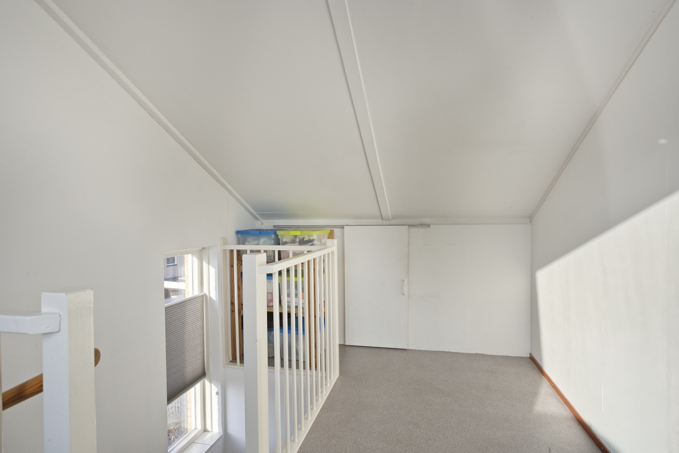 De begane grond verwelkomt je via de overdekte zij-entree in een hal met bijkeuken, trapopgang, meterkast, vaste kast en toilet met fontein. De straatgerichte open keuken met moderne inbouwapparatuur vormt het hart van het huis, terwijl de tuingerichte woonkamer met openslaande tuindeuren en dakraam een prachtige verbinding met de tuin creëert.