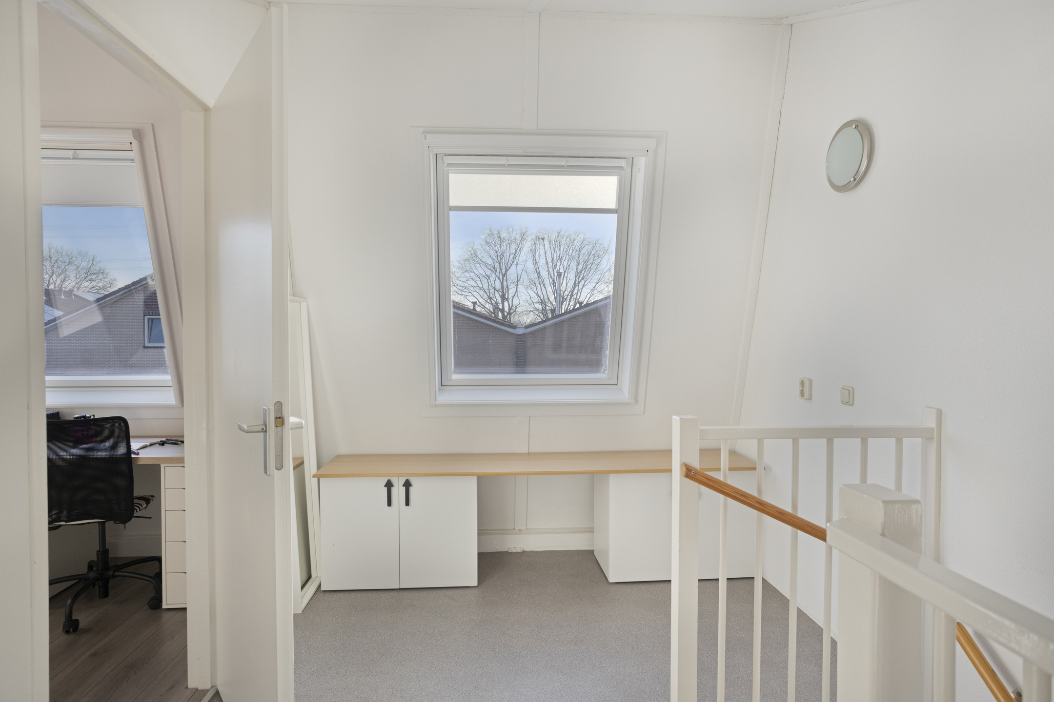 Op de eerste verdieping bevinden zich drie ruime slaapkamers rondom een te moderniseren badkamer, momenteel voorzien van wastafelmeubel, hangend toilet en douche. De tweede verdieping biedt een overloop met knieschotten en een grote zolderkamer met dakramen (recent vervangen door kunststof) en knieschotten, ideaal als slaapkamer, werkruimte of hobbyruimte.
