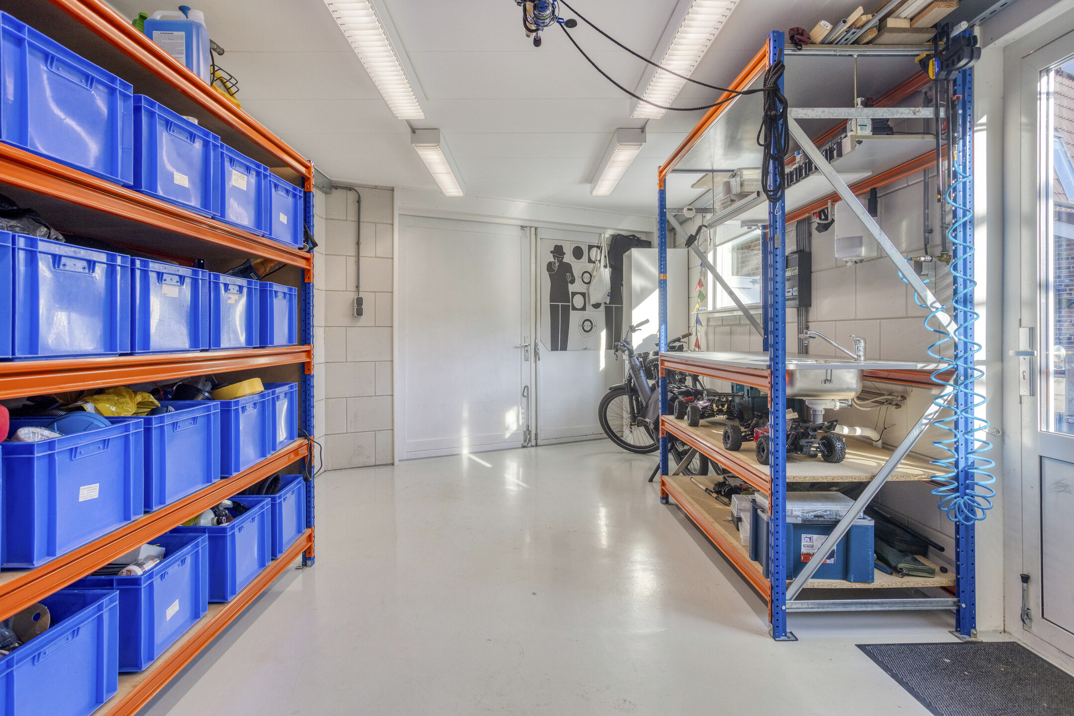 Voor de deur ligt een eigen oprit met plek voor meerdere auto’s, waarna je toegang hebt tot de vrijstaande stenen garage, volledig in spouw gebouwd en voorzien van openslaande deuren, warm- en koudwateraansluiting, elektra, airco en een extra bergruimte, een multifunctionele ruimte voor werk, hobby of opslag.