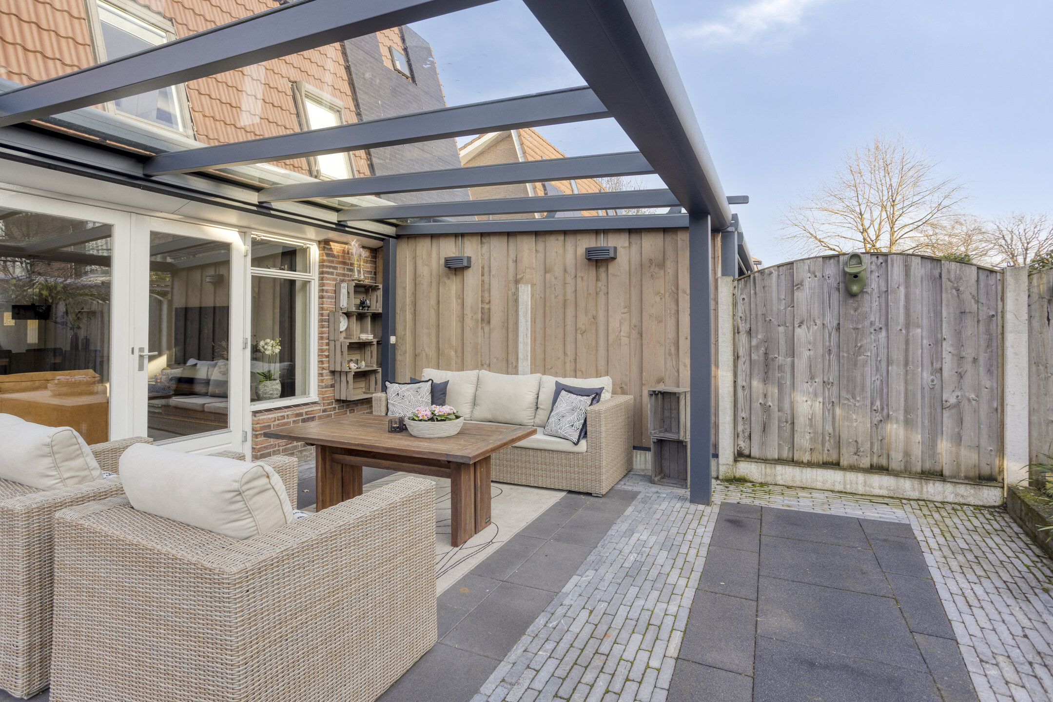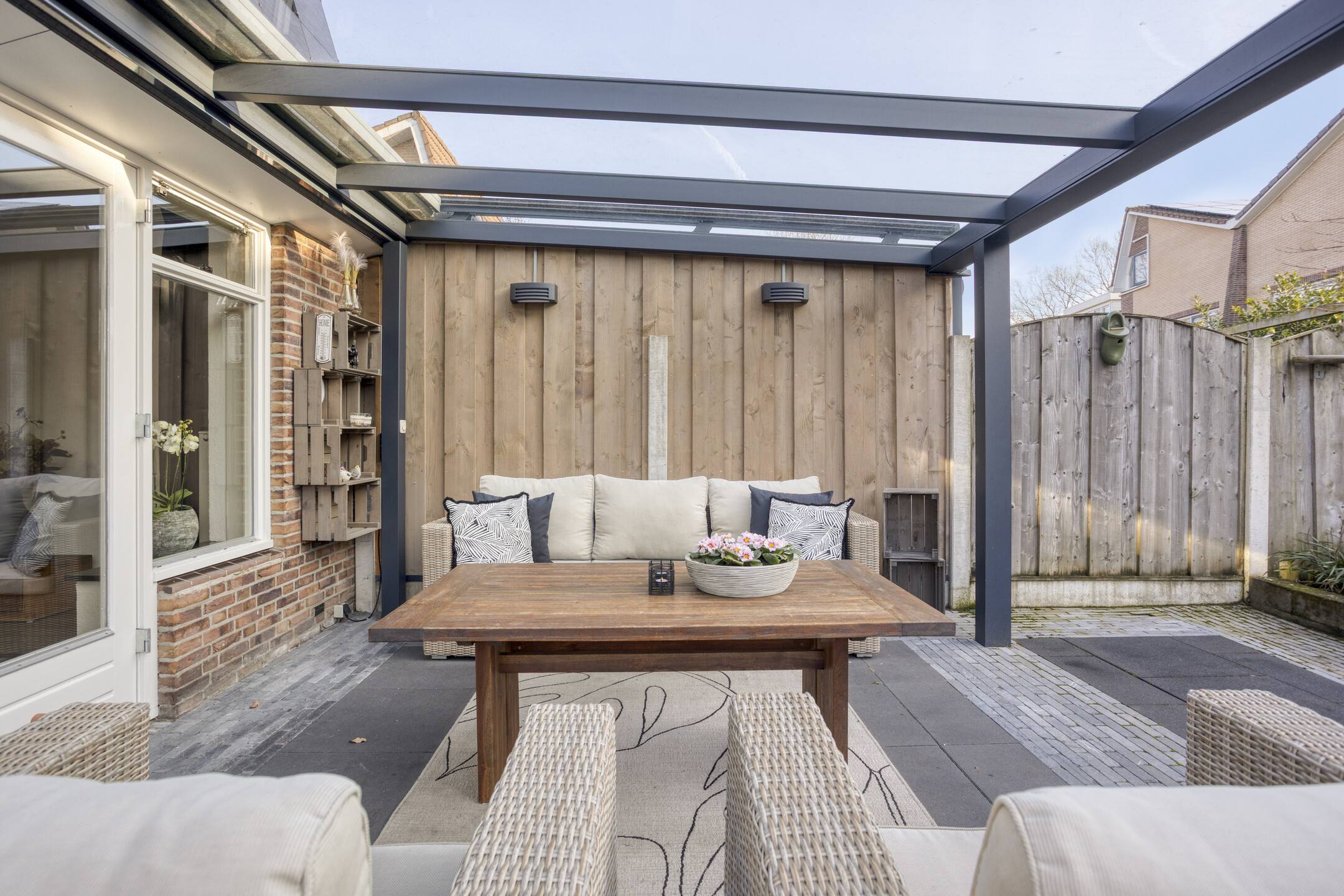 - Tuin op het zuiden met fraaie terrasoverkapping met zonwering.