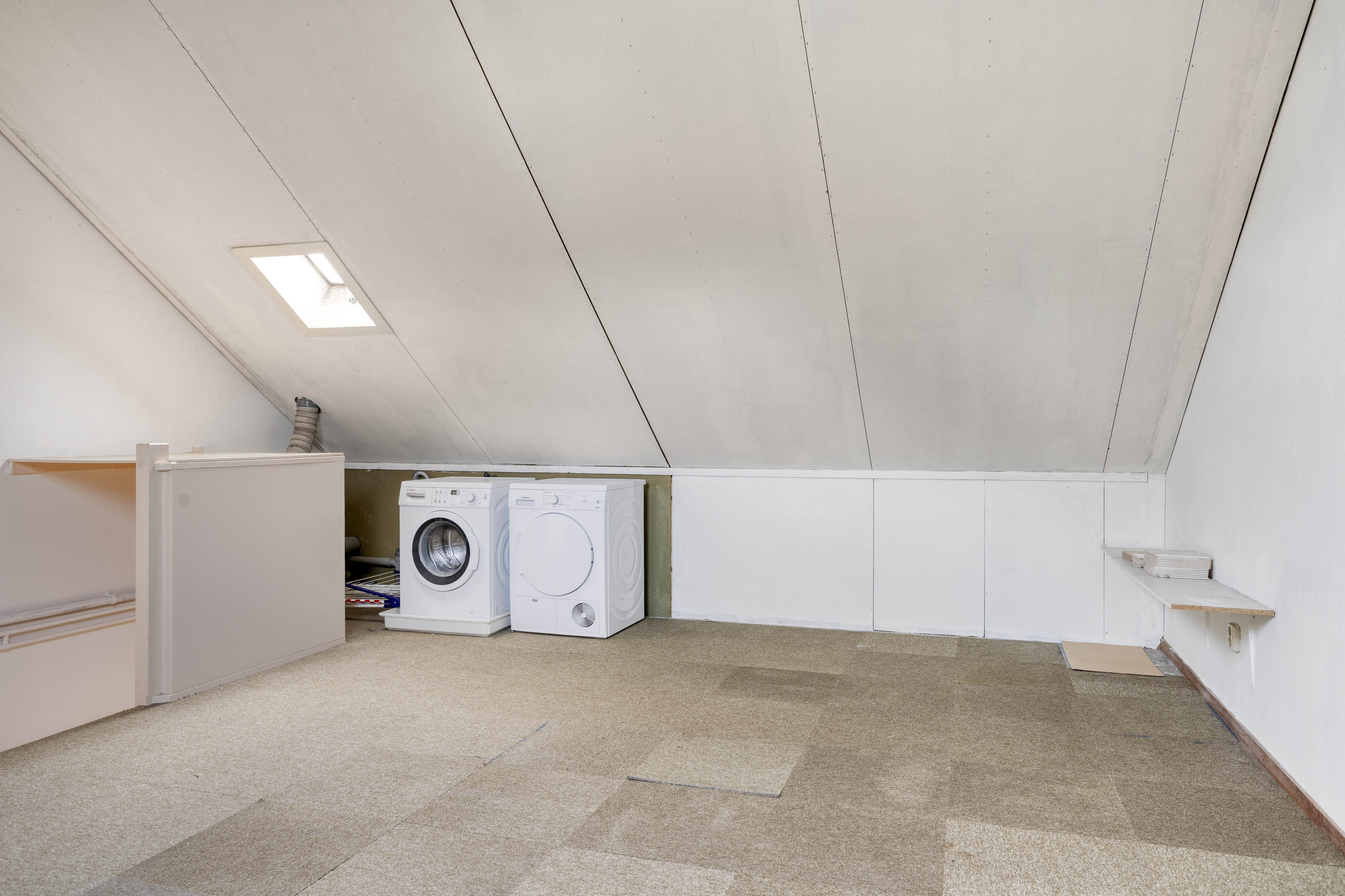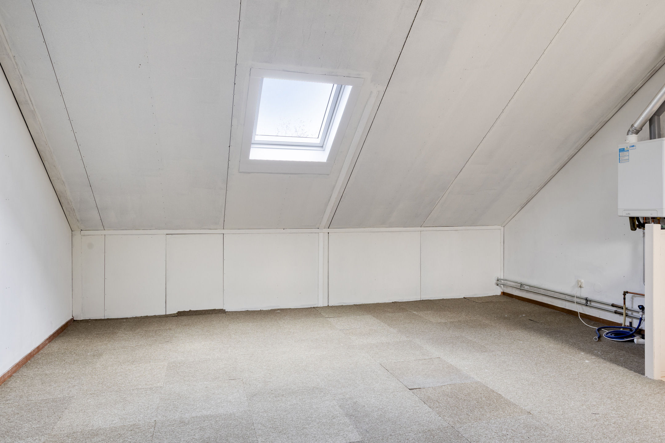 Tweede verdieping: via een vaste trap bereikbare open zolderverdieping met twee dakramen, bergruimte achter knieschotten en de opstelplaats voor witgoed en CV-ketel. Deze verdieping is eenvoudig in te richten als vierde slaapkamer.