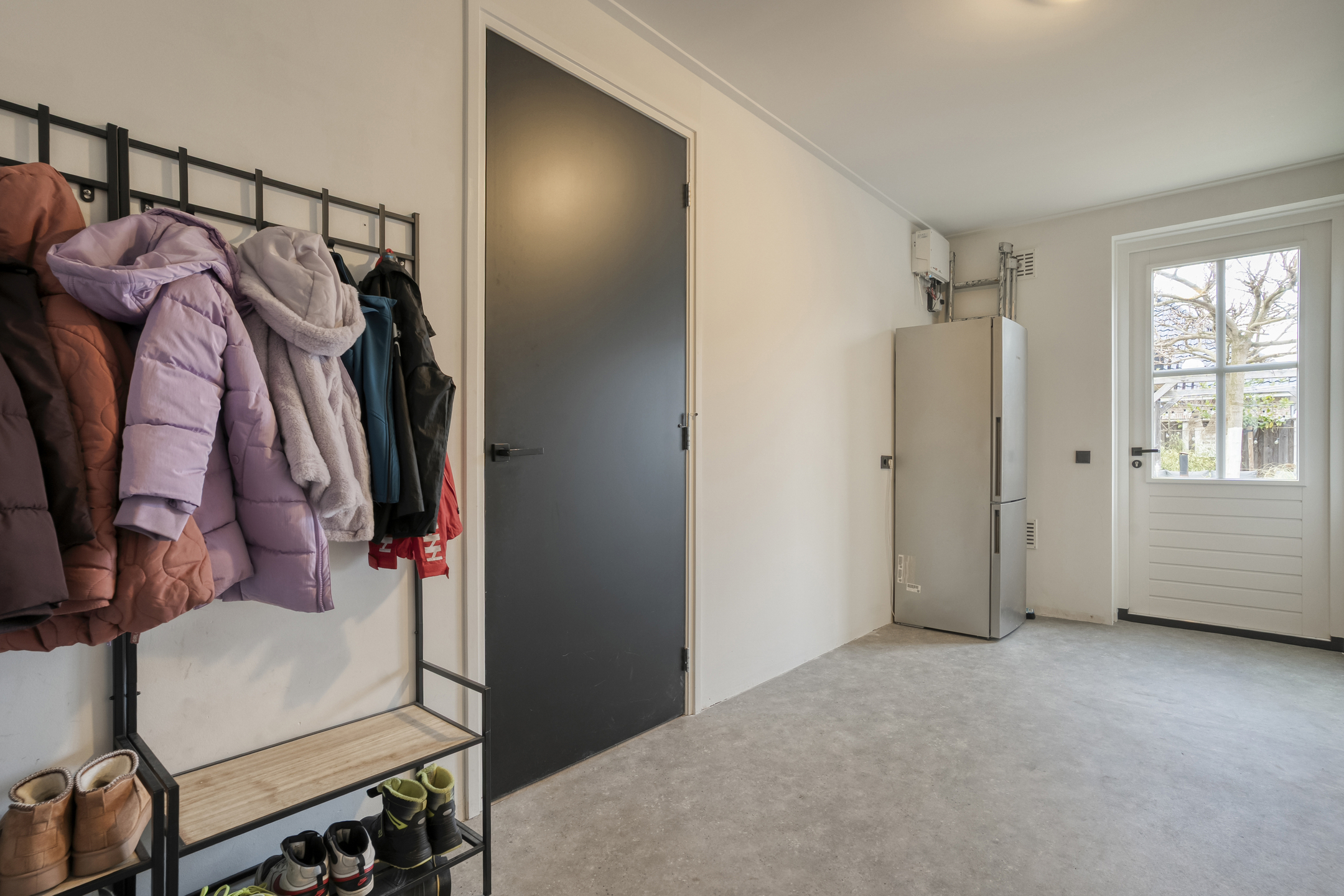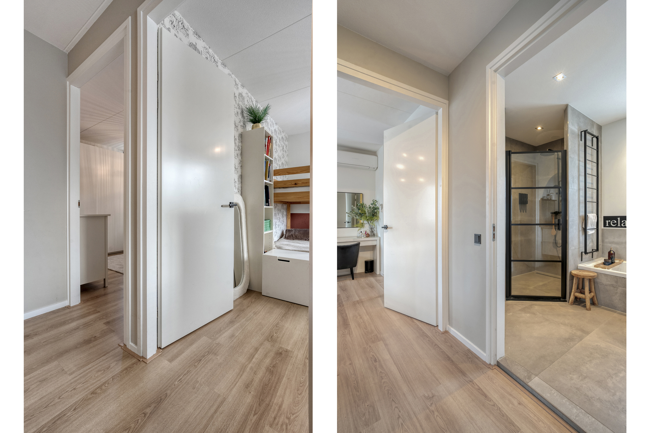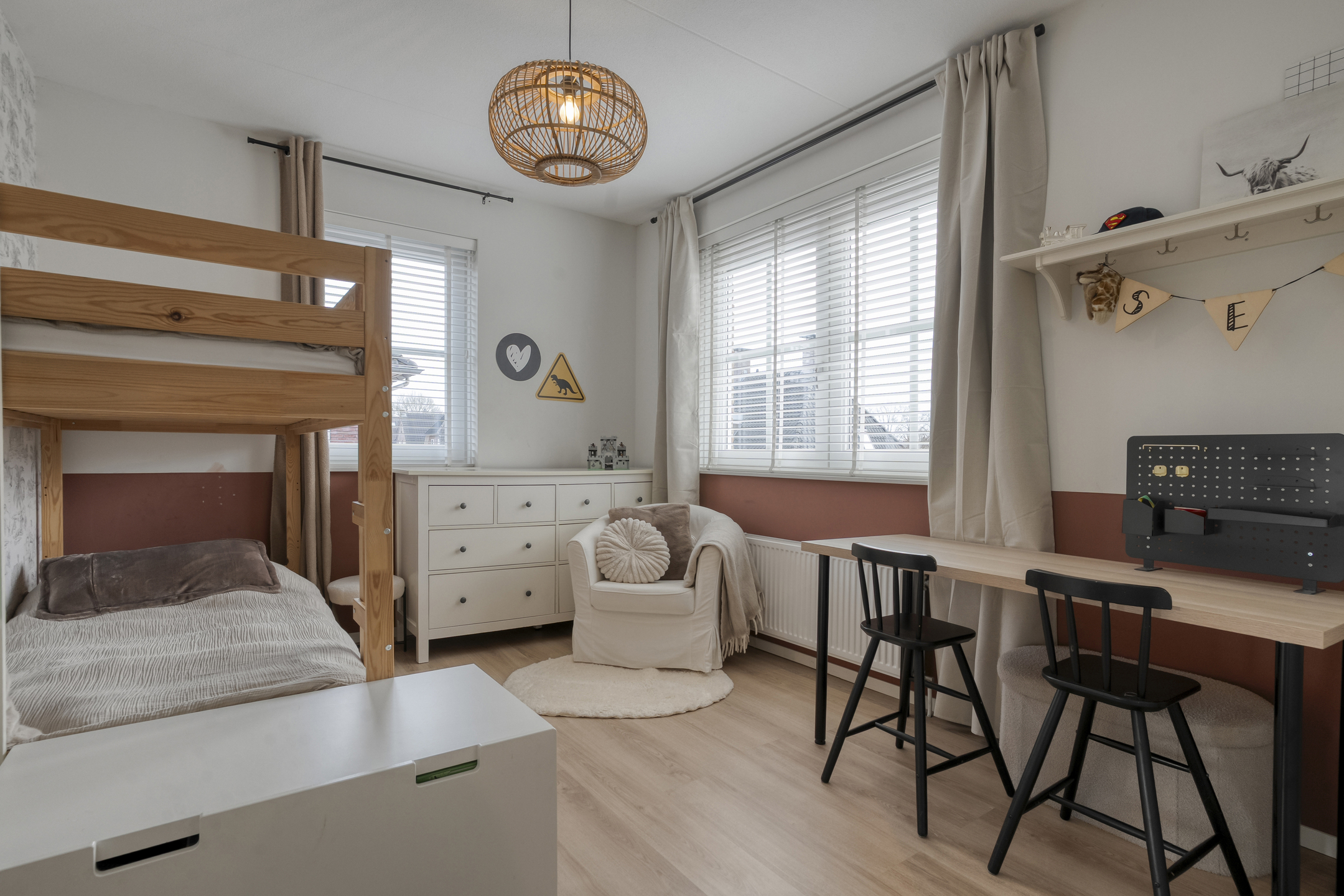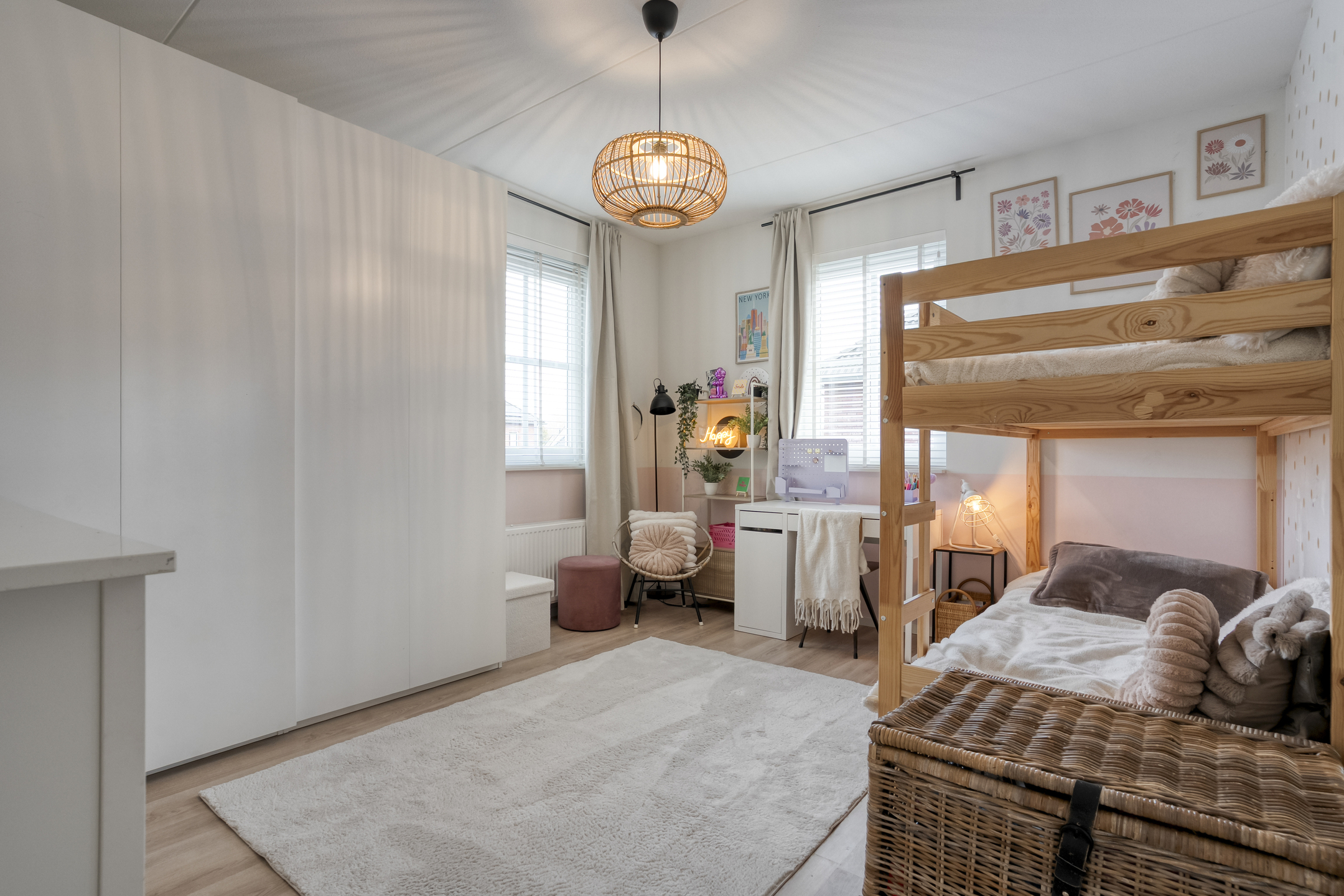 De woonkamer met zij-erker en doorkijkhaard voegt sfeer toe zonder het open karakter te verliezen. Daarnaast is er ruimte voor thuiswerken of studeren, prettig afgescheiden maar toch verbonden met de rest van het huis.
