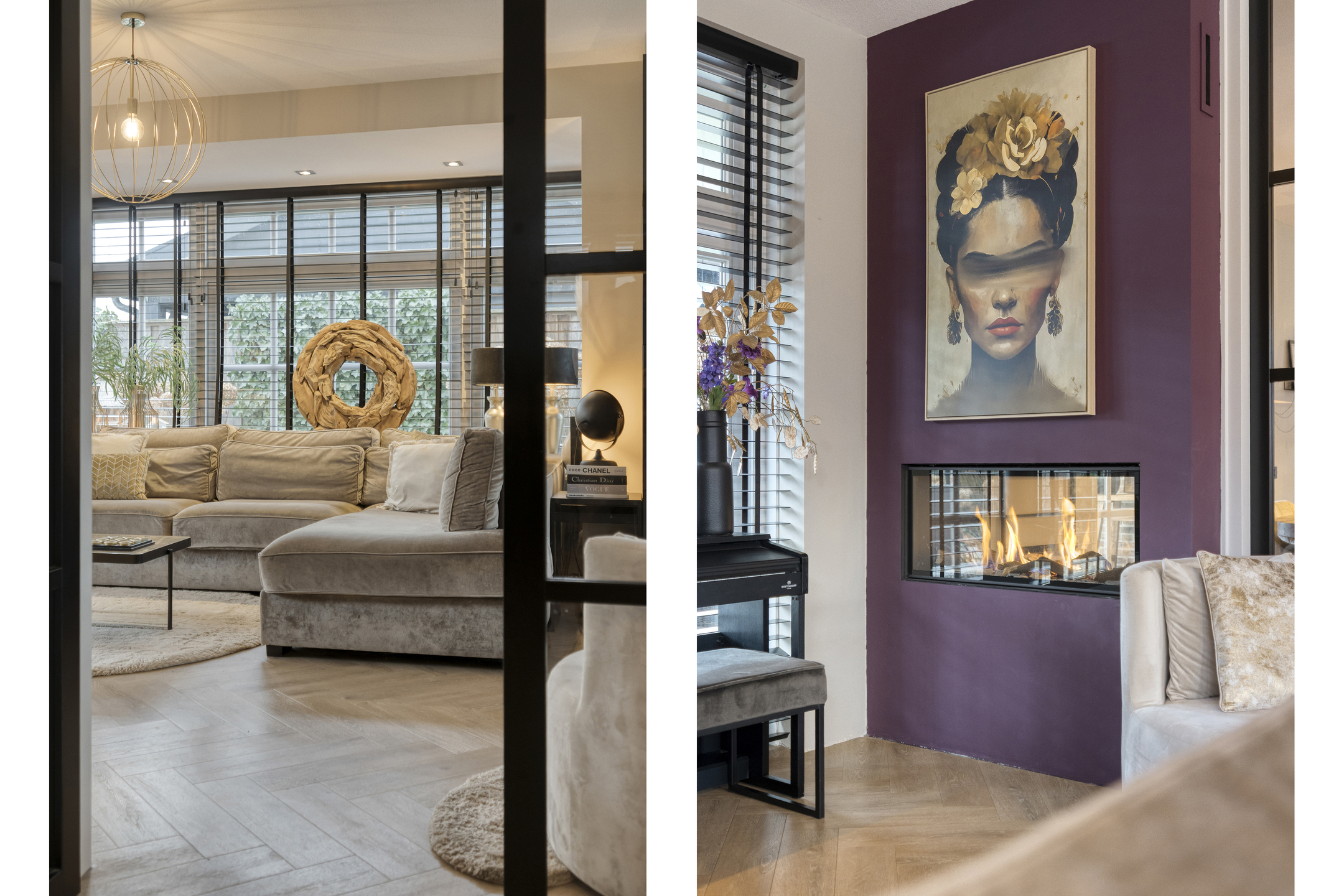 - Sfeervolle woonkamer met zij-erker en doorkijk gashaard. Tevens 2,65 meter hoge taatsdeuren!