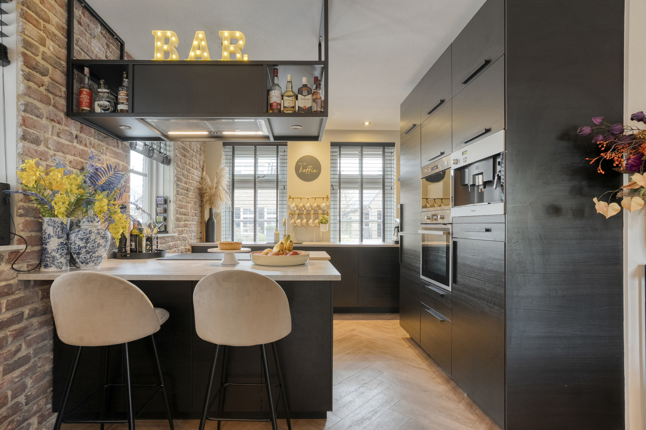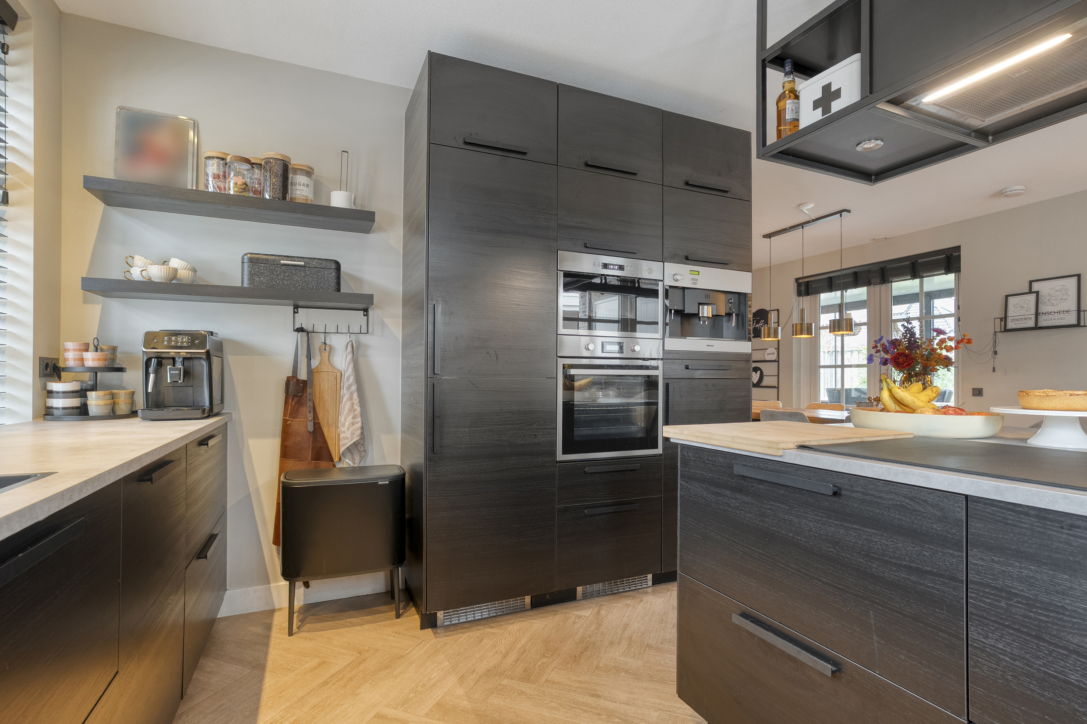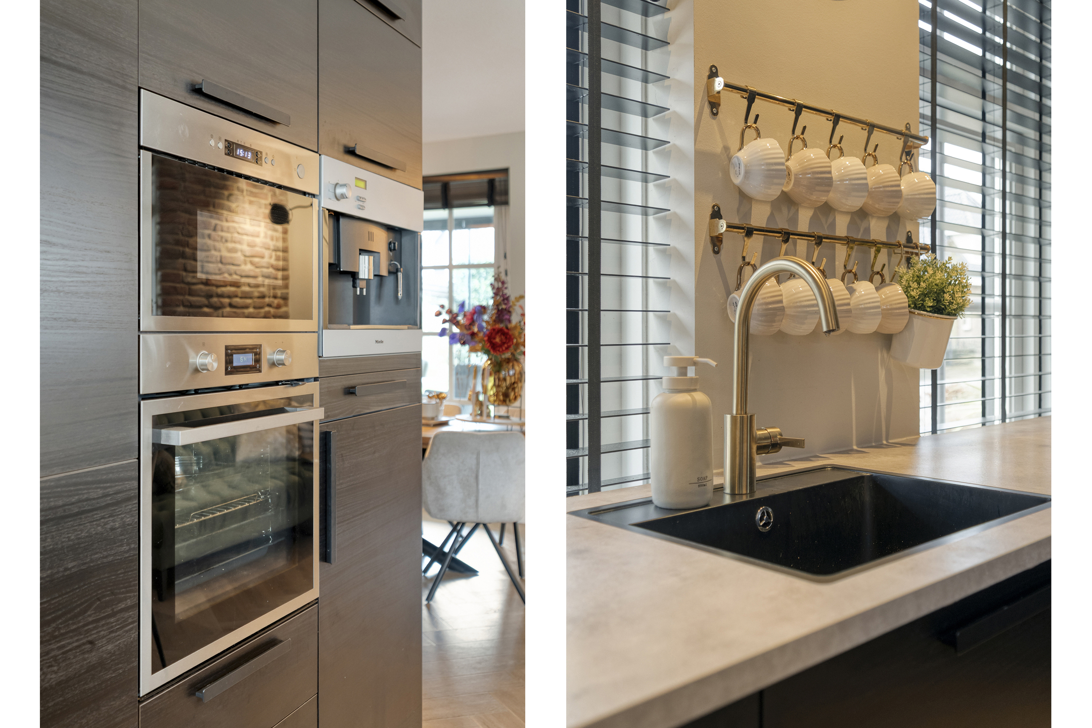 - Royale woonkeuken met hoogwaardige inbouwapparatuur, o.a. koffieapparaat, oven, magnetron, inductiekookplaat en afzuigkap.