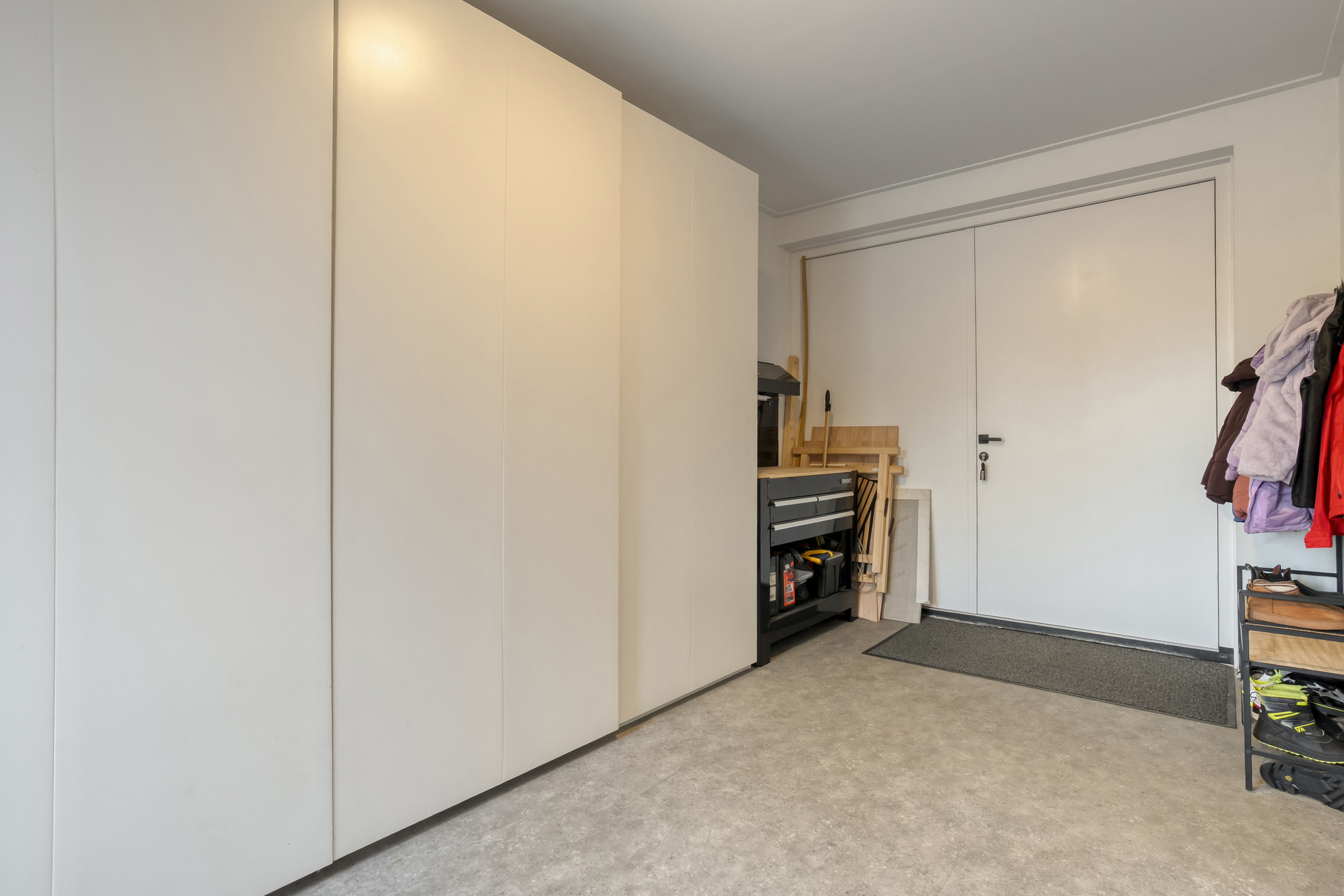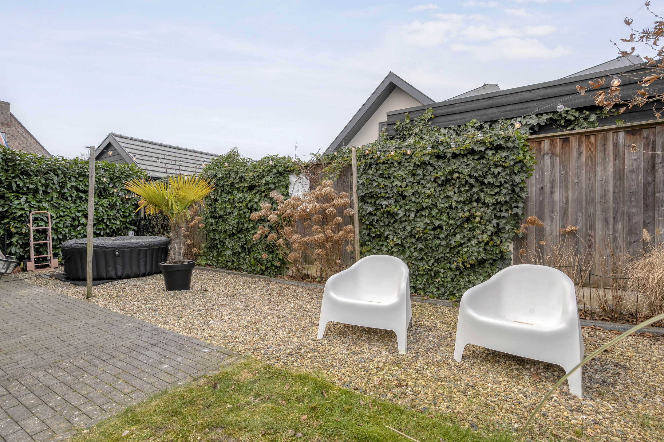 Ook buiten is het niveau hoog. De tuin is strak en verzorgd aangelegd, verrassend ruim en perfect in balans tussen zon en schaduw. Dankzij het drainagesysteem rondom de woning blijft het perceel in alle seizoenen prettig bruikbaar, terwijl de sproei-installatie in de achtertuin het groen moeiteloos in topconditie houdt. De ligging op het noordwesten maakt dat lange zomeravonden hier vanzelfsprekend zijn.