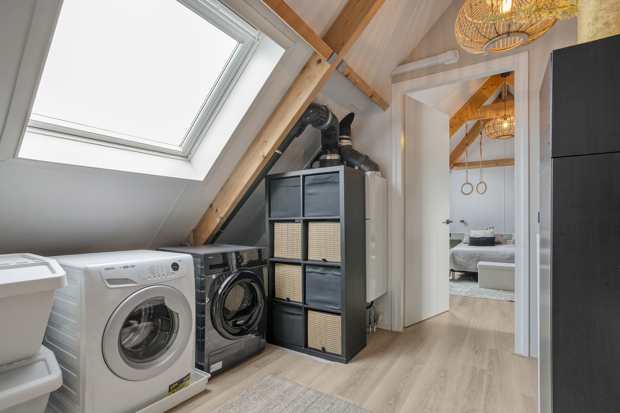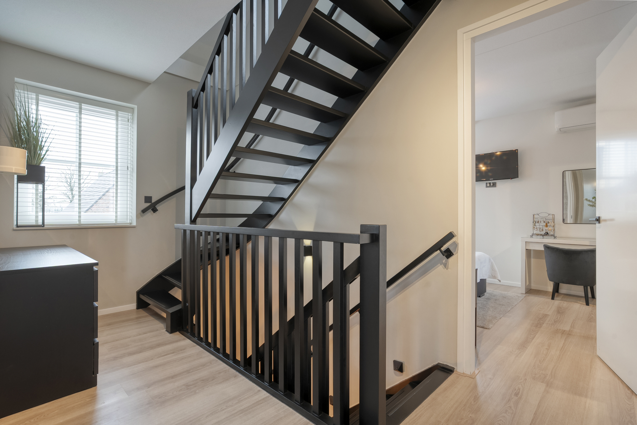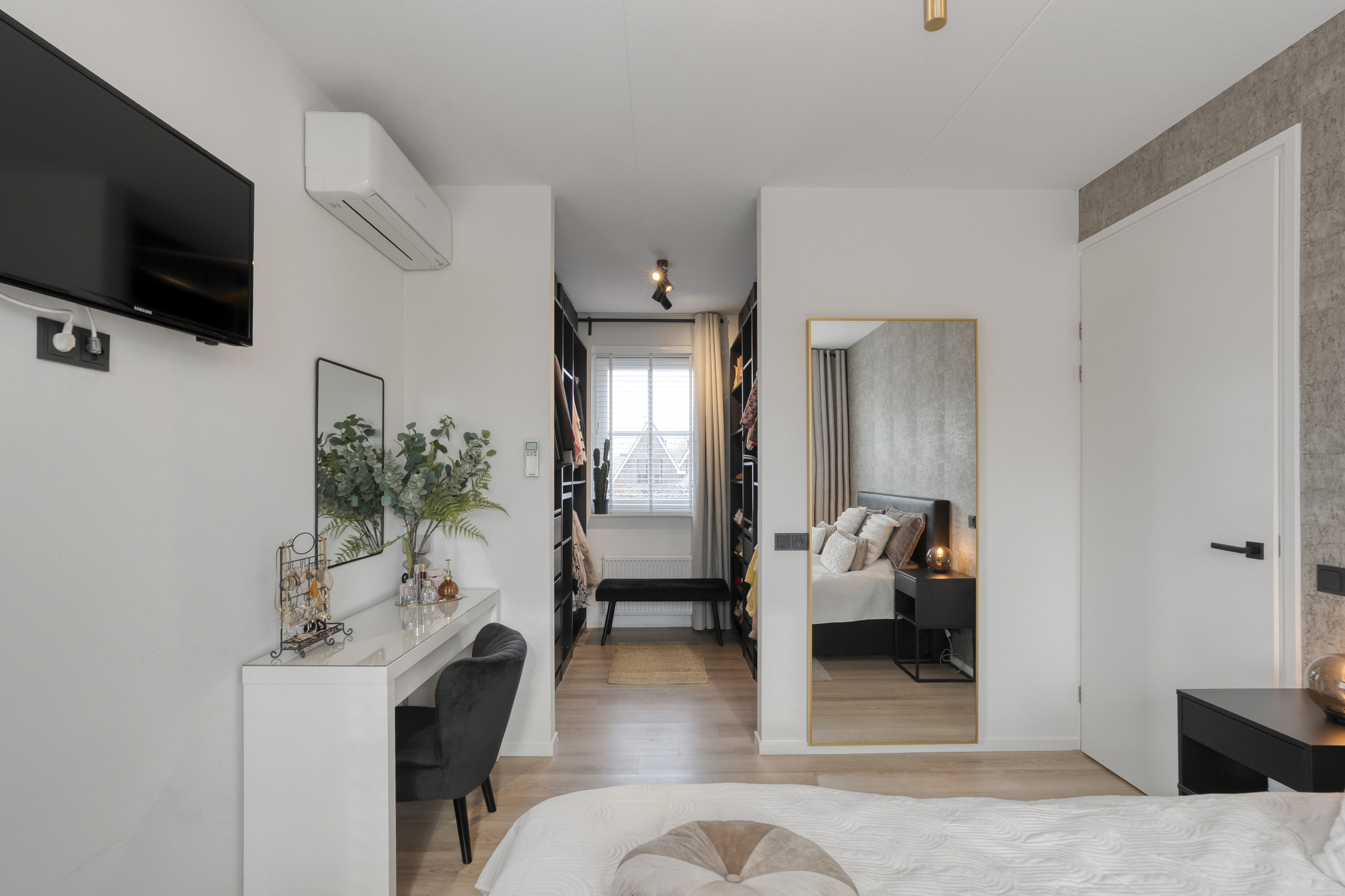 Boven wachten vier volwaardige slaapkamers, waaronder een heerlijke master bedroom met walk in closet. De badkamer is luxe en comfortabel ingericht, een plek waar je de dag rustig begint en ontspannen afsluit. Ook de zolderverdieping is volledig benut en voelt dankzij dakkapel, dakramen en airconditioning als een volwaardig woonniveau.