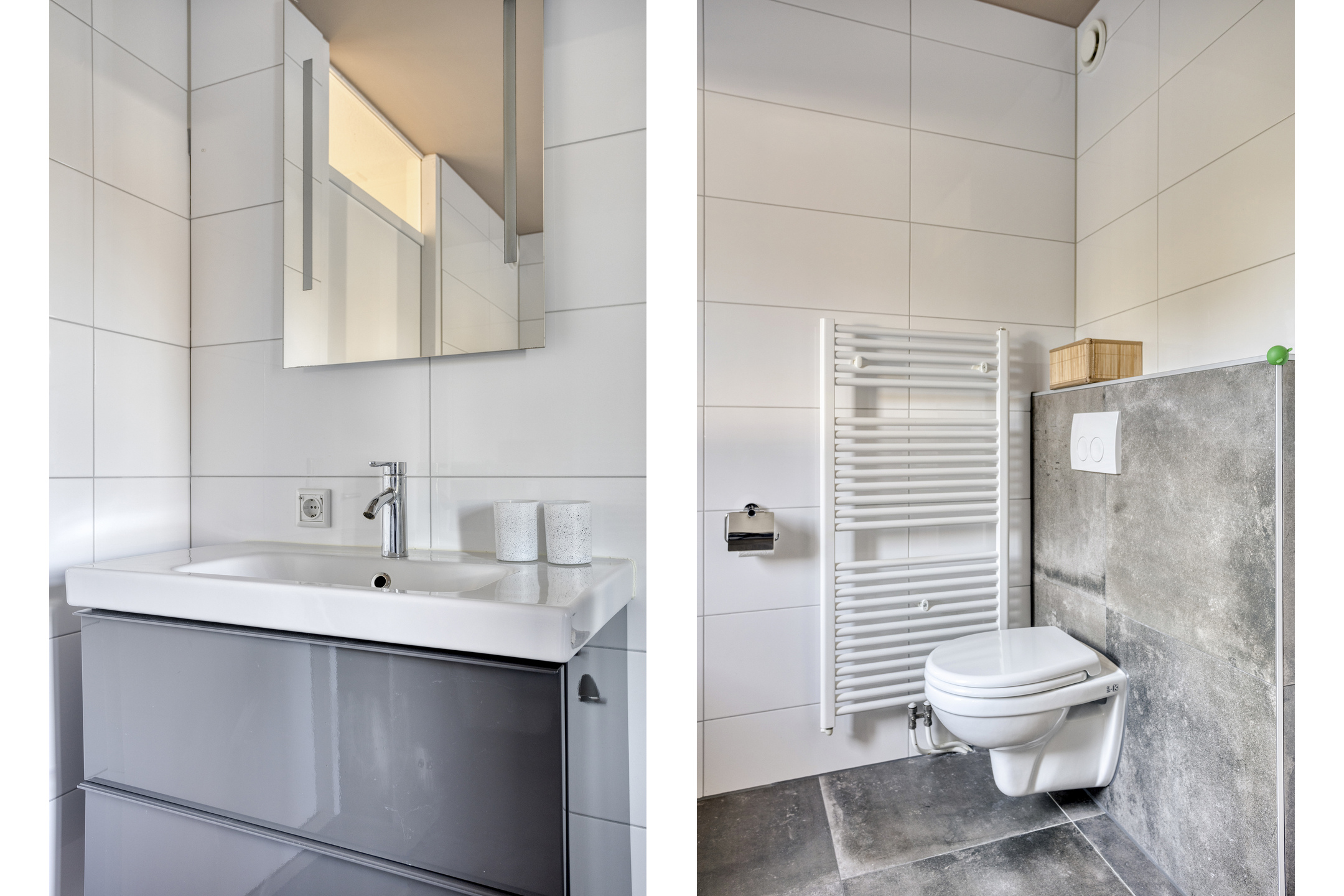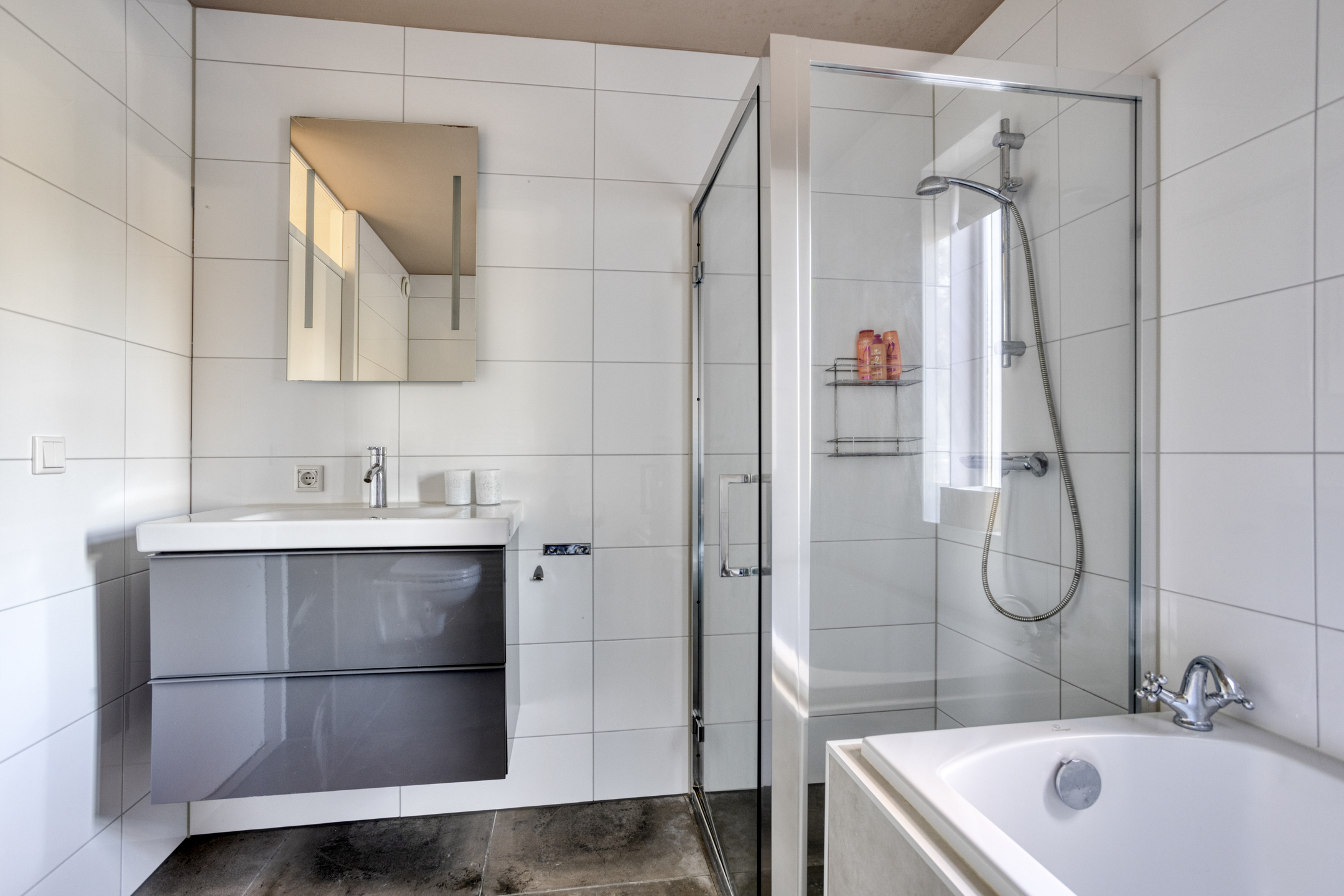 - Moderne keuken en volledig uitgeruste sanitaire voorzieningen; badkamer met ligbad, inloopdouche en hangend toilet.