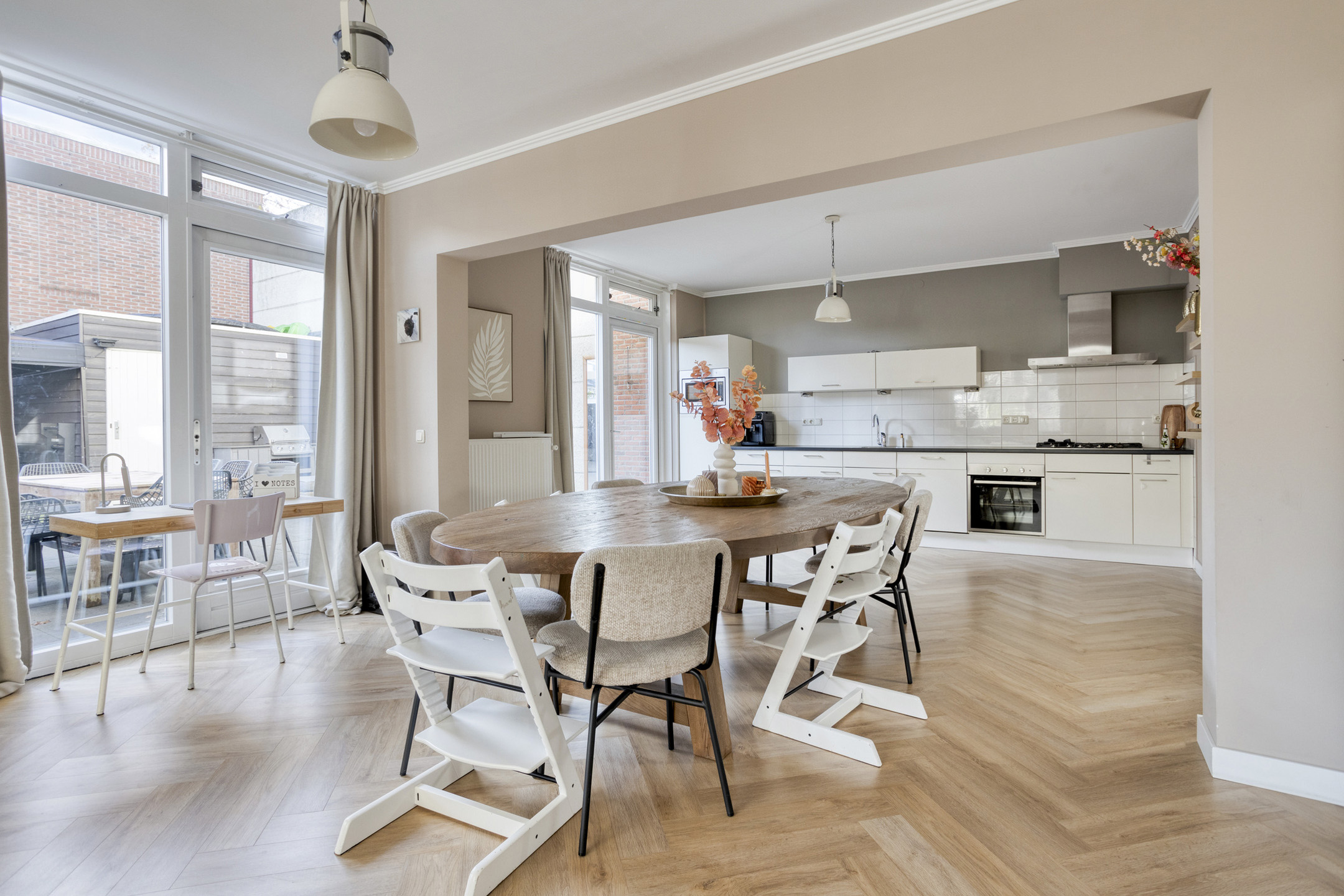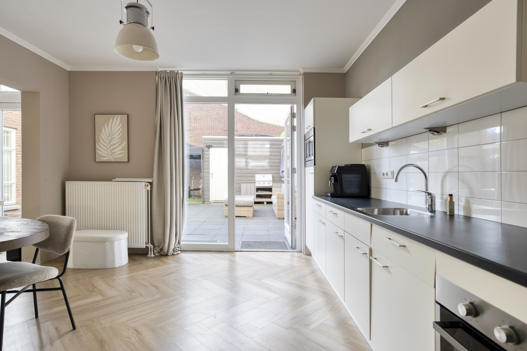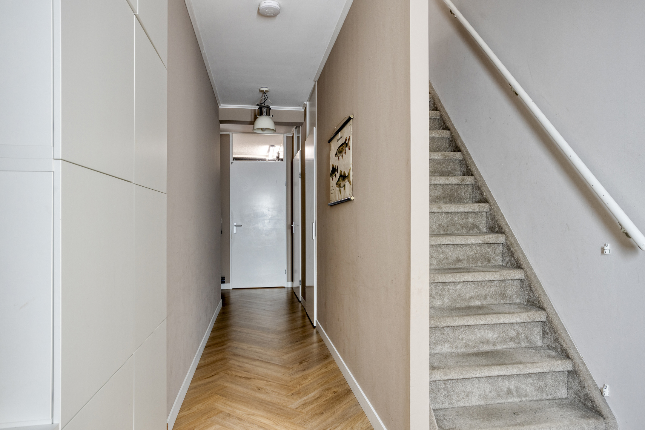 Op de begane grond betreed je de woning via een ruime hal met meterkast, trapopgang en trapkast. Het toilet is voorzien van een fonteintje. De bijkeuken biedt plaats voor witgoed, een elektrische boiler en de CV-ketel. De woonkeuken is voorzien van een complete inbouwkeuken en heeft een deur naar de royale achtertuin. De zeer ruime en lichte woonkamer vormt het hart van de woning en biedt volop ruimte voor gezin en ontspanning.